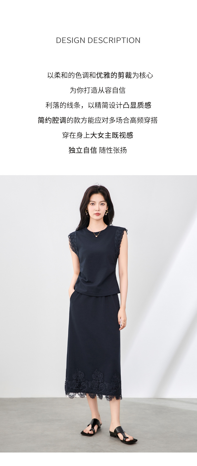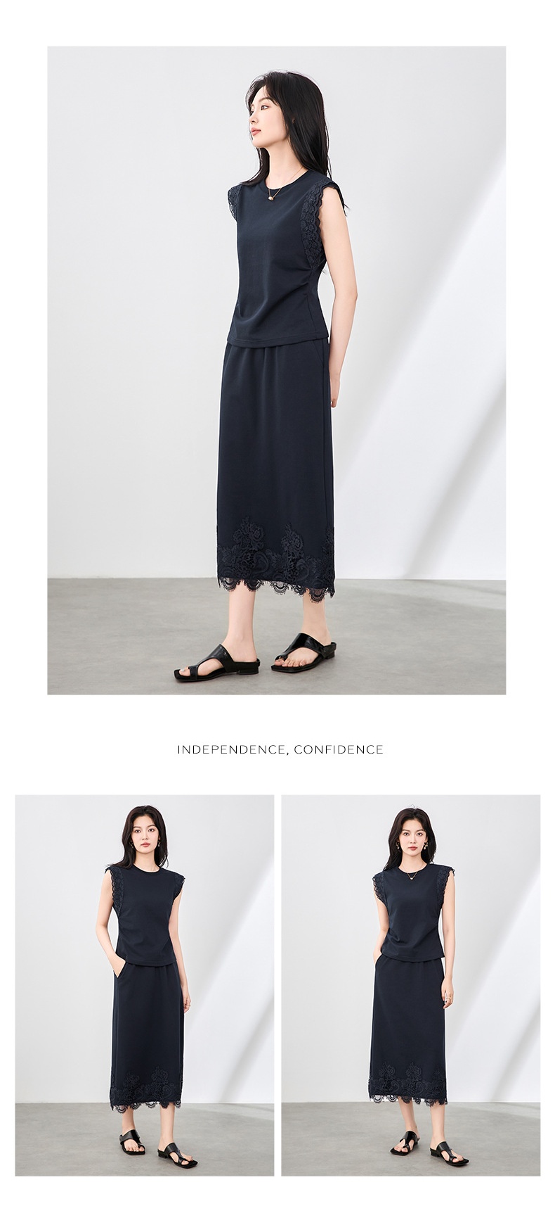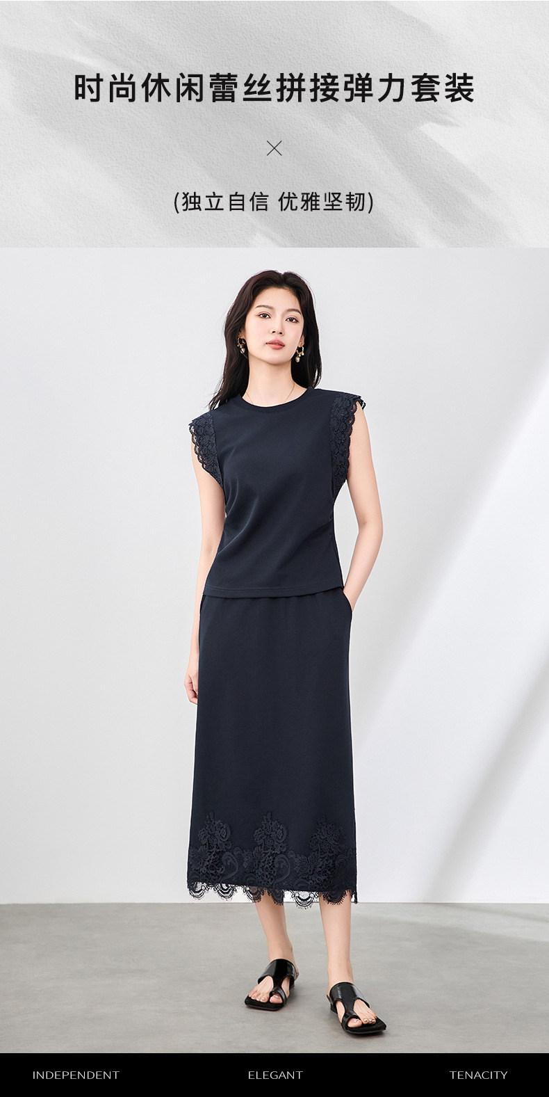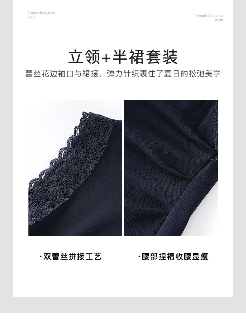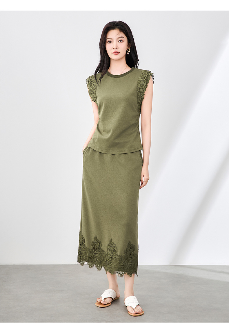 「高货wl」全新升级【铂金会员330/天猫439/差价109】(99833)洛诗琳气质蕾丝拼接收腰显瘦无袖上衣直筒半裙两件套装女wl99833
