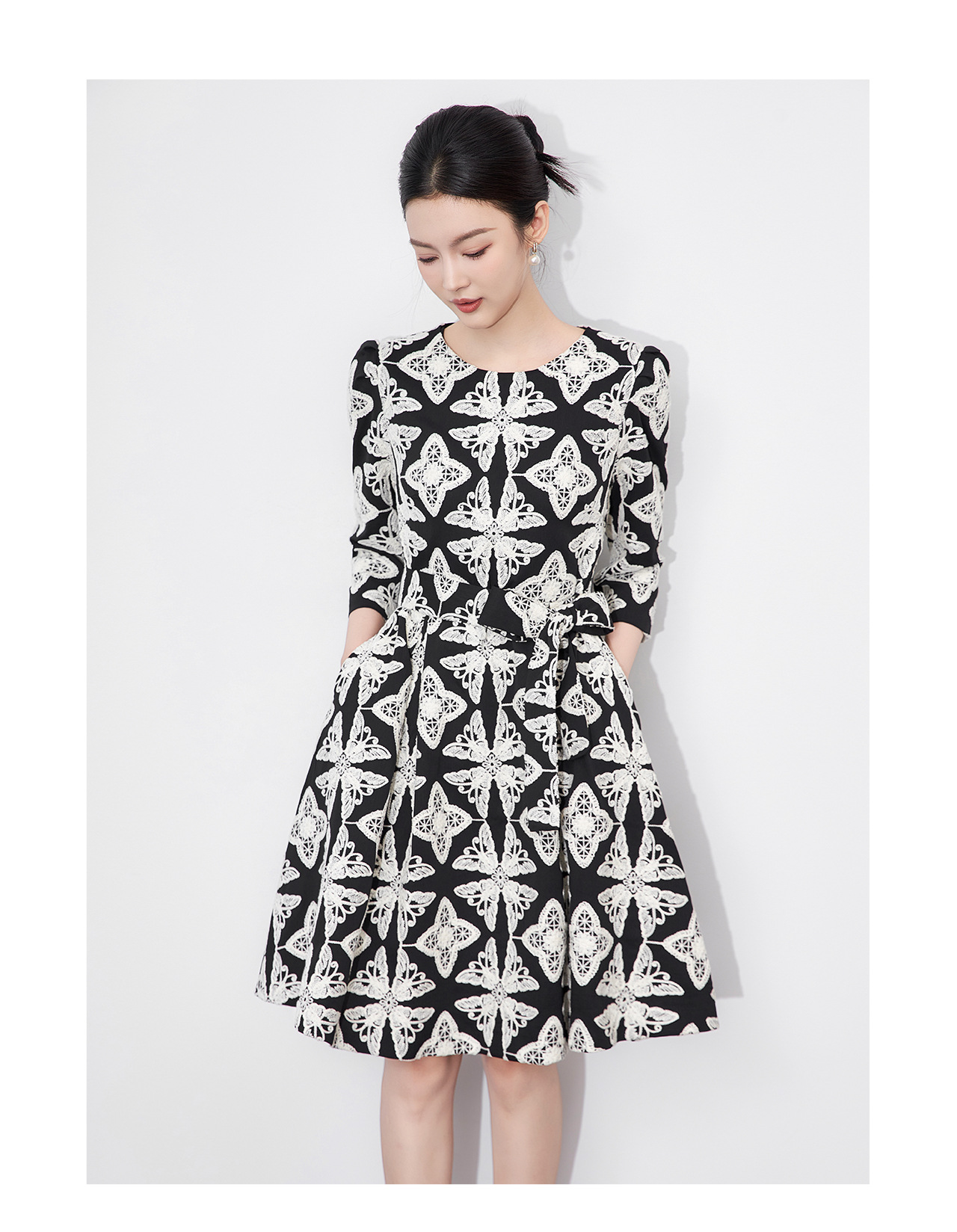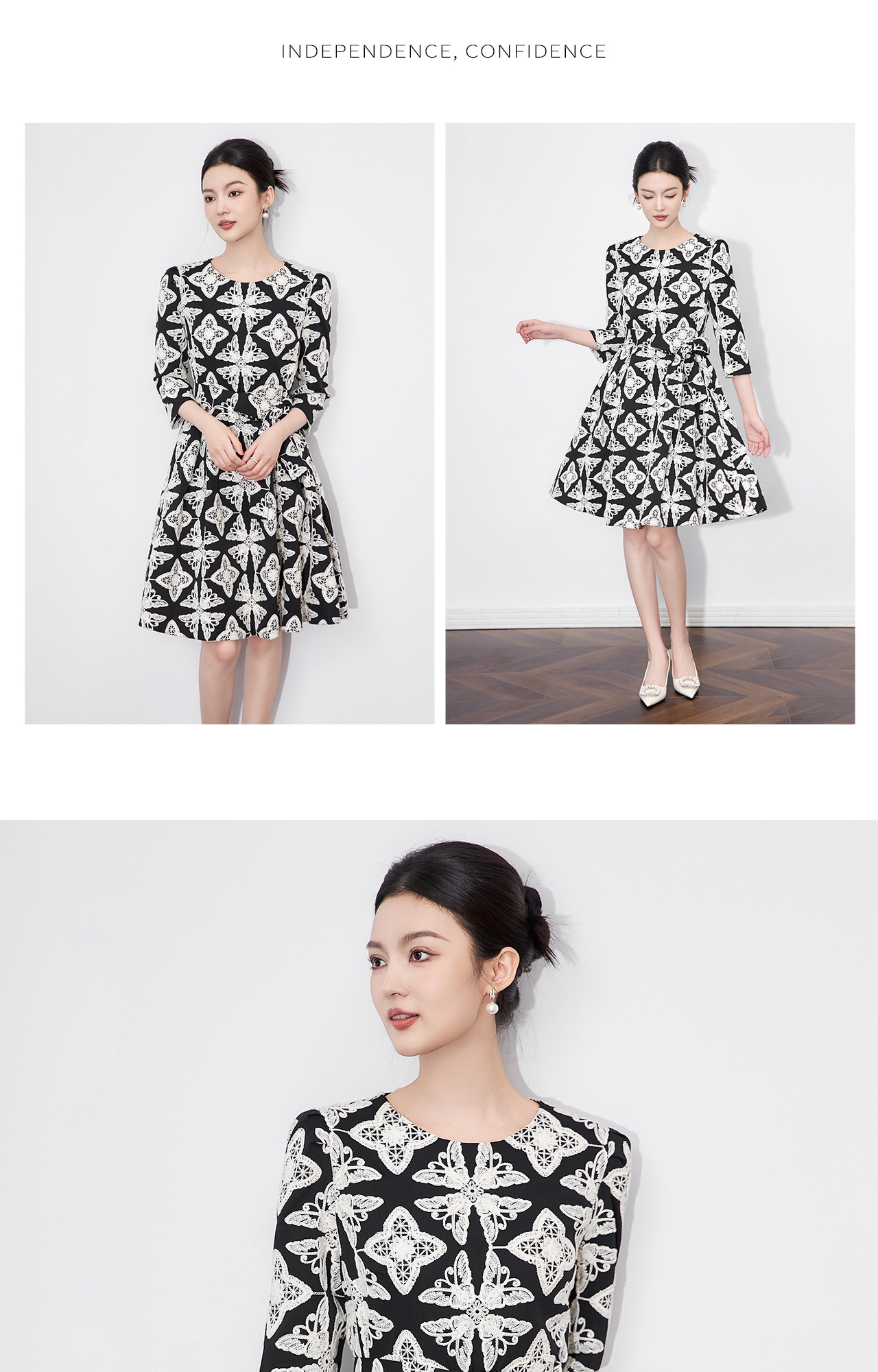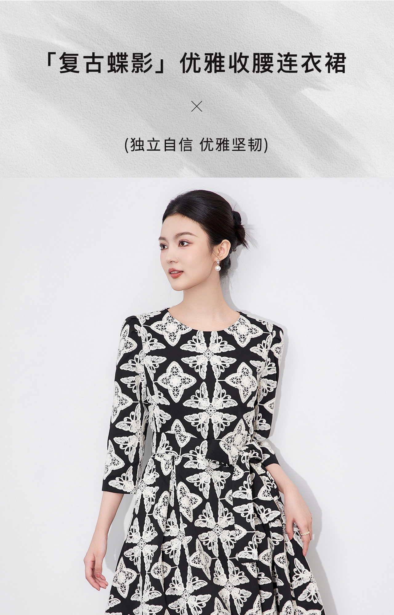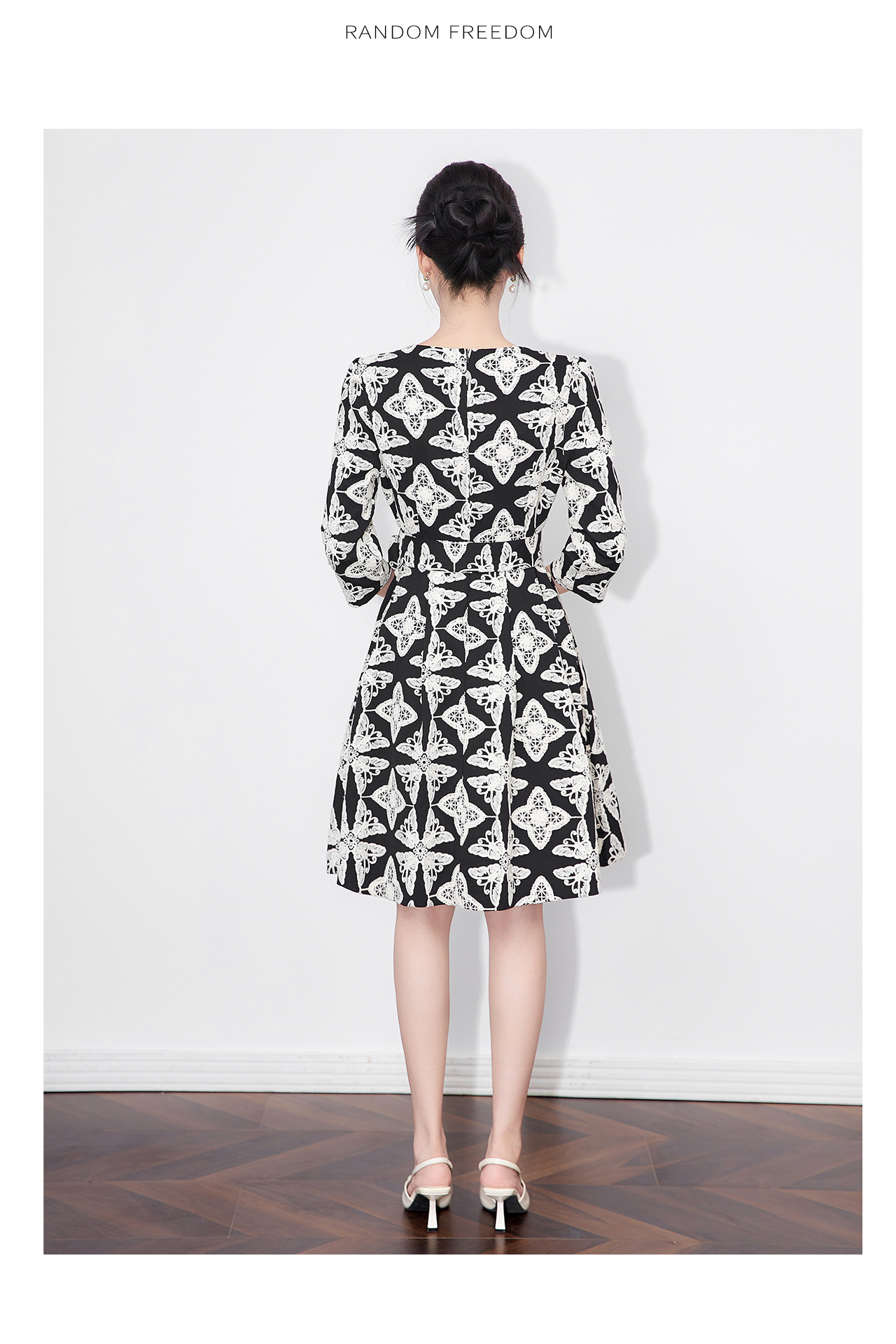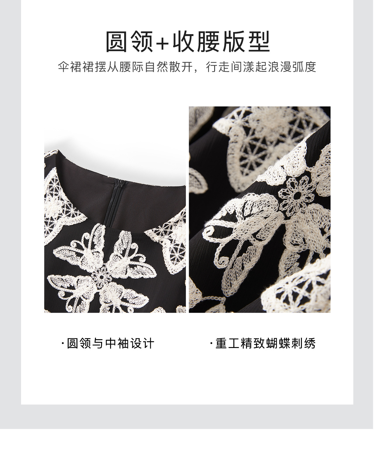 「高货wl」全新升级【铂金会员330/天猫449/差价119】(94931)洛诗琳气质轻奢刺绣花连衣裙2025秋季收腰显瘦大摆A字裙女
