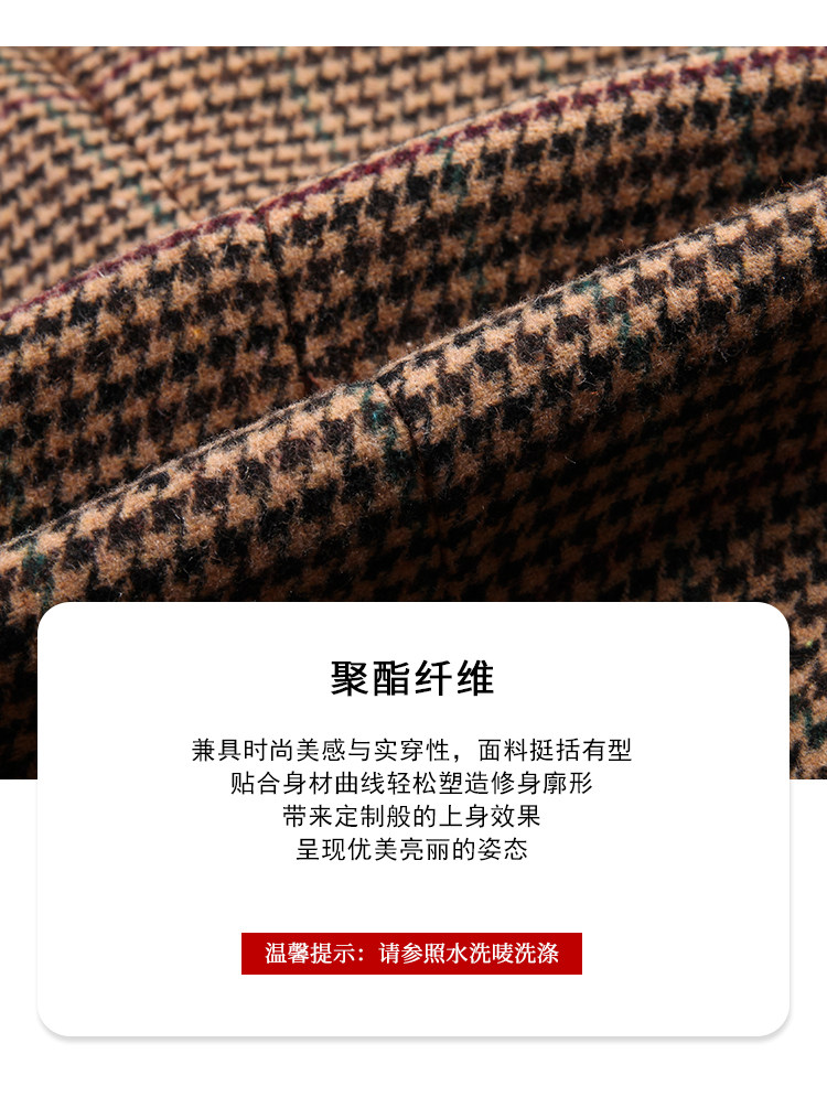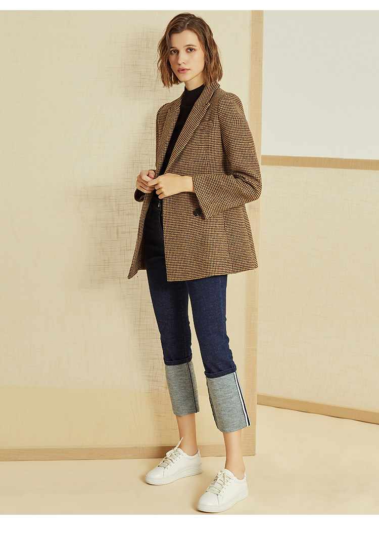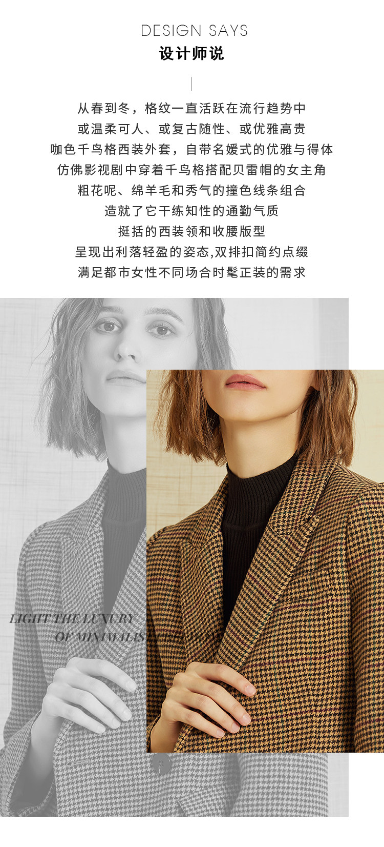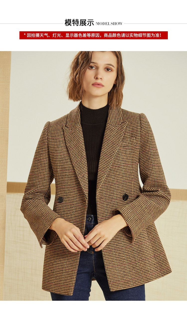 VIMAGE纬漫纪冬季复古格纹职业通勤双排扣西装短外套女V1214805