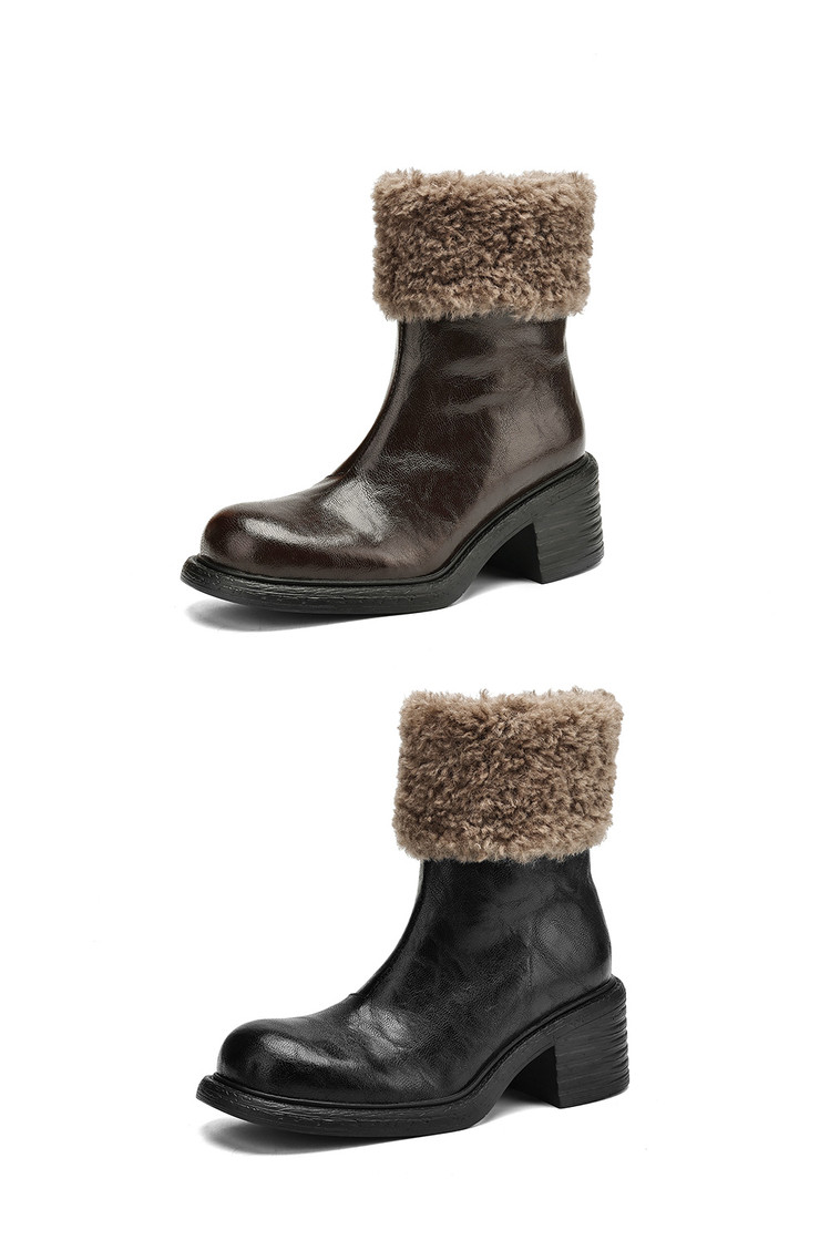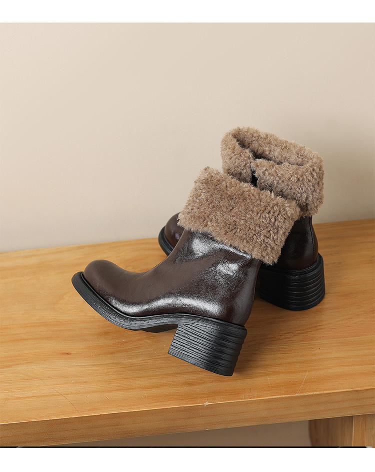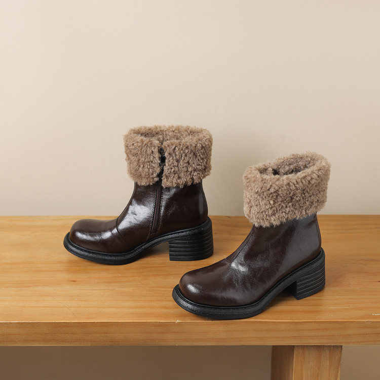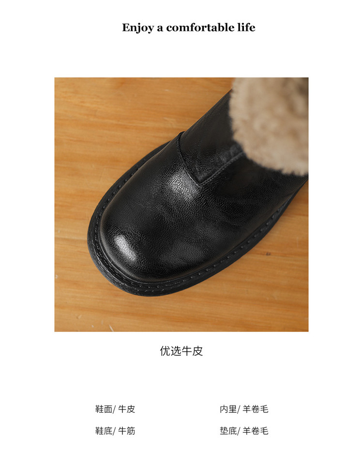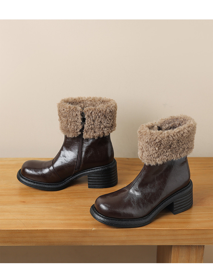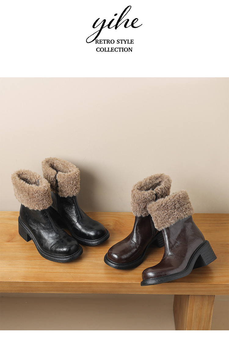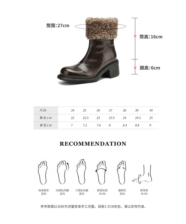 【预售5天】显瘦轻便毛靴冬季新款圆头舒适百搭粗高跟保暖短靴女雪地靴NX&cs88186