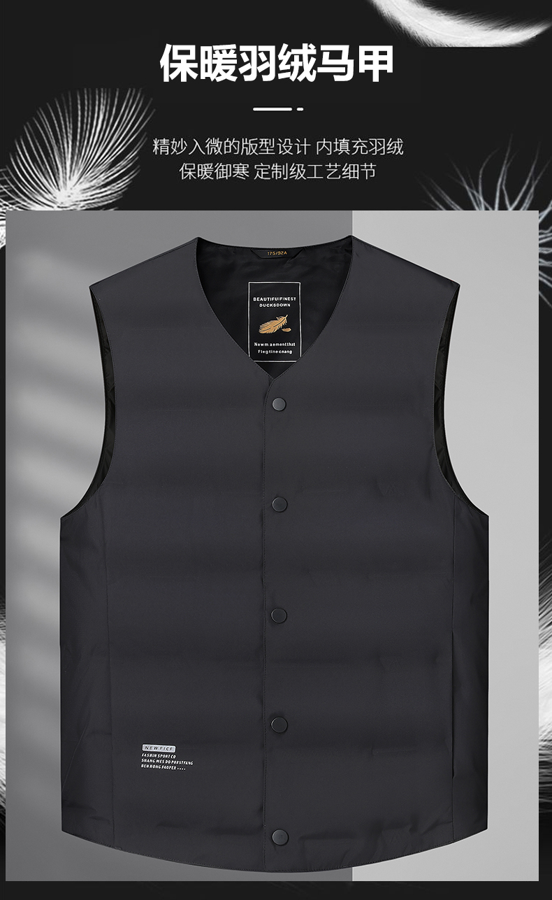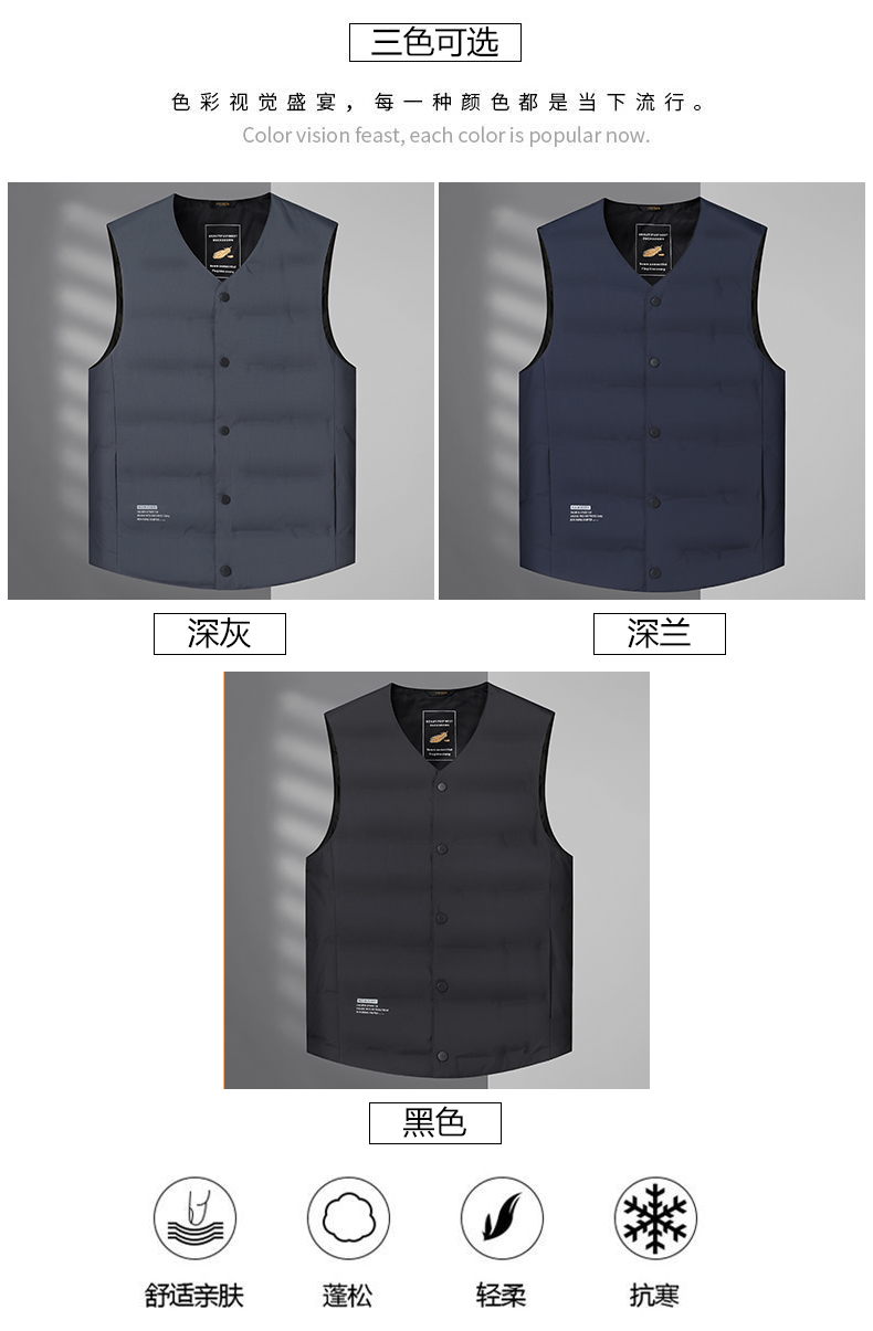 【90白鸭绒】【新款DLC】大依优型大码男装V领羽绒马甲简约休闲宽松外套男坎肩背心上衣保暖