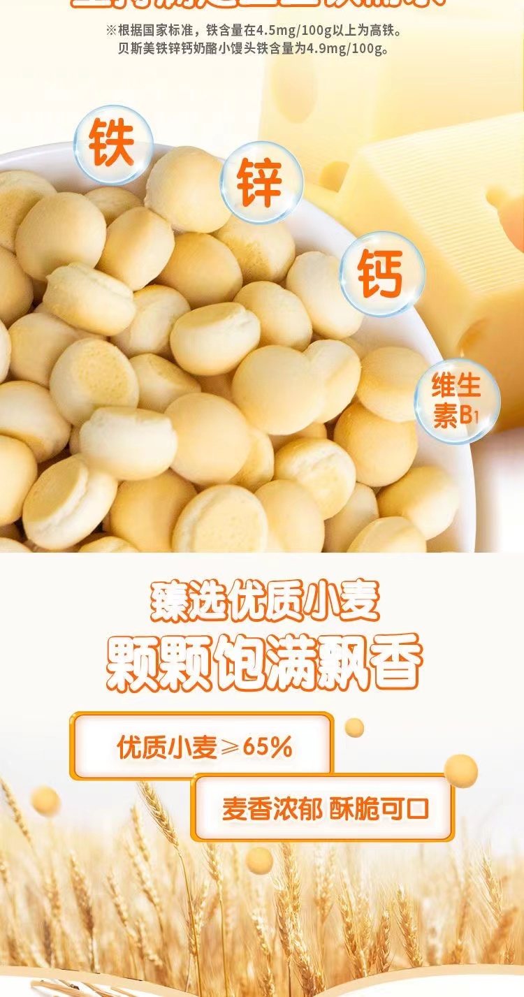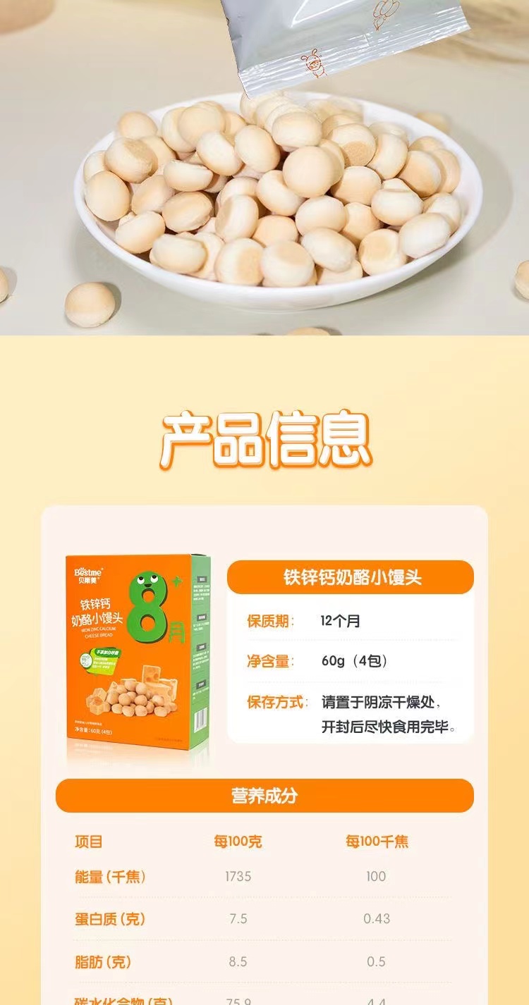 贝斯美铁锌钙奶酪小馒头 60g/盒