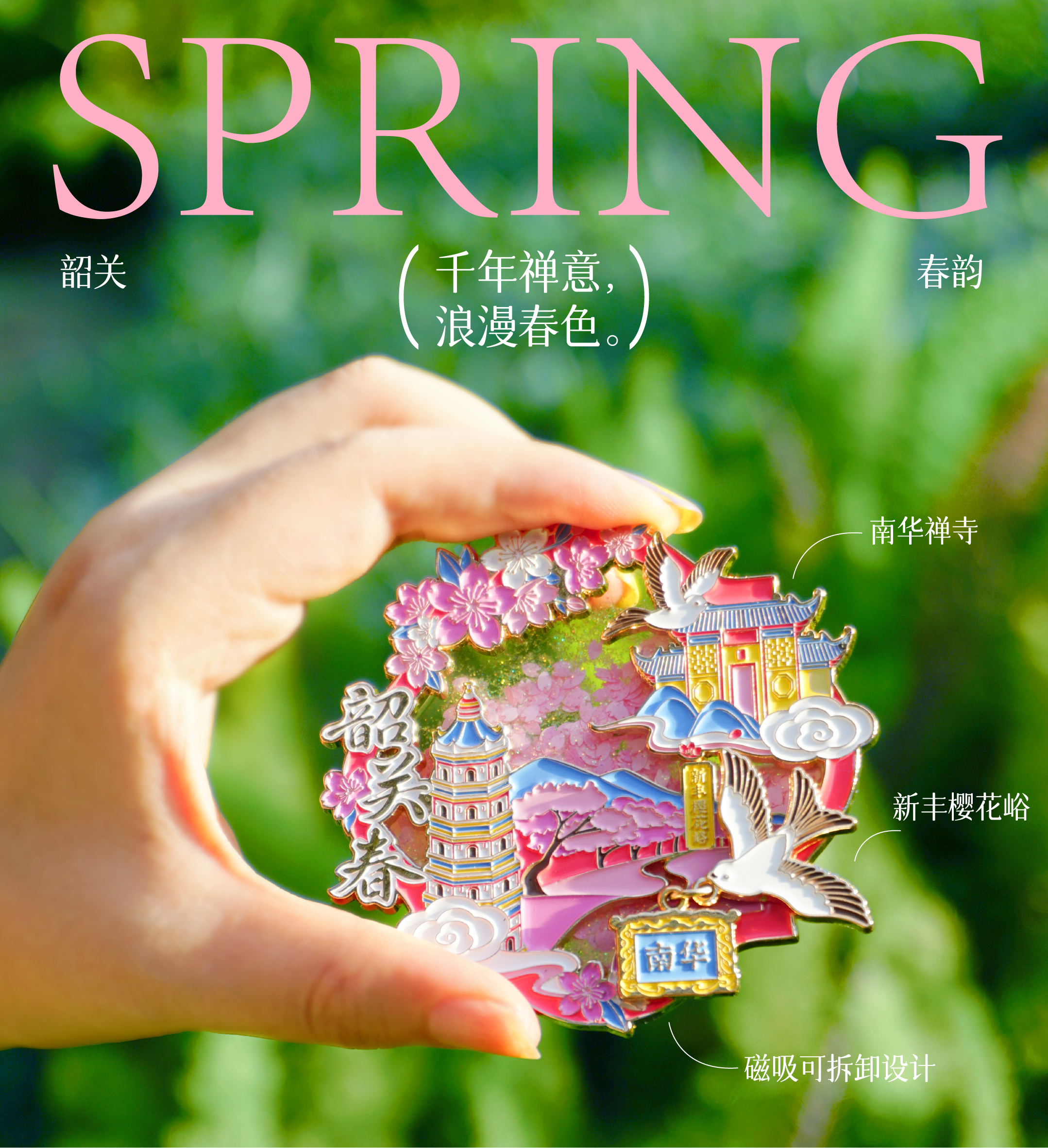 祈福与希望:樱花寓意“春暖花开”,寺庙元素传递平安祝愿,适合作为韶关文旅纪念品或节日赠礼。