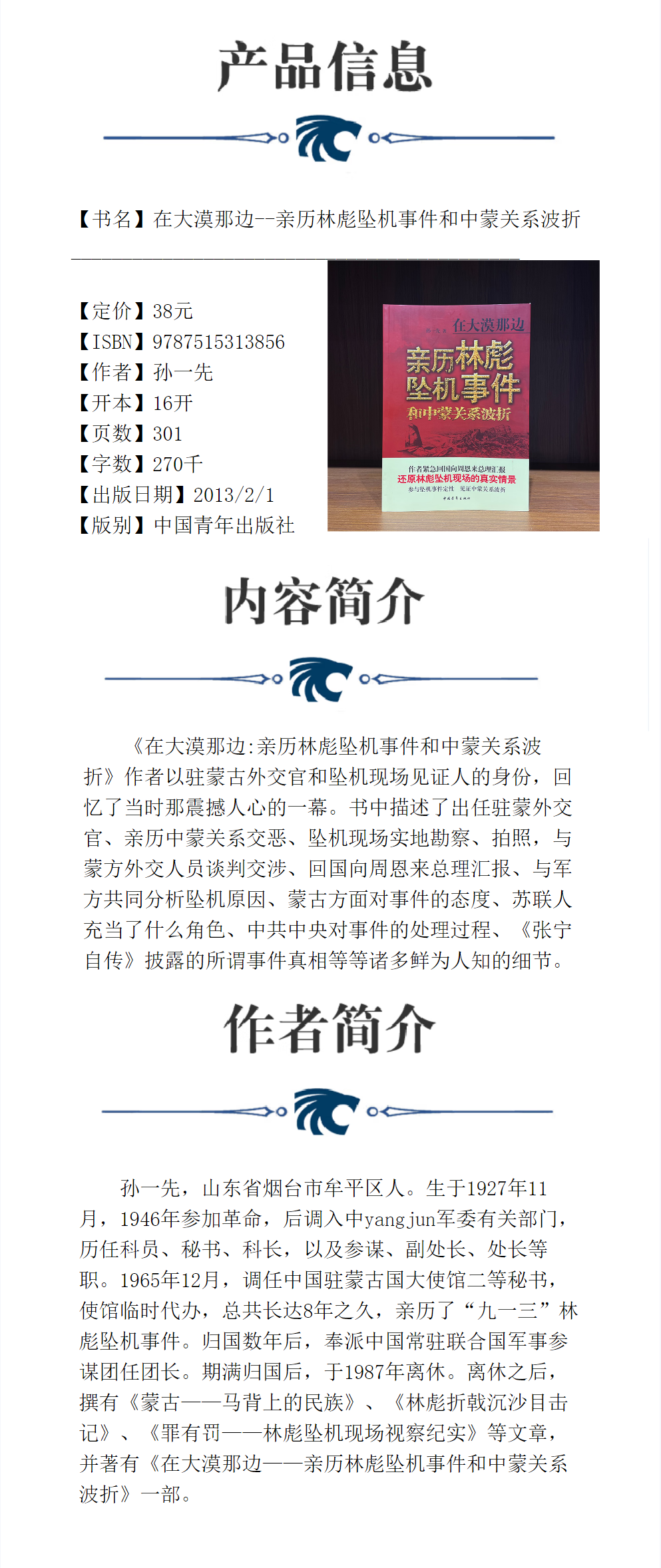 在大漠那边--亲历林彪坠机事件和中蒙关系波折 孙一先著 中国青年出版社