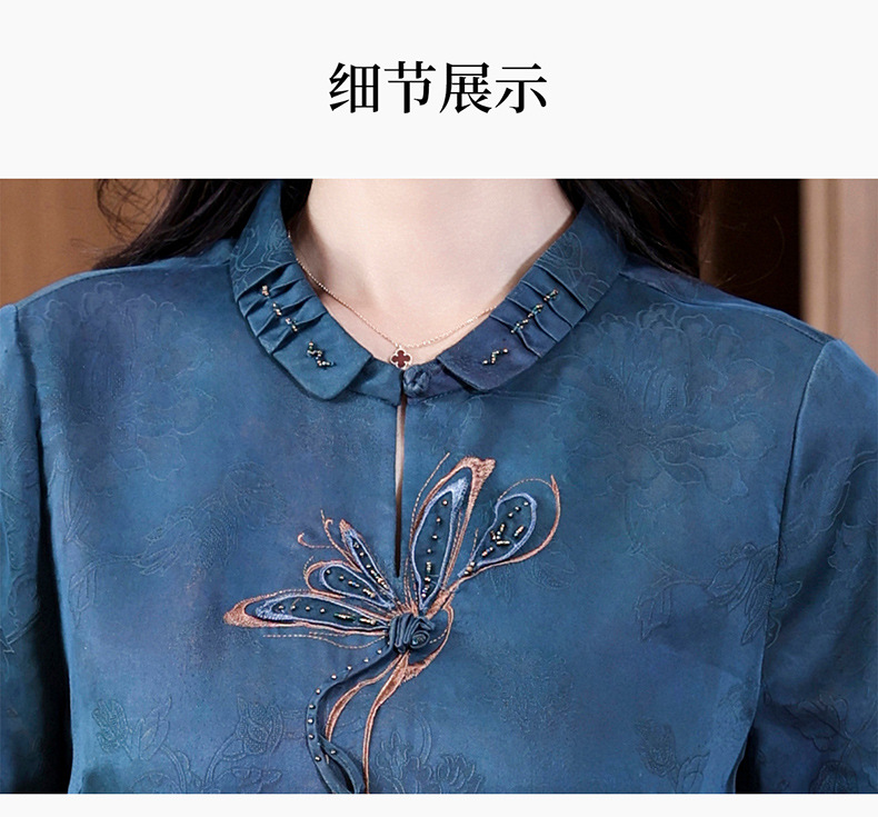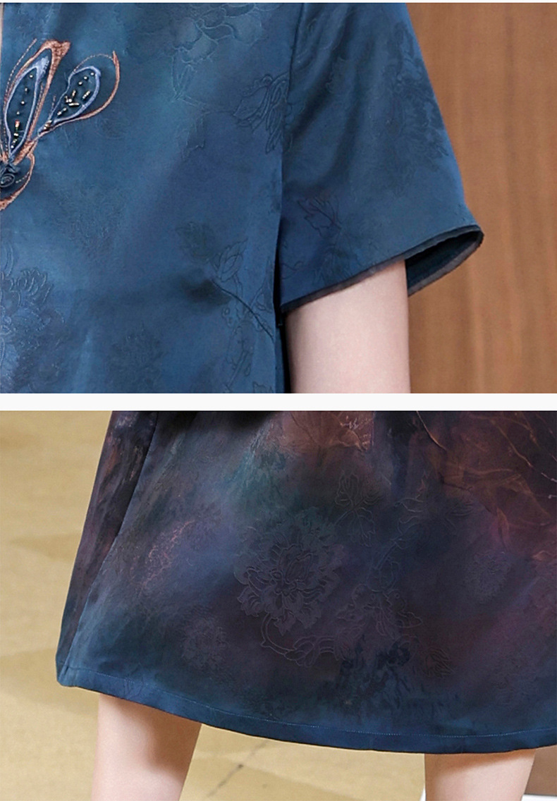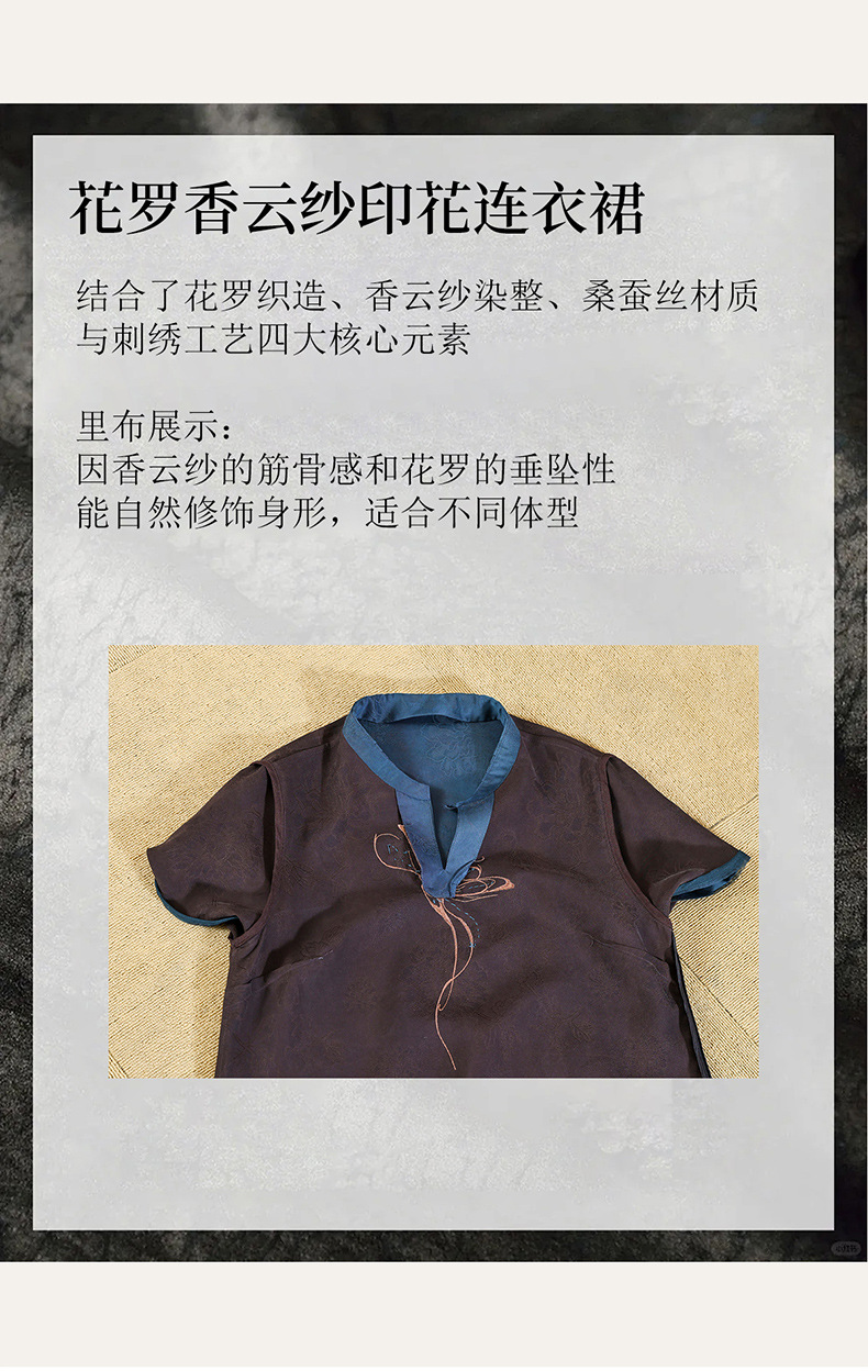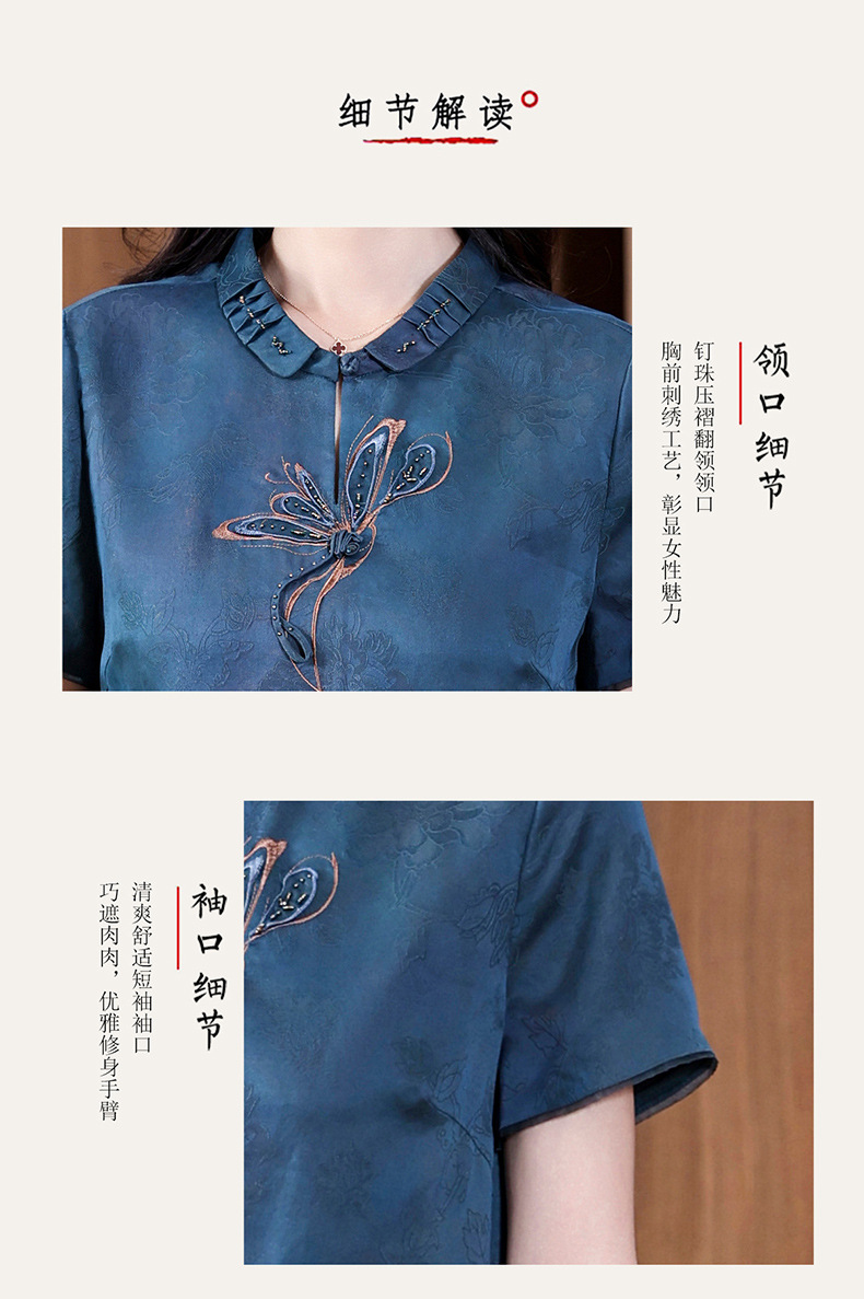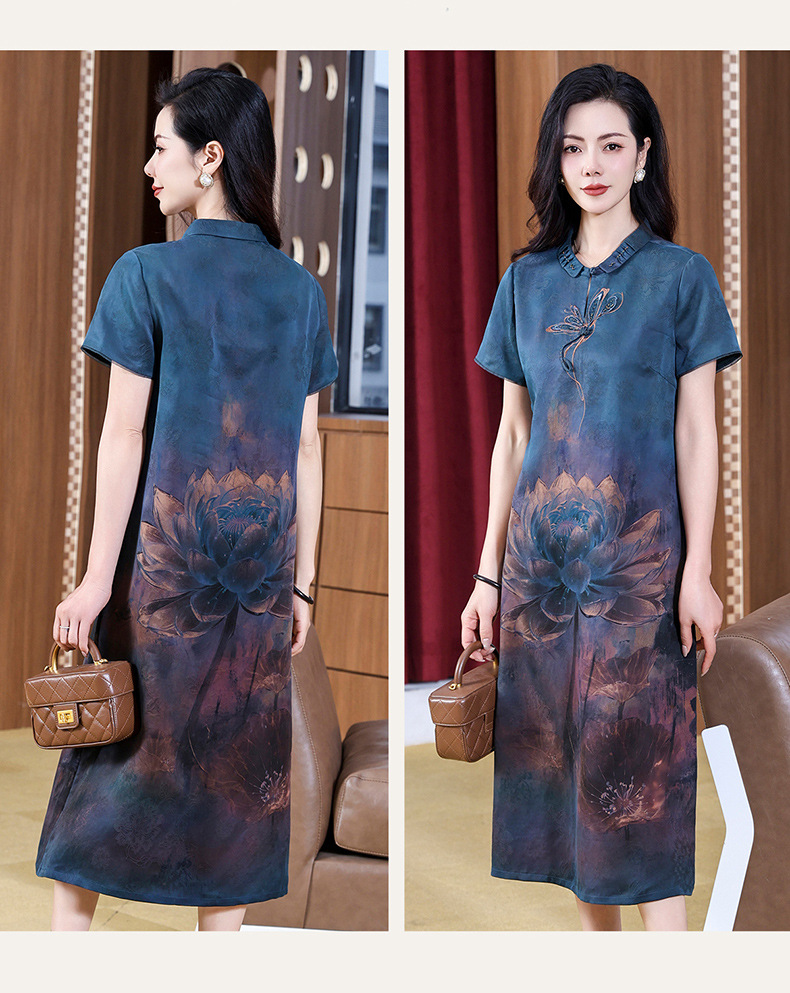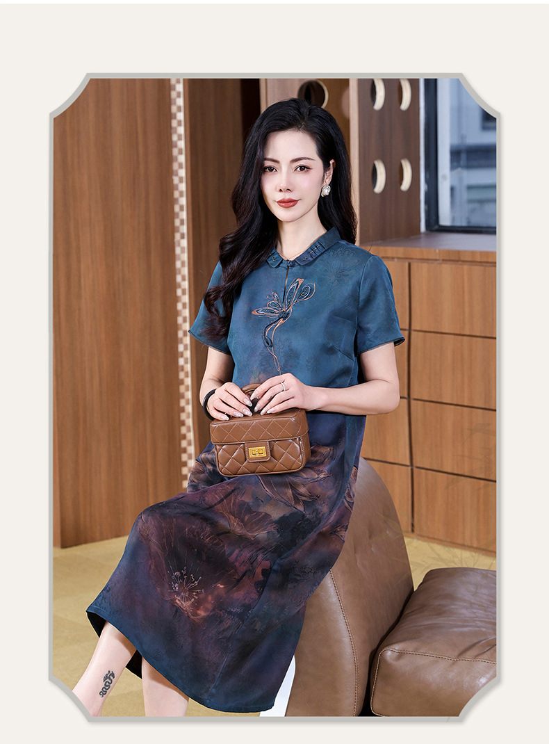 丁摩香云纱夏季短袖真丝旗袍连衣裙宽松大码过膝中长裙子AL221875
