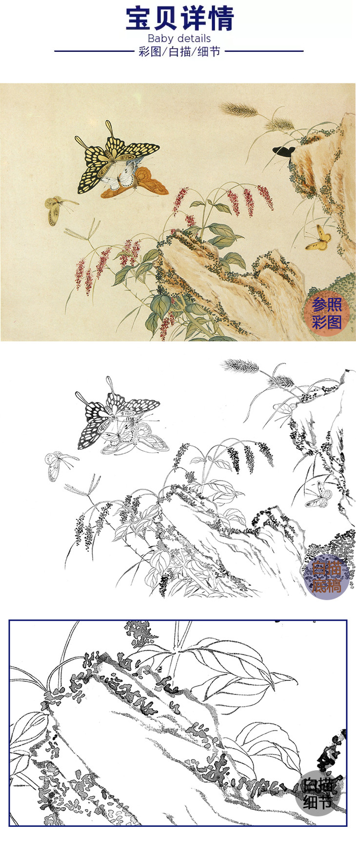 白描底稿-工笔花鸟-百蝶图之二-俞致贞-BH02