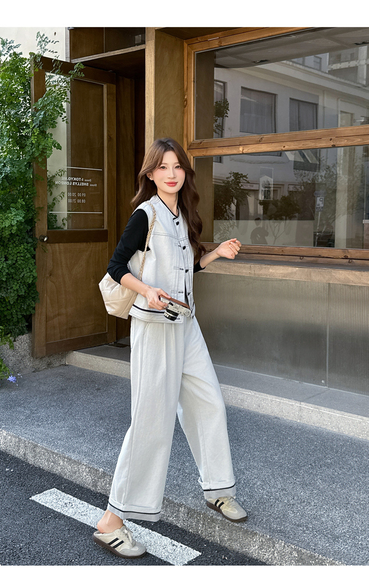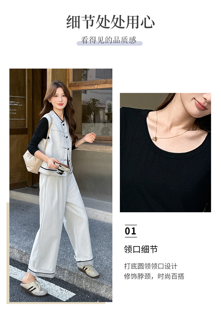 HR YDYX9371复古风酷飒时尚套装裤牛仔马甲t恤阔腿裤三两件套 商品图3