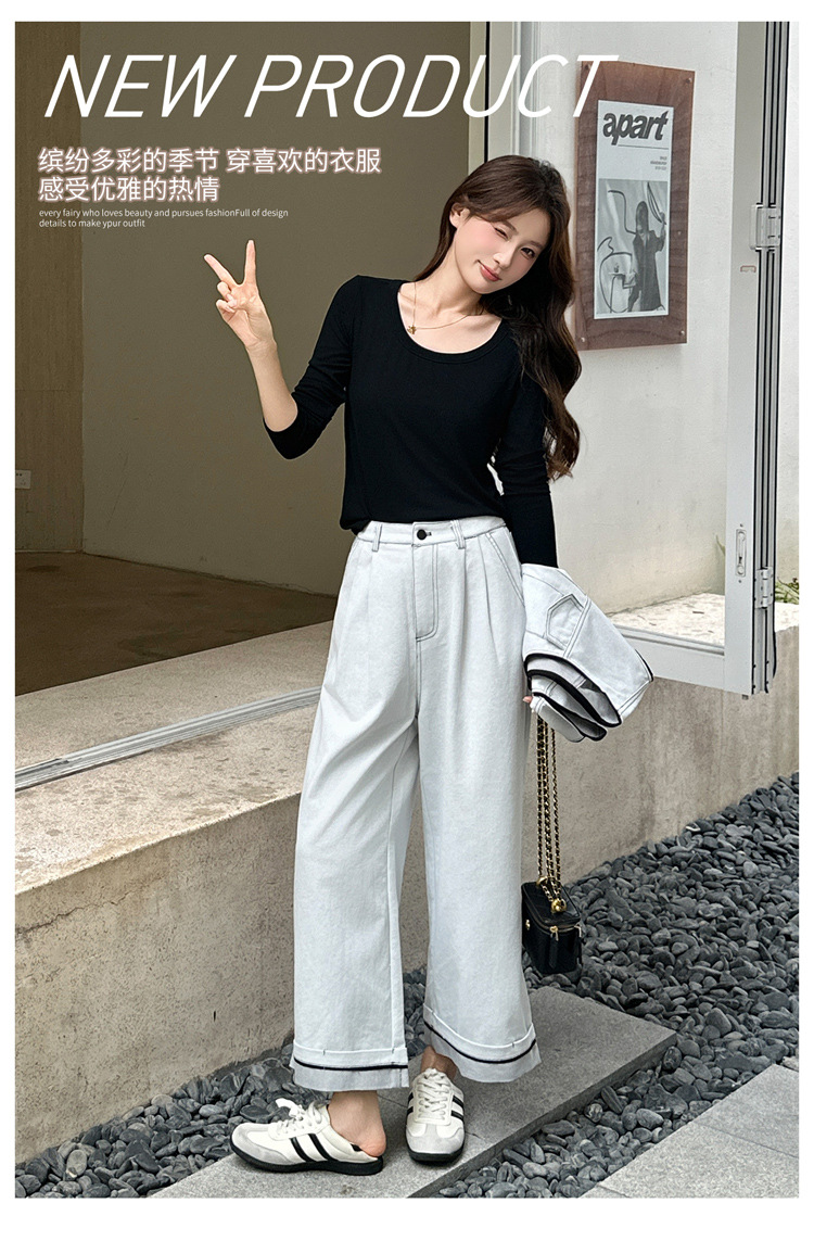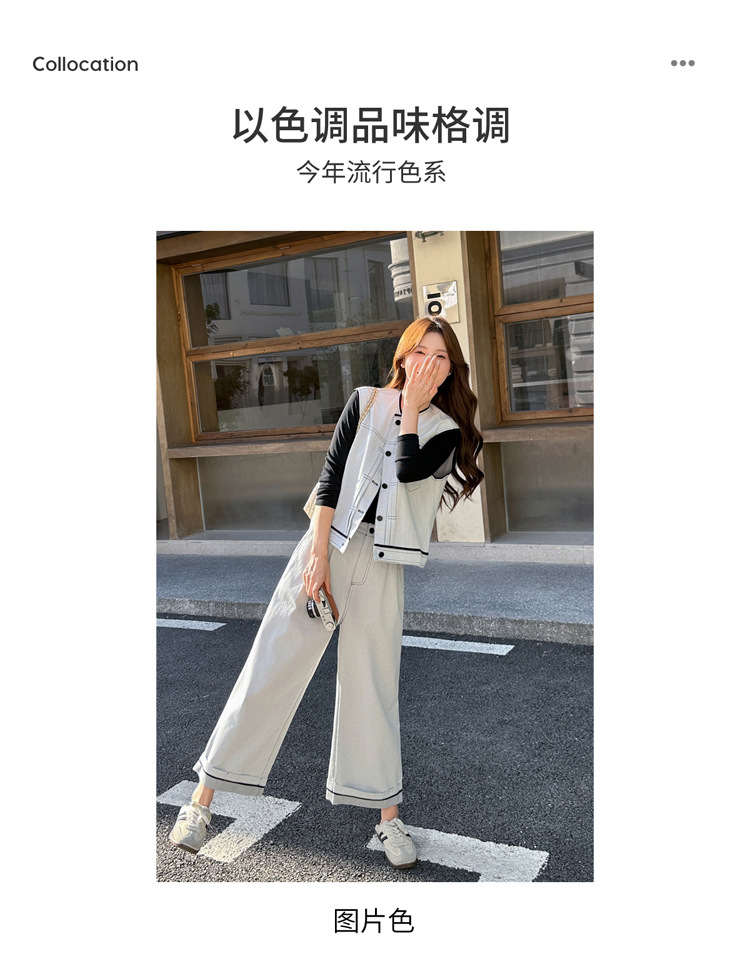 HR YDYX9371复古风酷飒时尚套装裤牛仔马甲t恤阔腿裤三两件套 商品图4