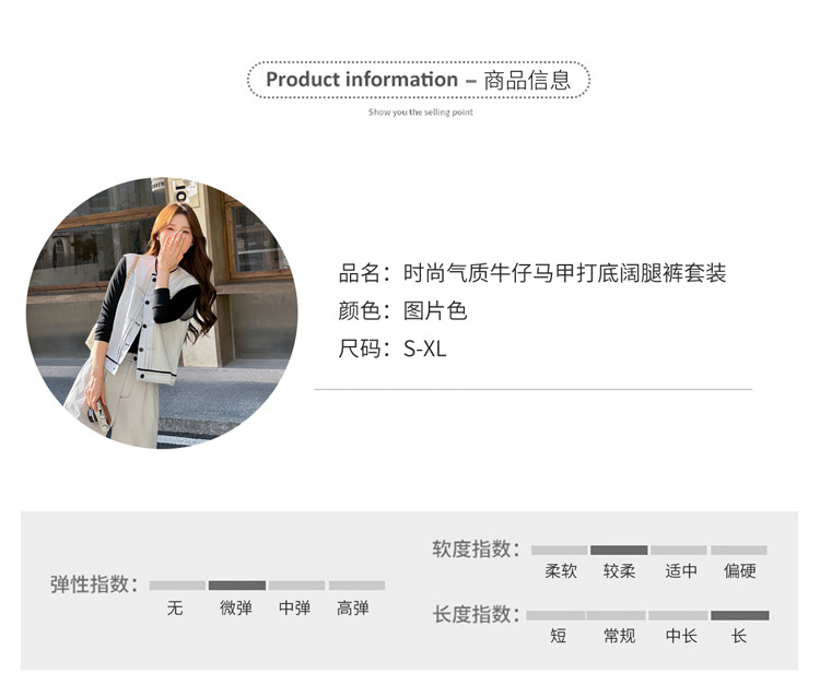 HR YDYX9371复古风酷飒时尚套装裤牛仔马甲t恤阔腿裤三两件套 商品缩略图0 HR YDYX9371复古风酷飒时尚套装裤牛仔马甲t恤阔腿裤三两件套 商品缩略图1 HR YDYX9371复古风酷飒时尚套装裤牛仔马甲t恤阔腿裤三两件套 商品缩略图2 HR YDYX9371复古风酷飒时尚套装裤牛仔马甲t恤阔腿裤三两件套 商品缩略图3 HR YDYX9371复古风酷飒时尚套装裤牛仔马甲t恤阔腿裤三两件套 商品缩略图4