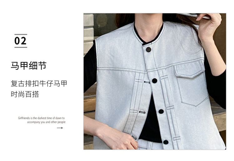 HR YDYX9371复古风酷飒时尚套装裤牛仔马甲t恤阔腿裤三两件套 商品图2