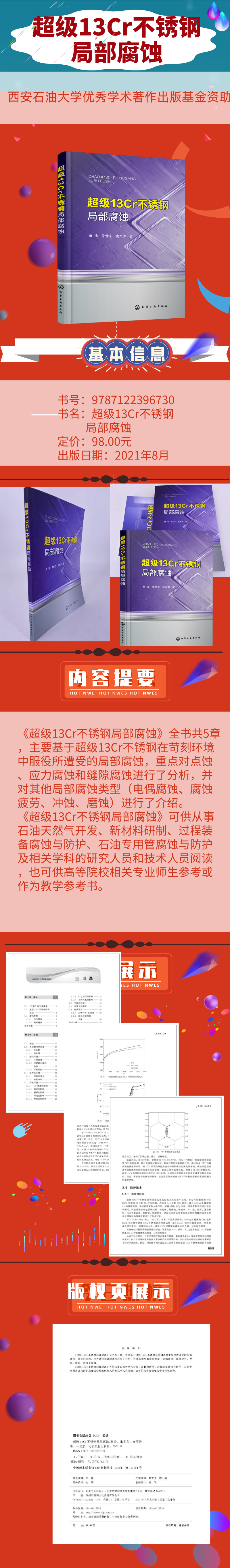 《超级13Cr不锈钢局部腐蚀》可供从事石油天然气开发、新材料研制、过程装备腐蚀与防护、石油专用管腐蚀与防护及相关学科的研究人员和技术人员阅读,也可供高等院校相关专业师生参考。