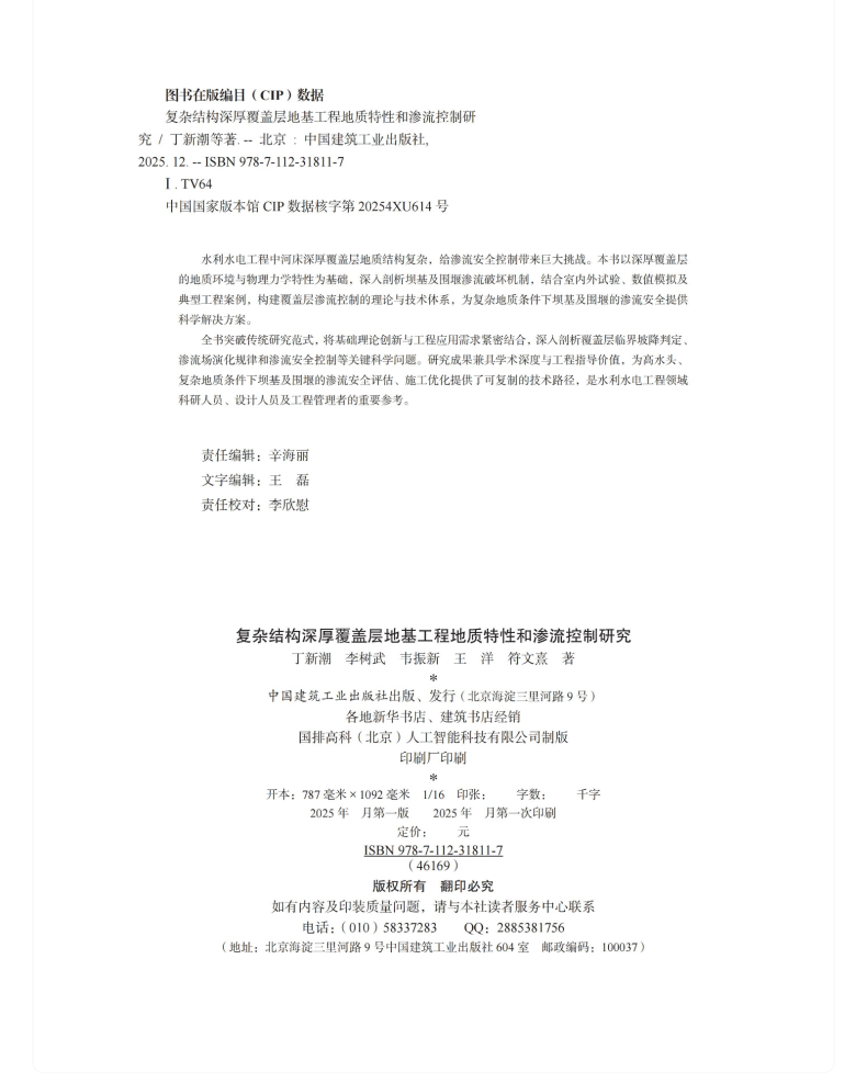 书名:复杂结构深厚覆盖层地基工程地质特性和渗流控制研究