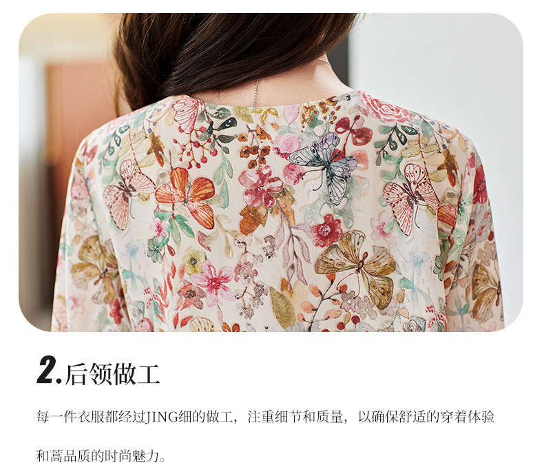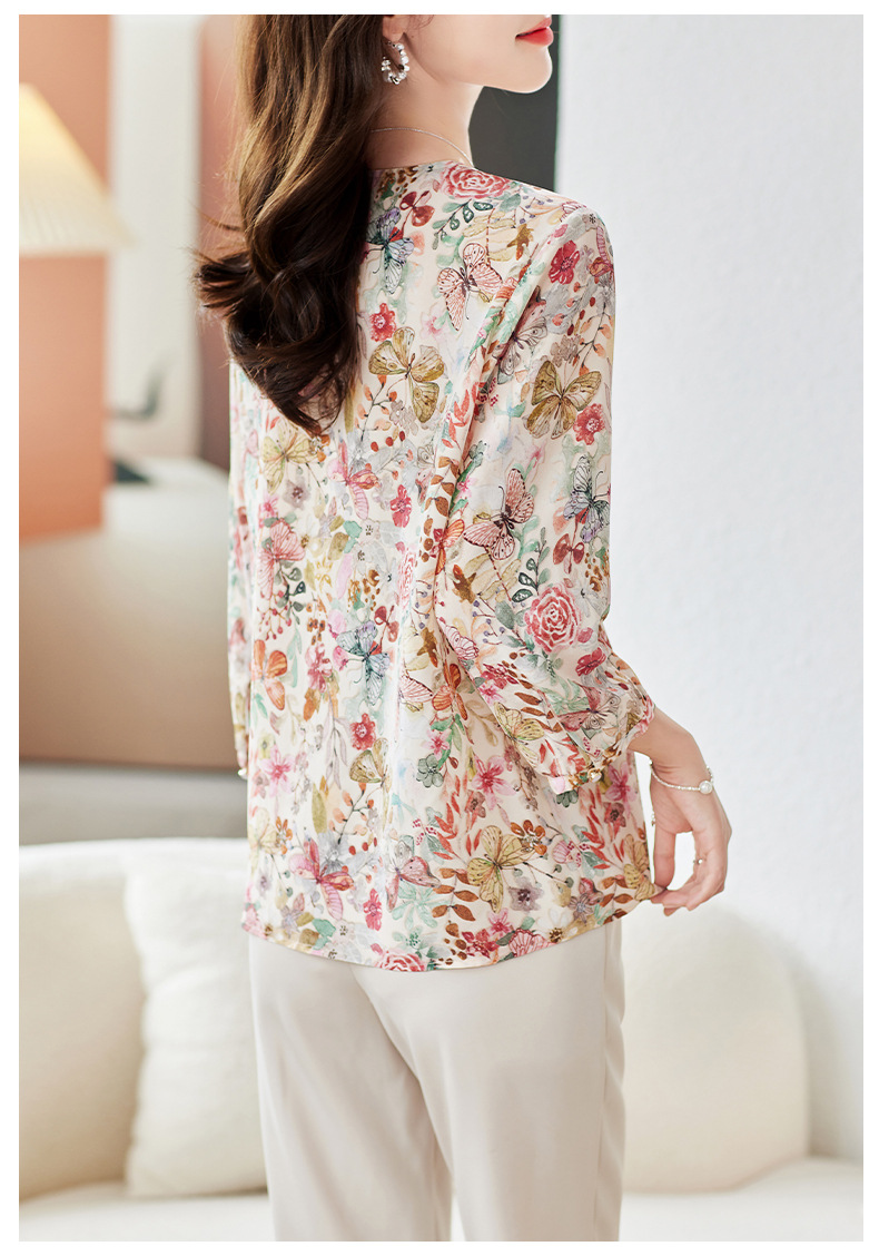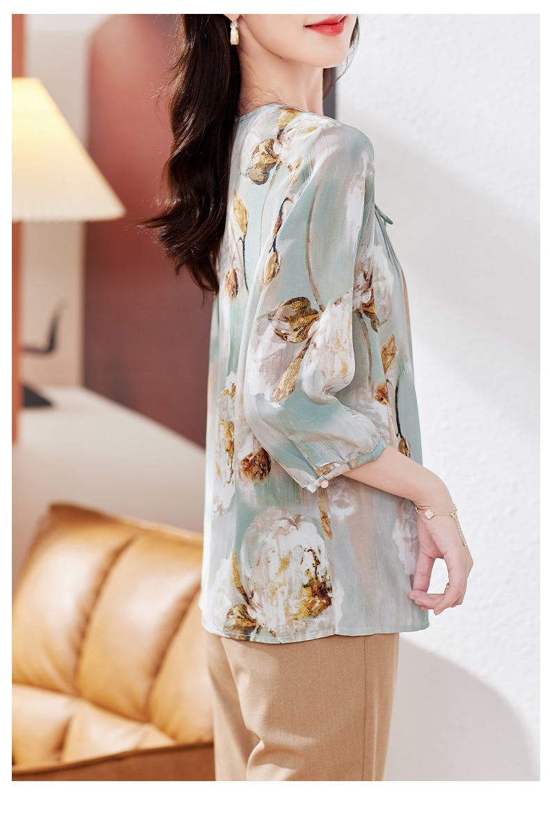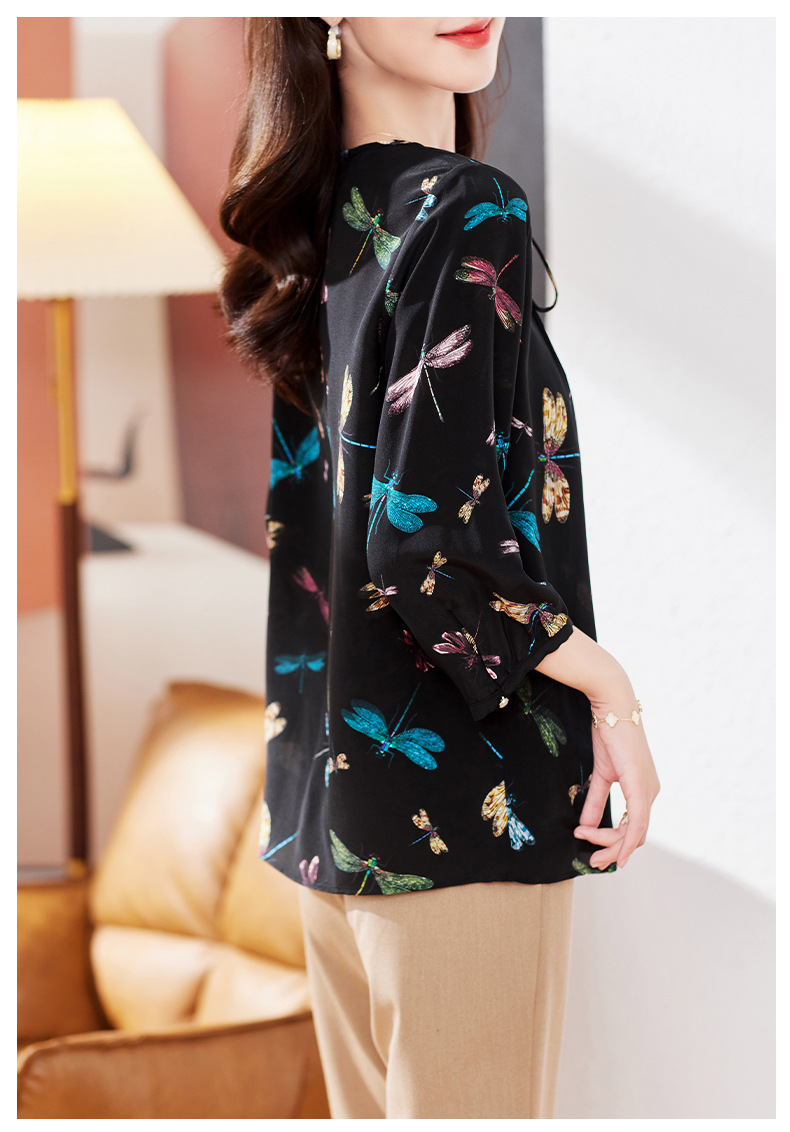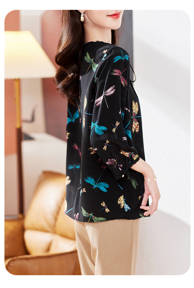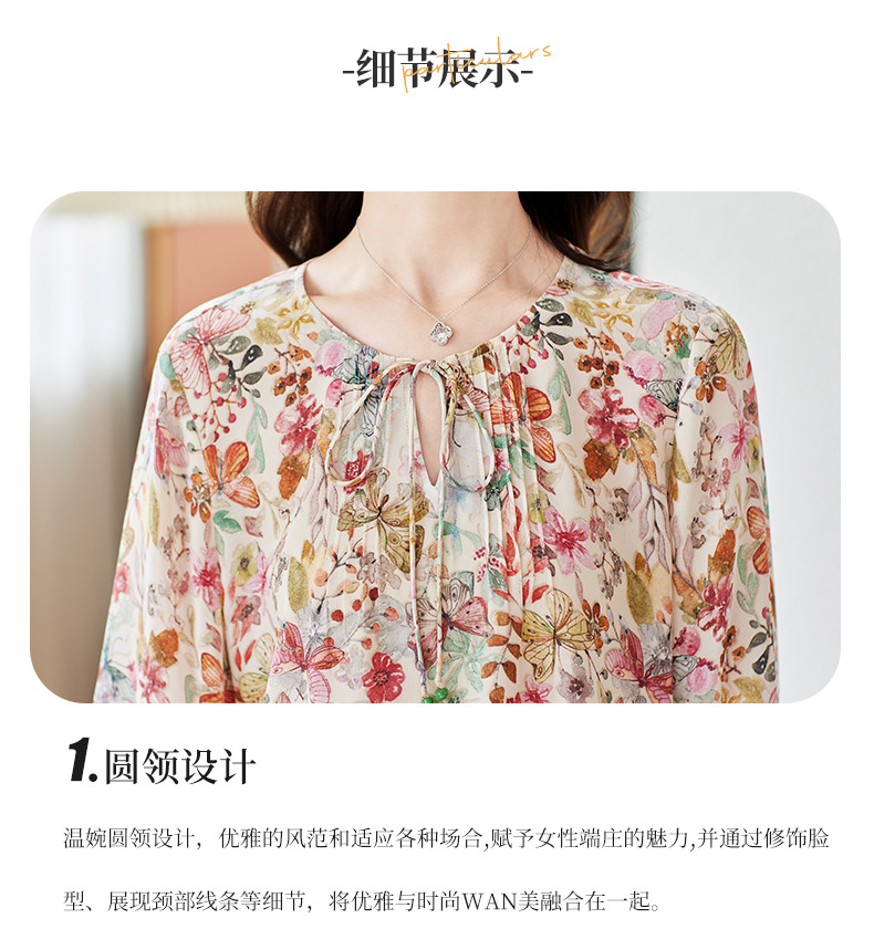 KQ-19175系带双绉真丝上衣女士秋新款宽松大码小衫设计感七分袖桑蚕丝衬衫