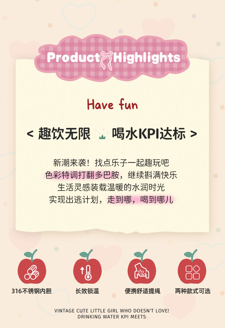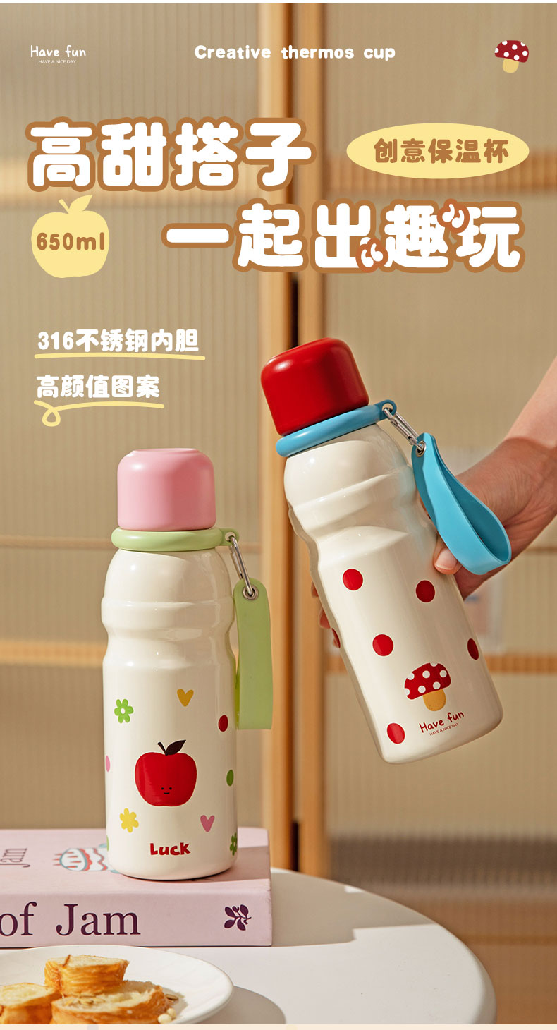 摩登主妇 保温杯女生高颜值便携水杯2024新款圣诞节礼物大容量杯子