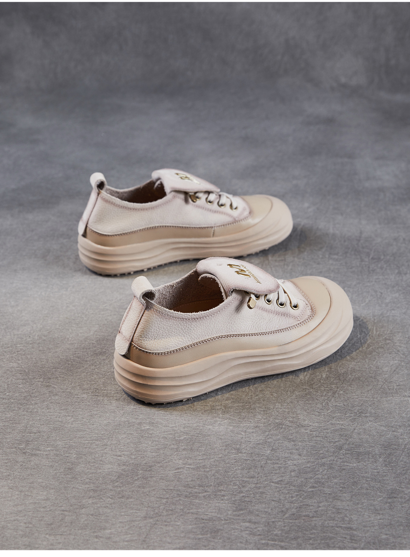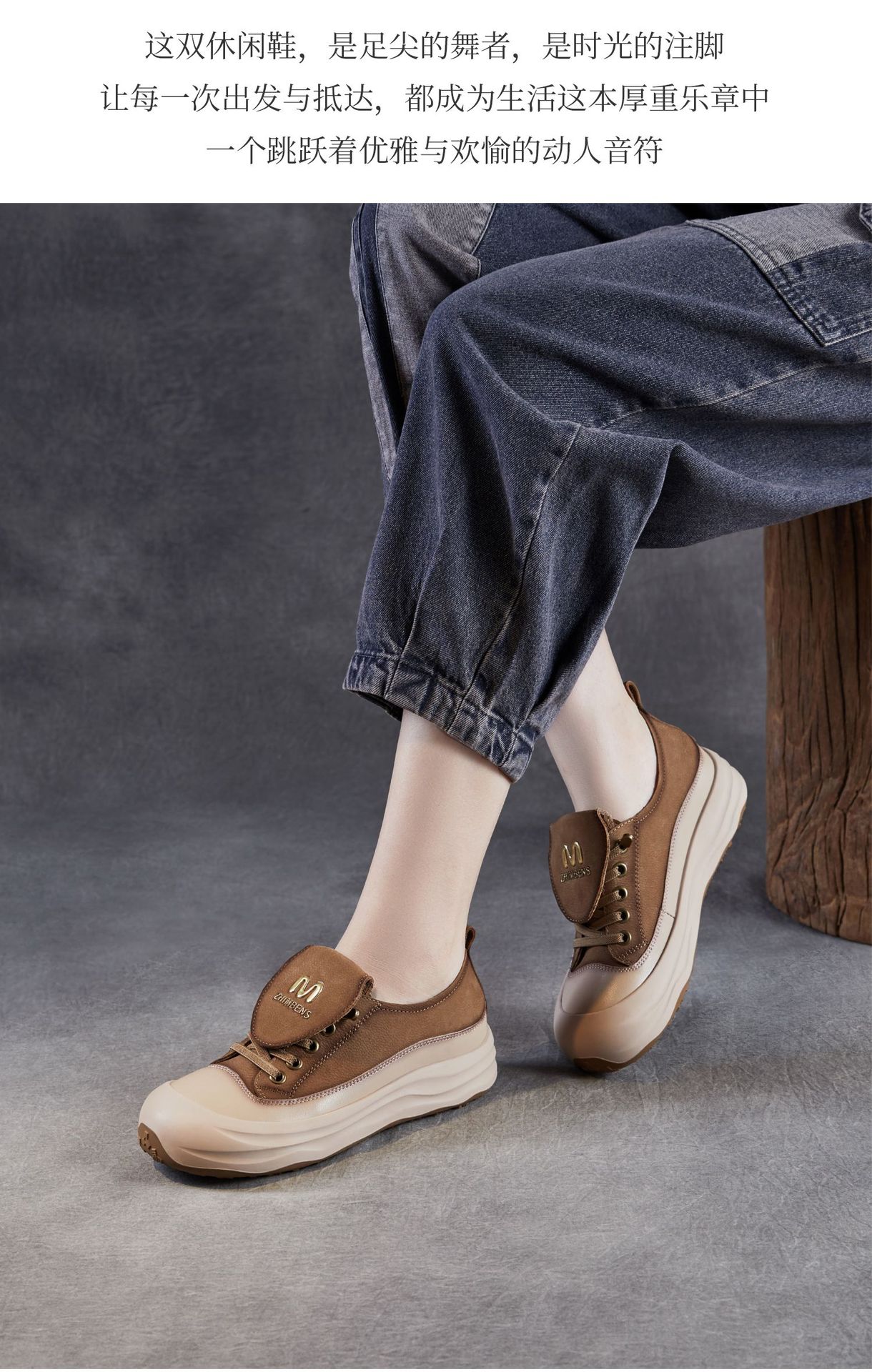 真皮复古休闲鞋,百搭舒适软底丑萌单鞋拼色平底板鞋ZM258592
