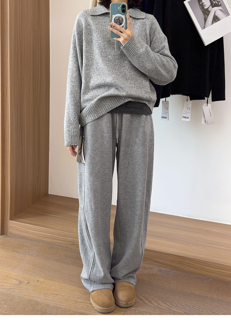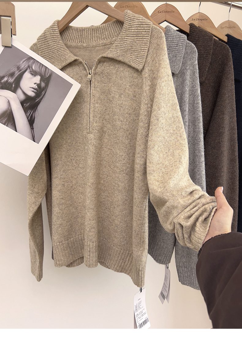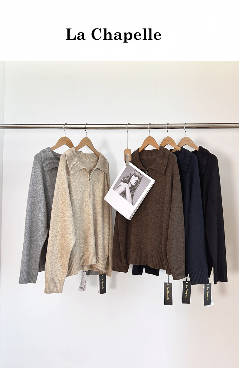 会员福利【老钱风~慵懒法式】拉夏贝尔/La Chapelle绵羊毛半开领拉链翻领设计软糯针织衫休闲百搭