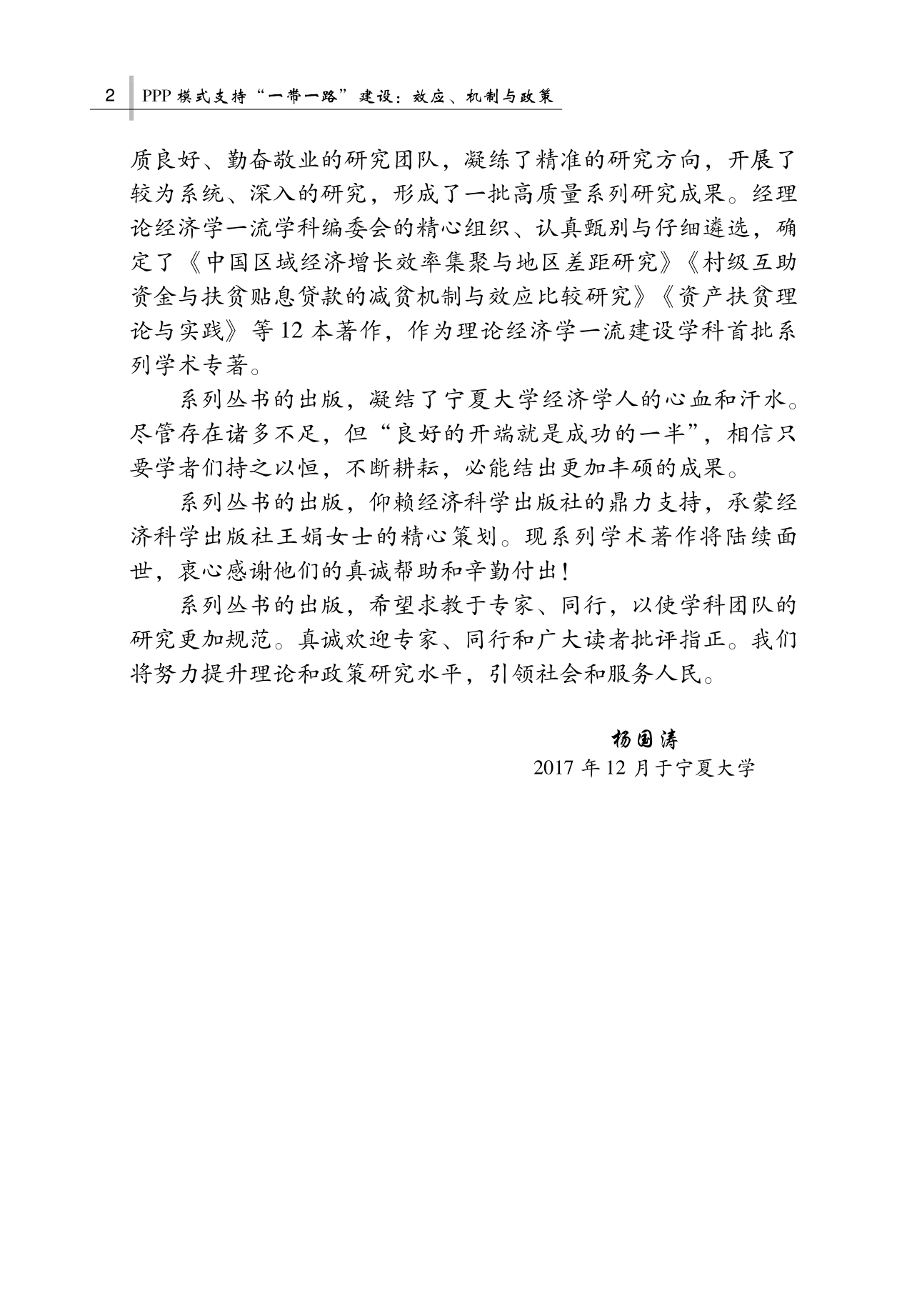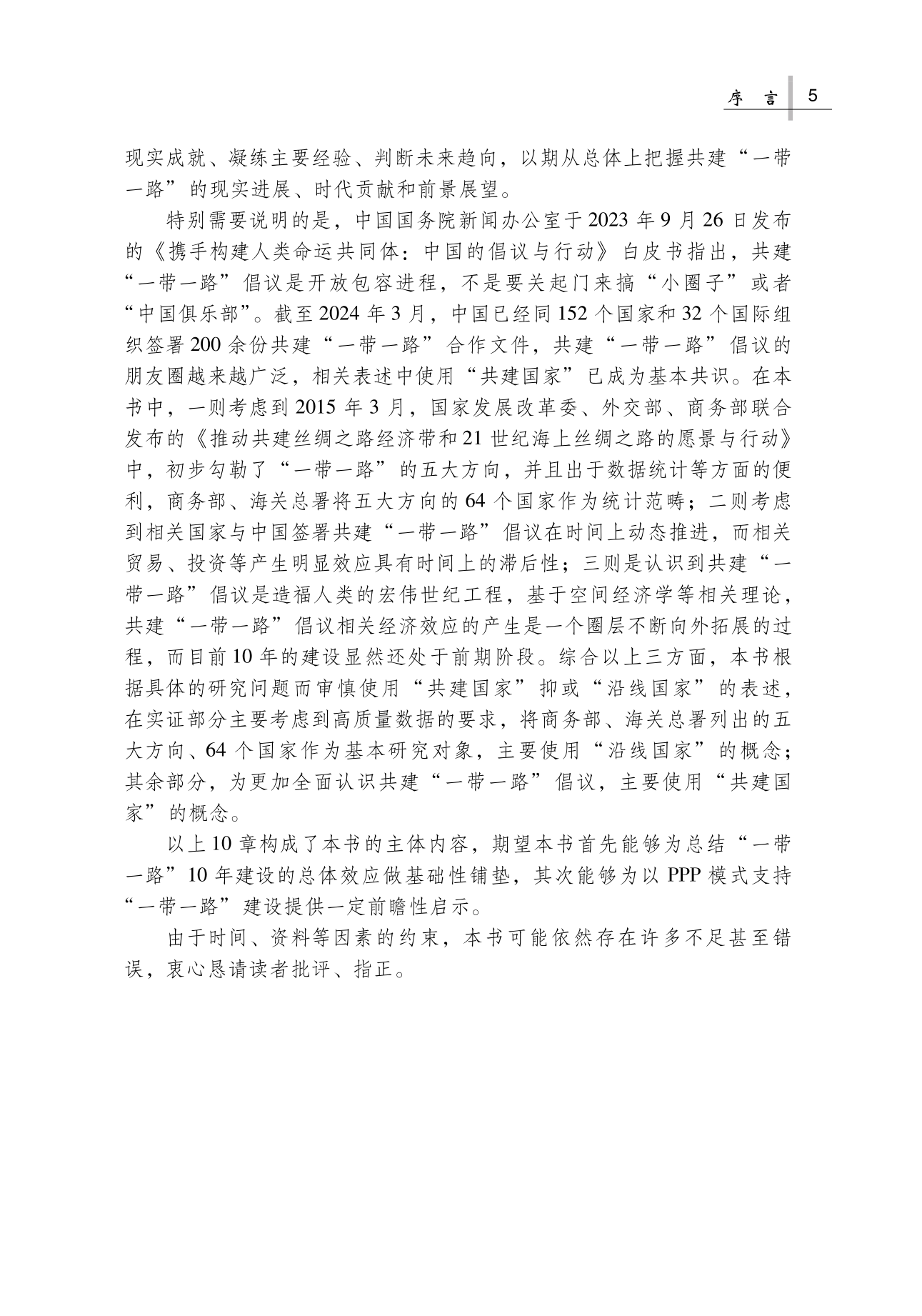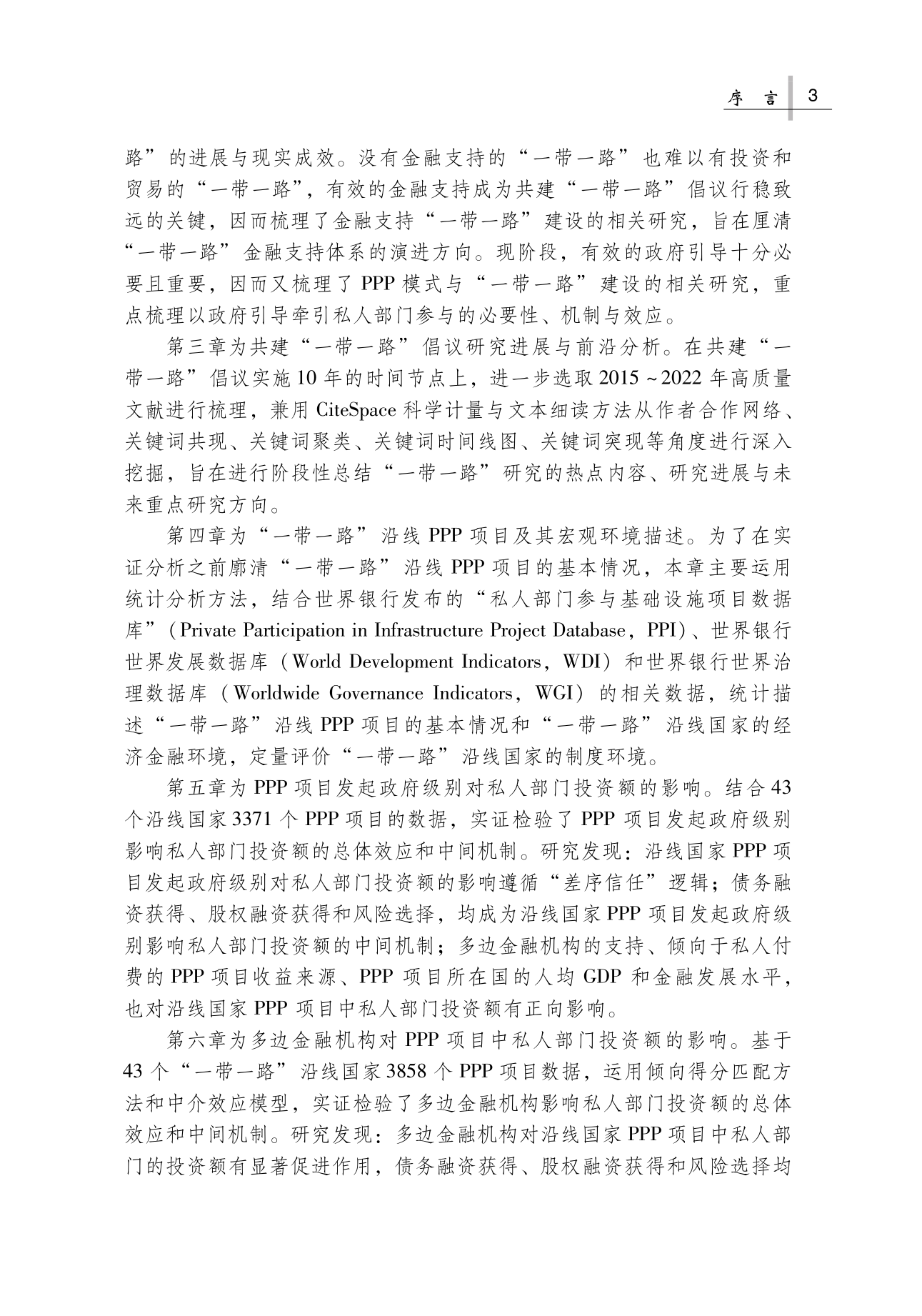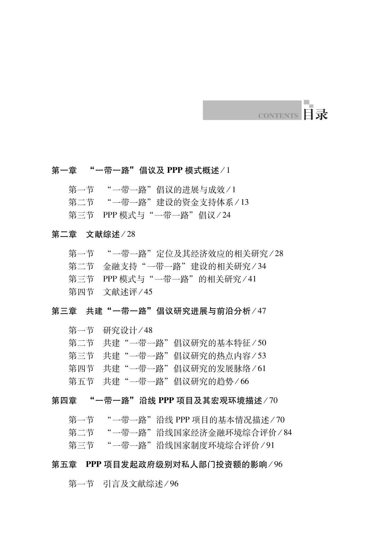 基于上述背景,本书聚焦“一带一路”沿线PPP项目,集中探究PPP模式支持“一带一路”建设的效应、机制与政策,以期为撬动包括中资、东道国和第三方国家在内的社会资本参与沿线PPP项目建言献策,为中国“走出去”企业趋利避害提供参考,为政策沟通和回应外界质疑提供依据。