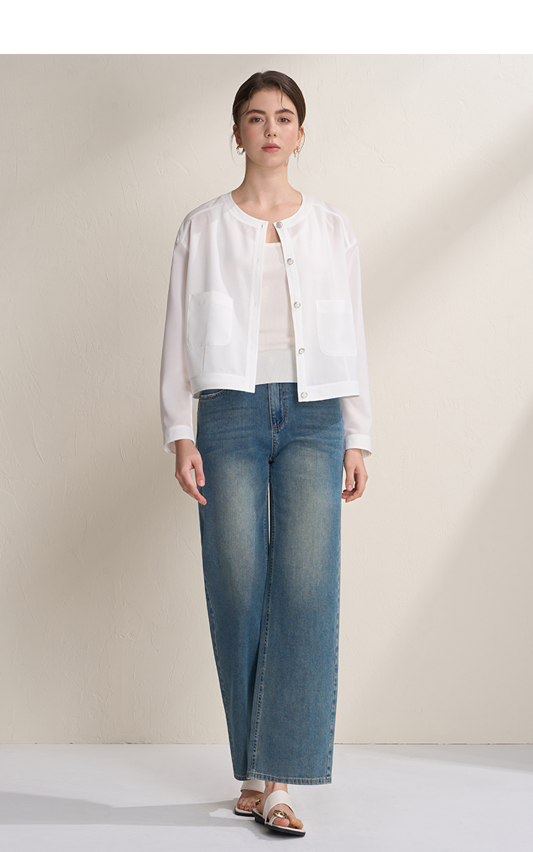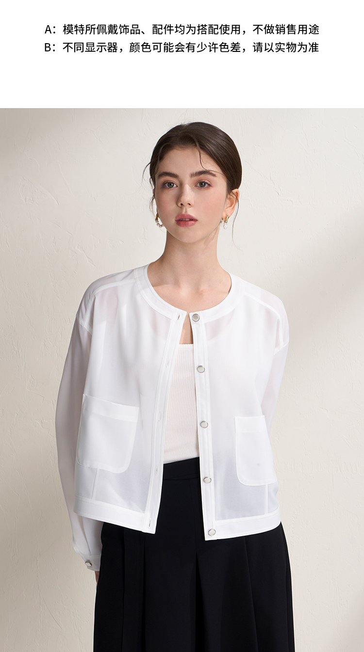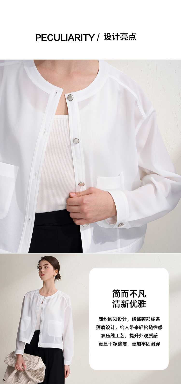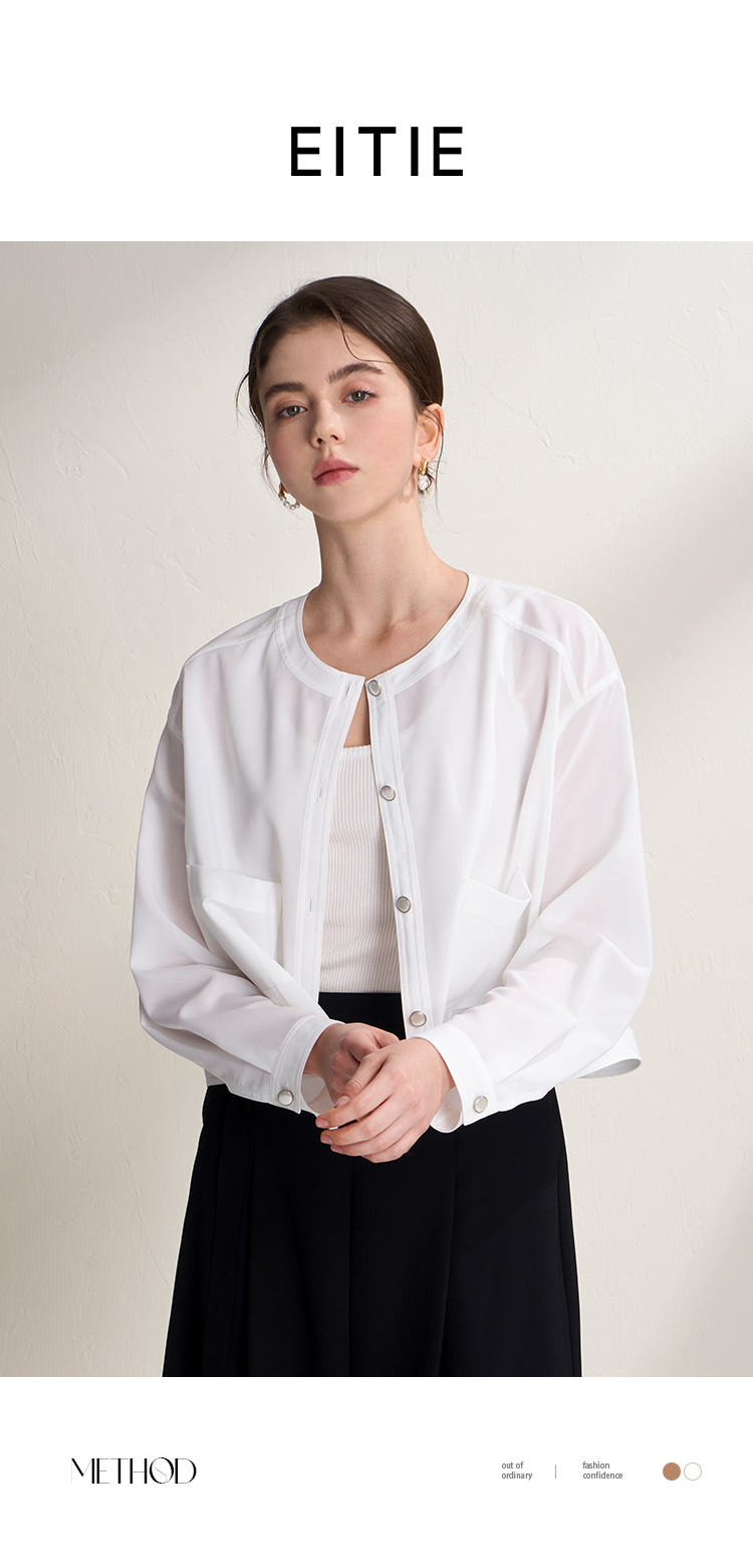 EITIE爱特爱轻薄透气白色清爽简约短款舒适休闲外套2026夏季新款B2603202