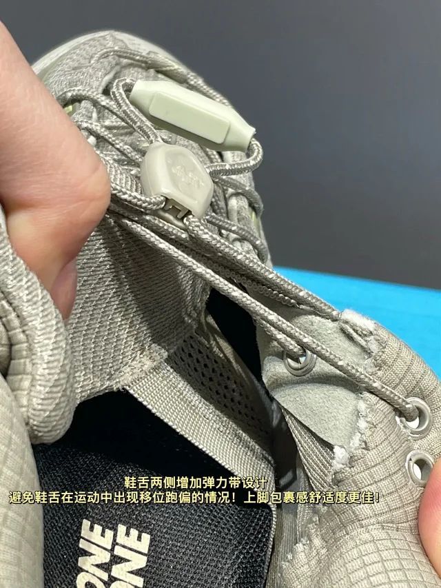 鞋舌两侧增加弹力带设计 避免鞋舌在运动中出现移位跑偏的情况!上脚包裹感舒适度更佳!