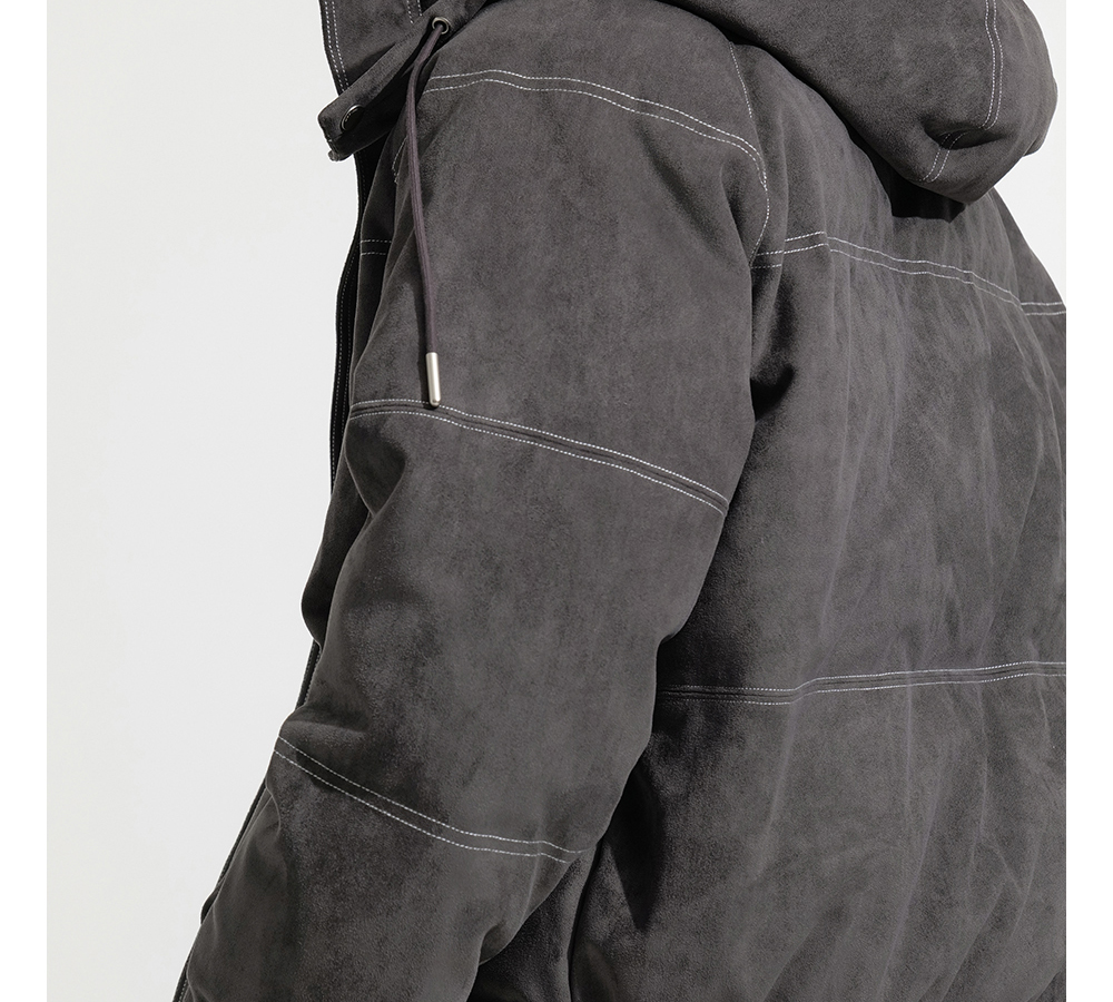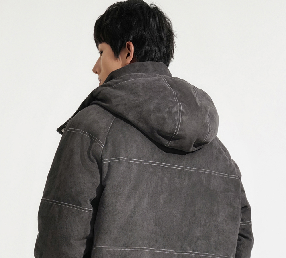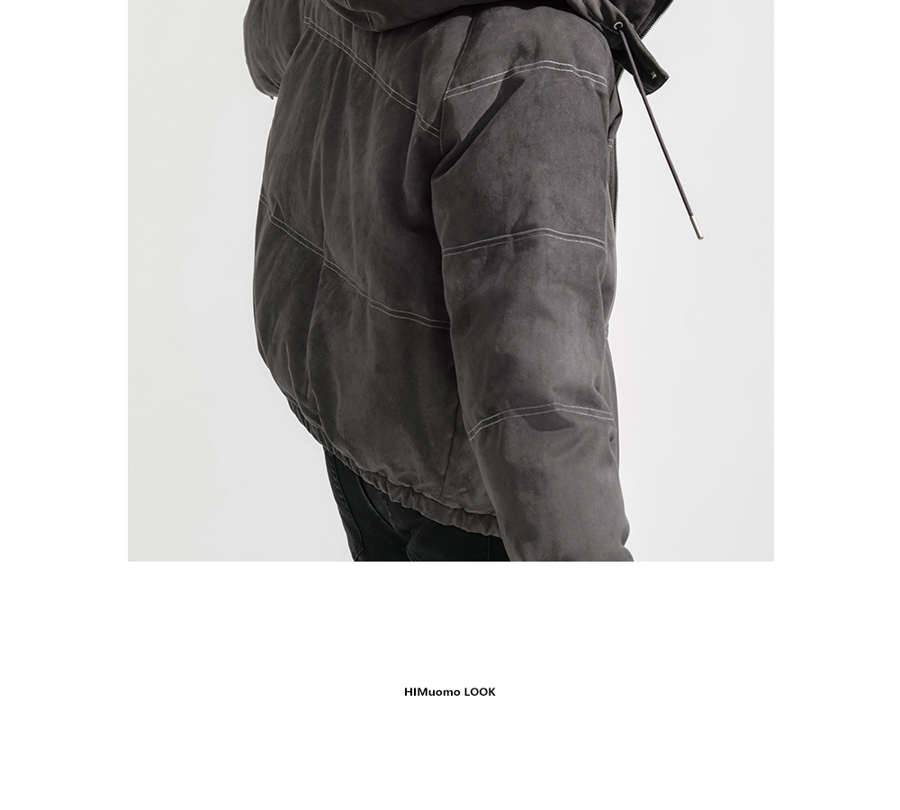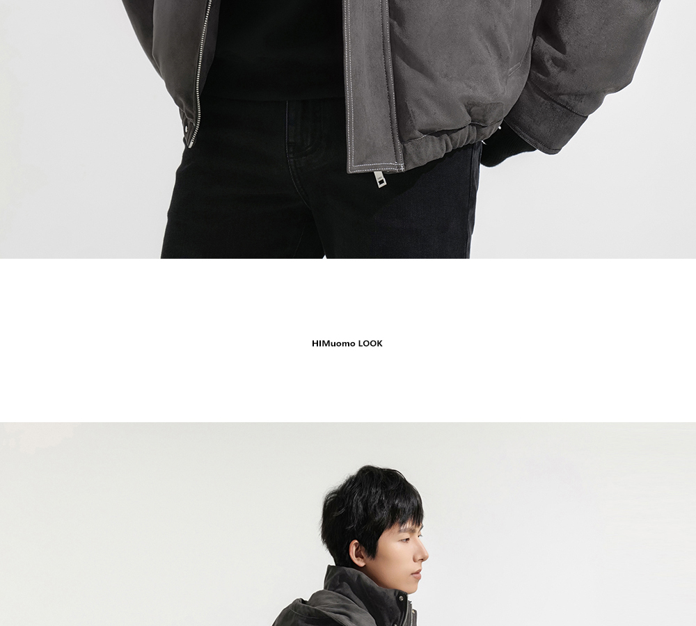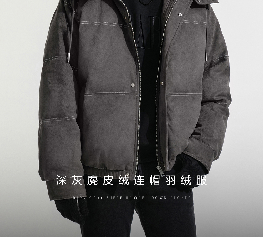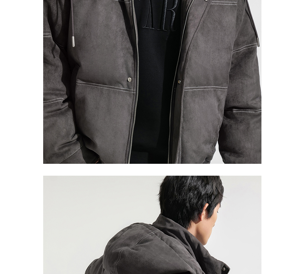 HIM漢崇 细腻仿麂皮绒羽绒服撞色缉明线【可拆连帽】外套2025冬季