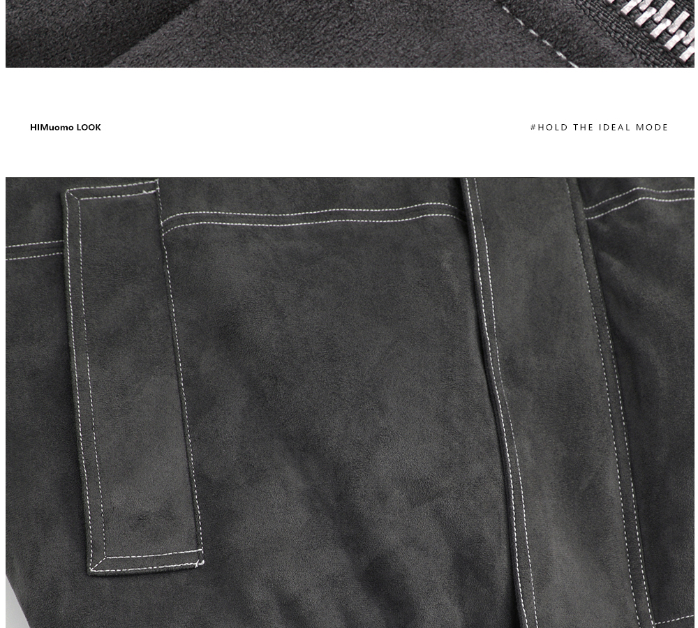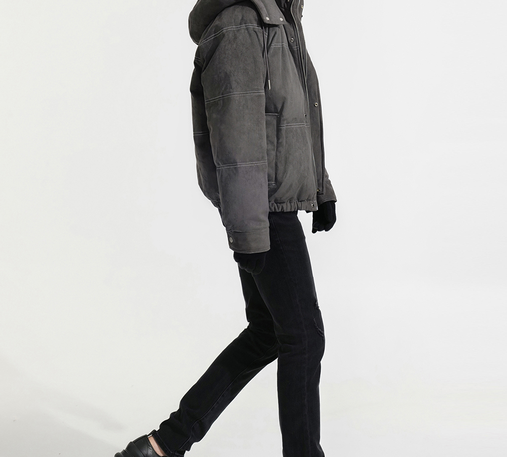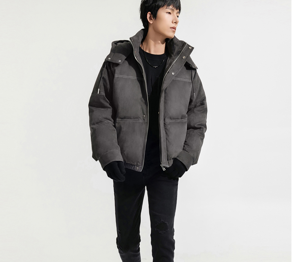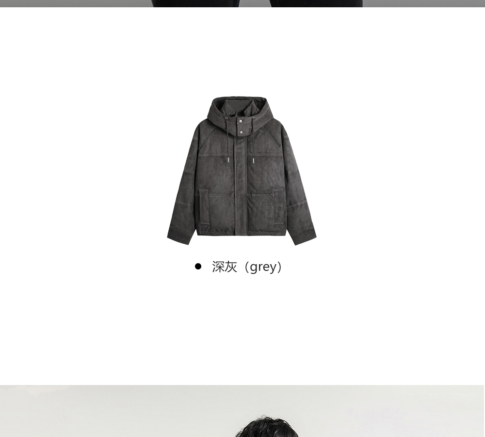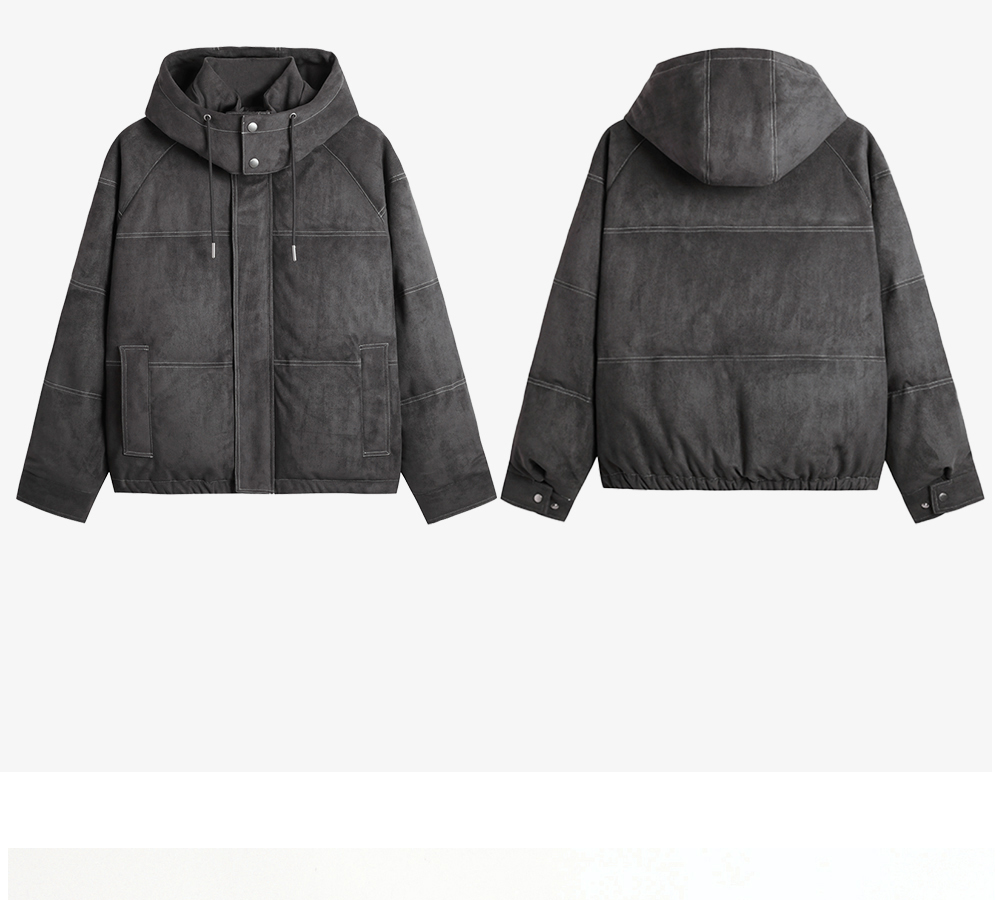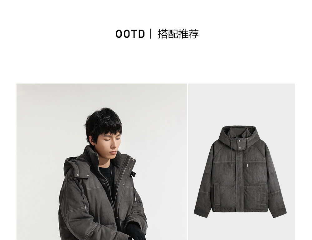 HIM漢崇 细腻仿麂皮绒羽绒服撞色缉明线【可拆连帽】外套2025冬季