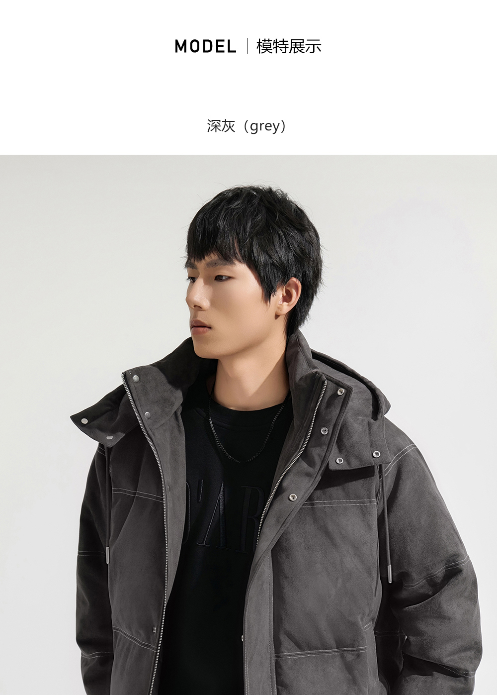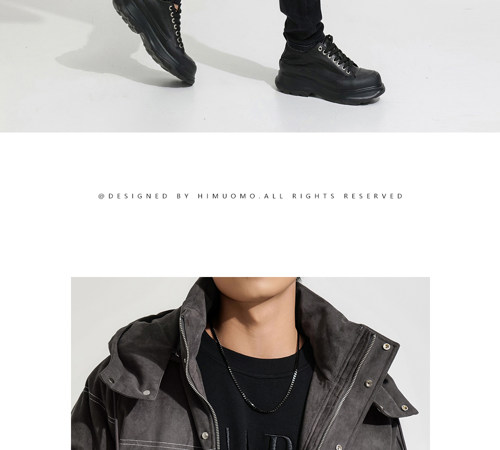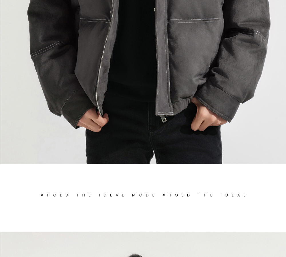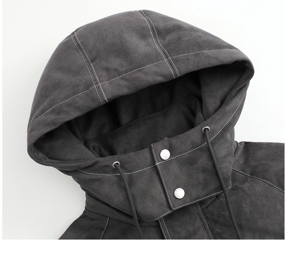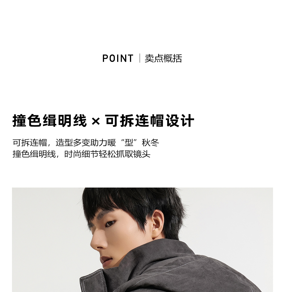 HIM漢崇 细腻仿麂皮绒羽绒服撞色缉明线【可拆连帽】外套2025冬季