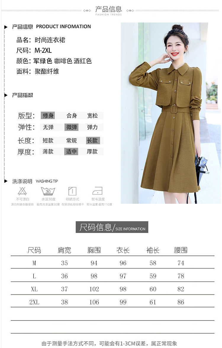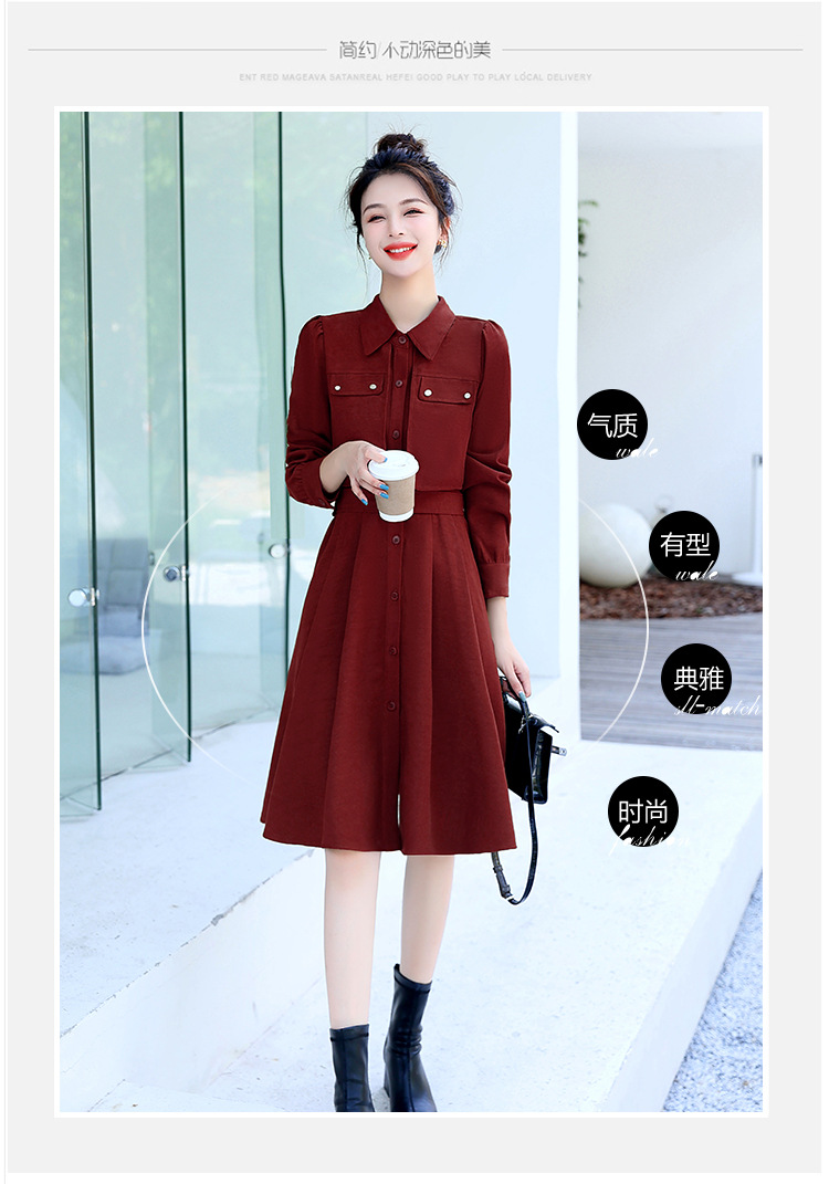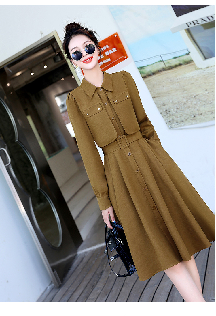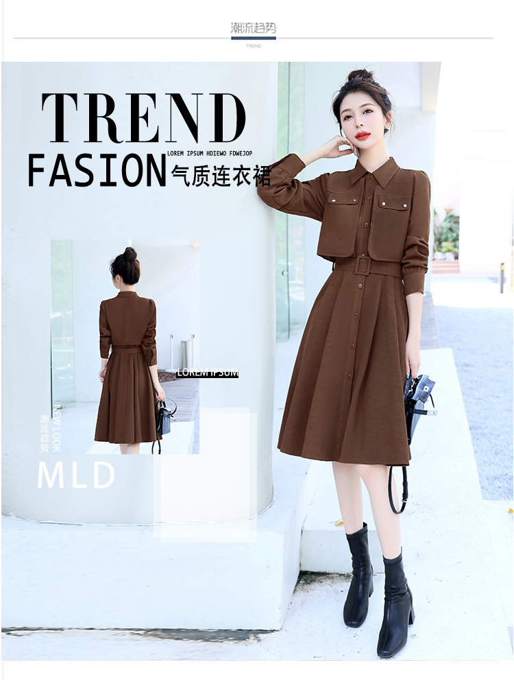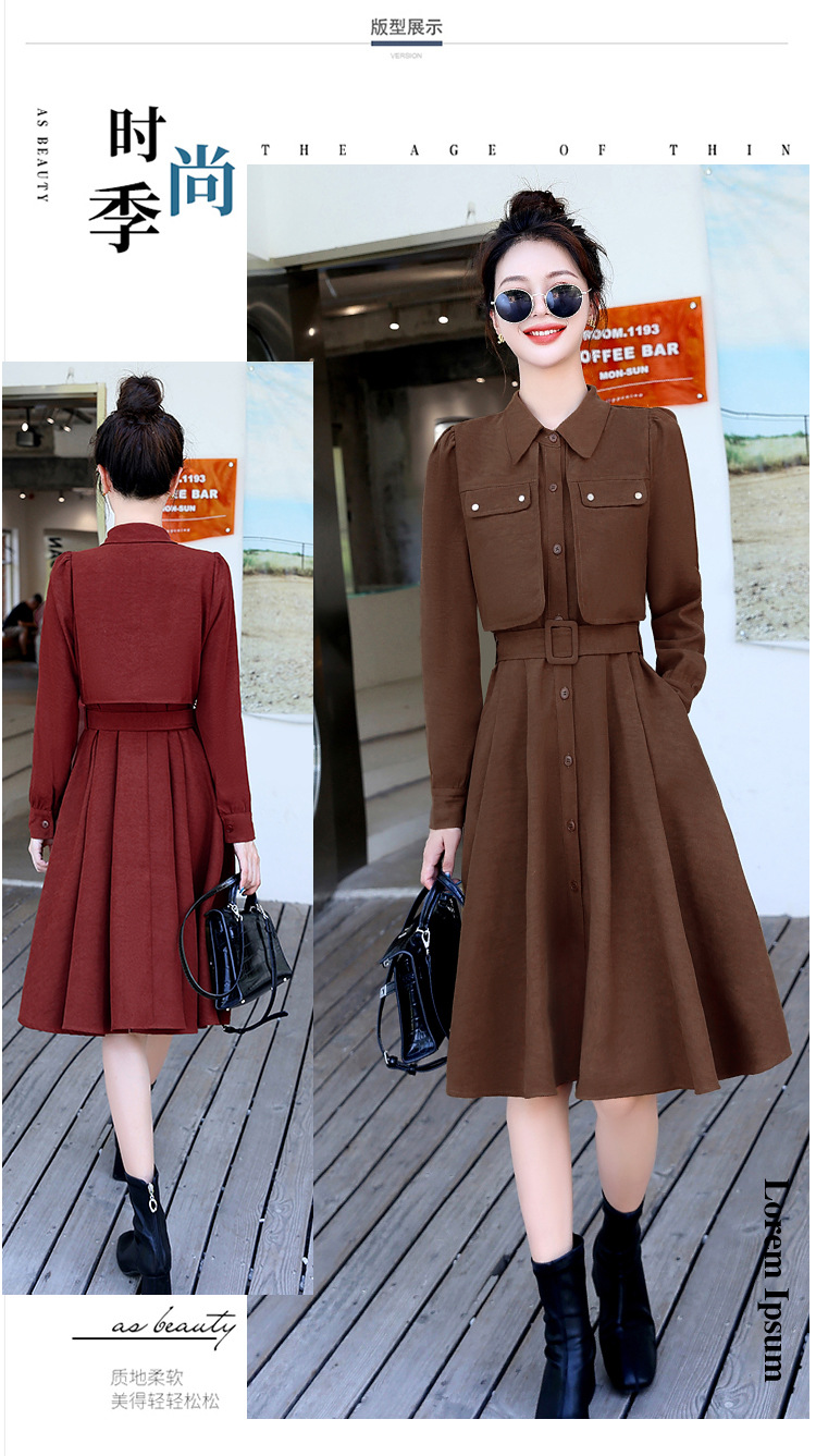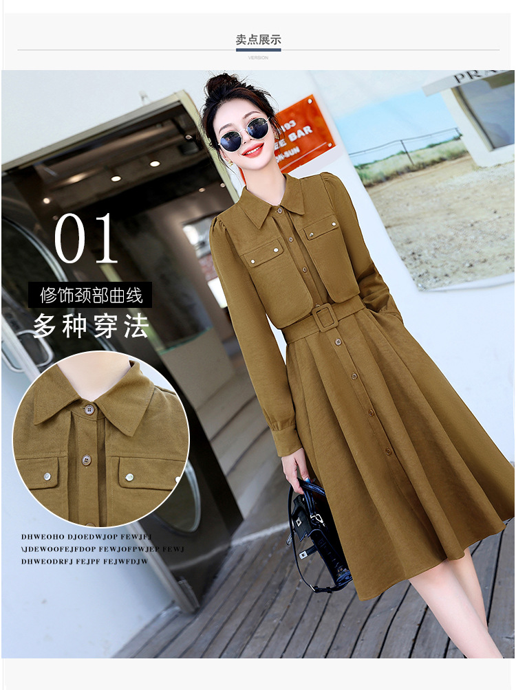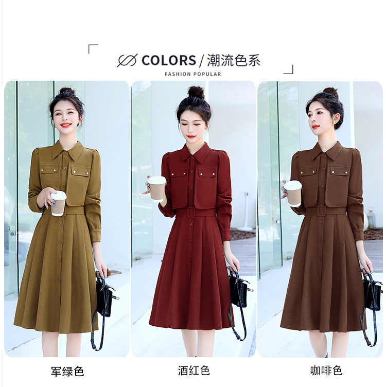 HRFS-WY8873-19时尚气质收腰显瘦翻领拼接假两件连衣裙