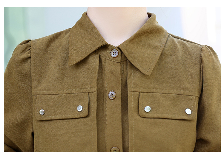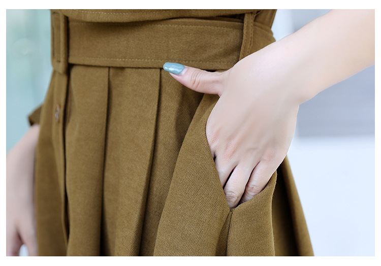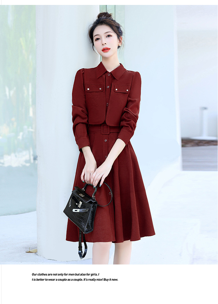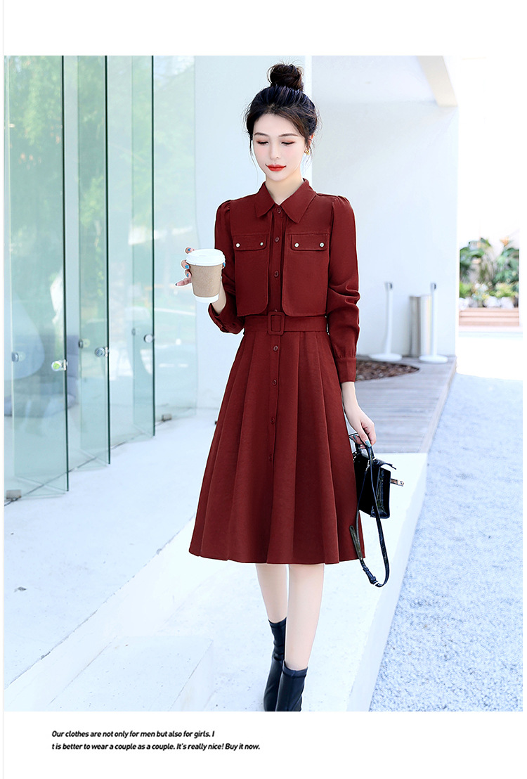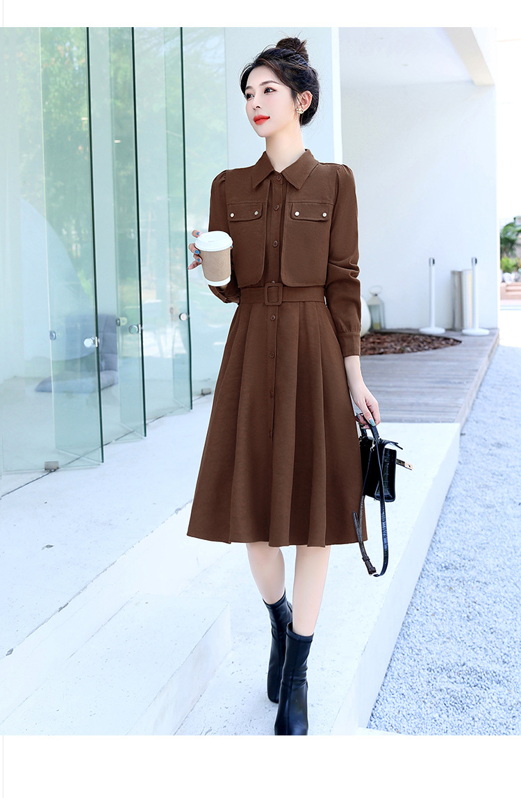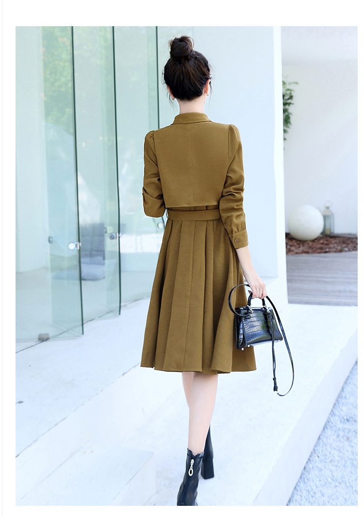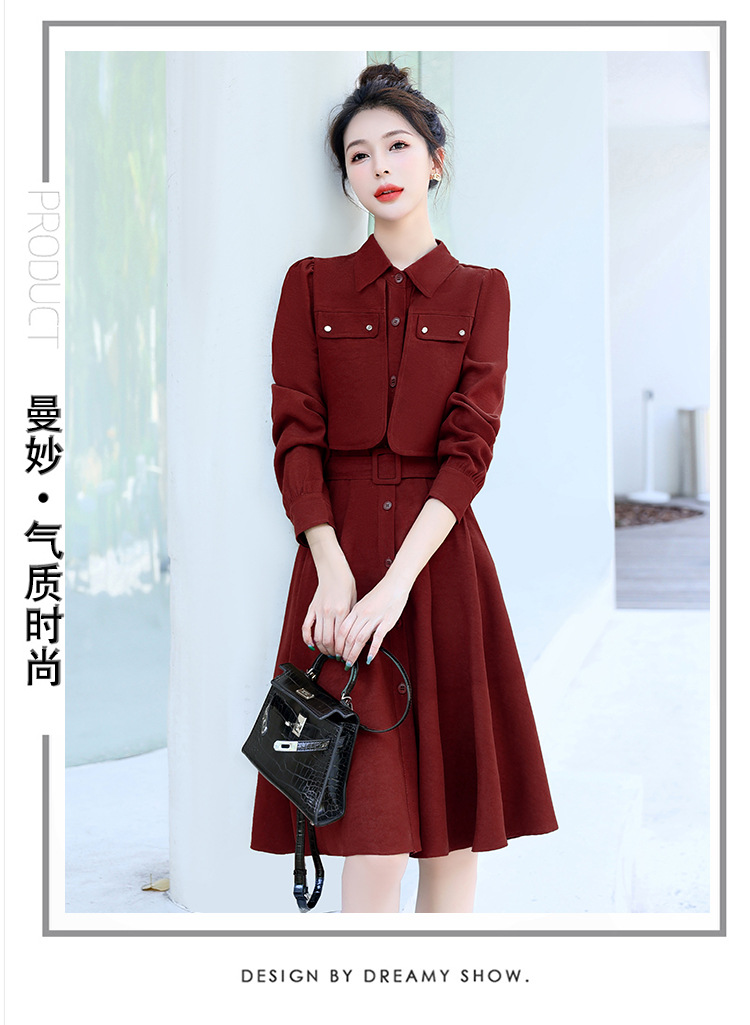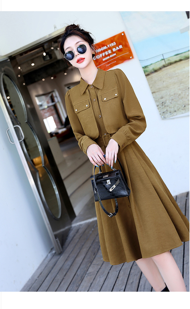 HRFS-WY8873-19时尚气质收腰显瘦翻领拼接假两件连衣裙