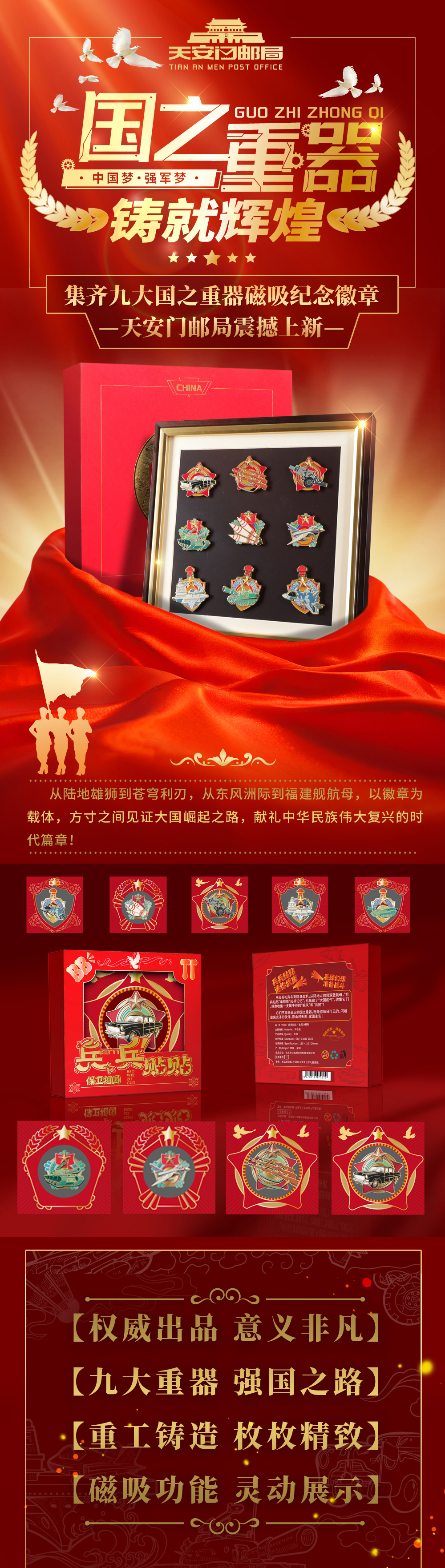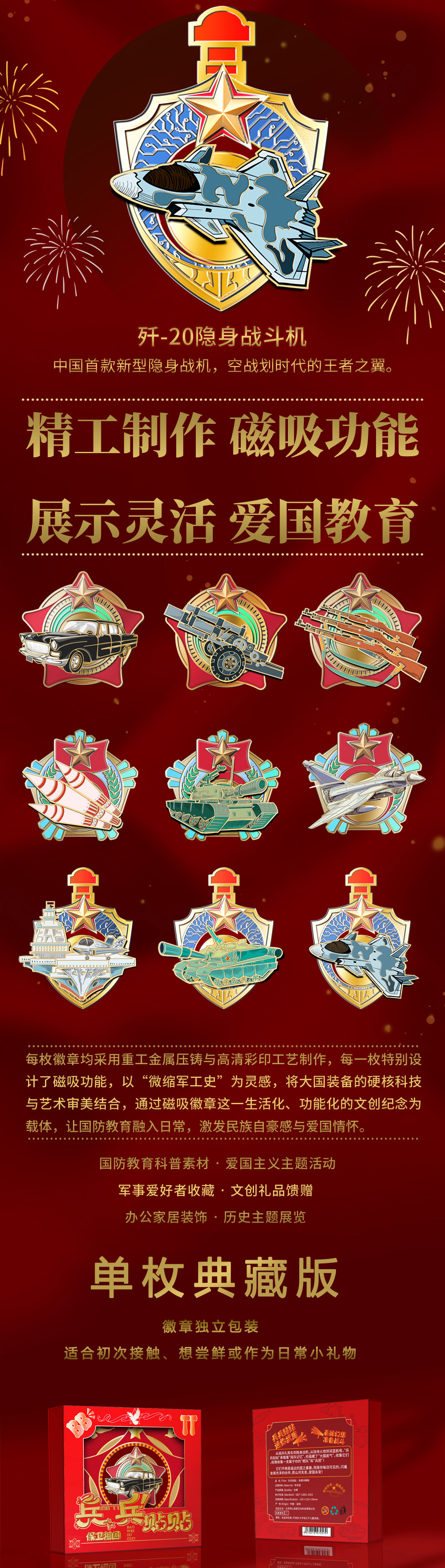 【天安门邮局&兵工文创出品】国之重器-兵兵贴贴冰箱贴(涵盖歼-20、福建舰、99A坦克等9款可选)