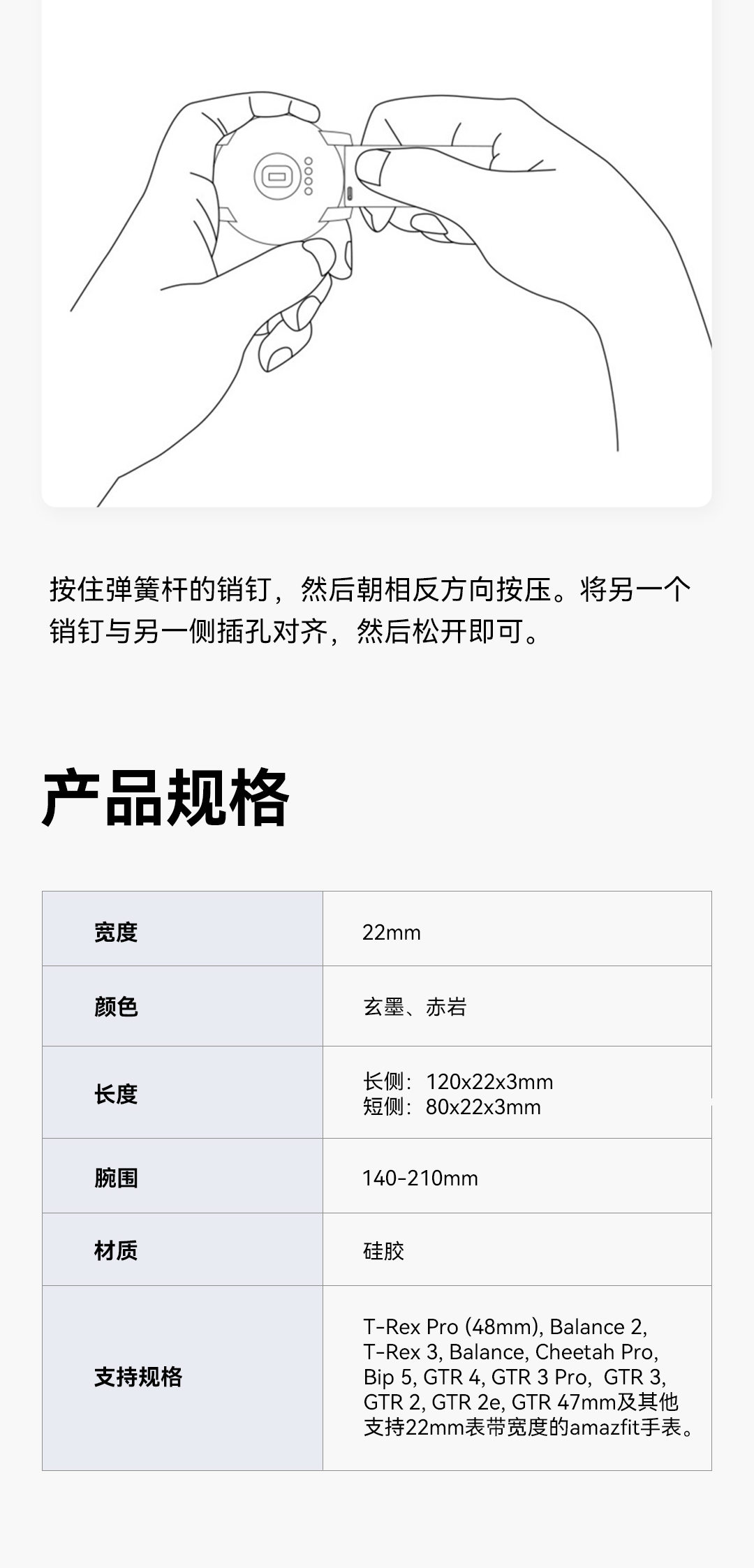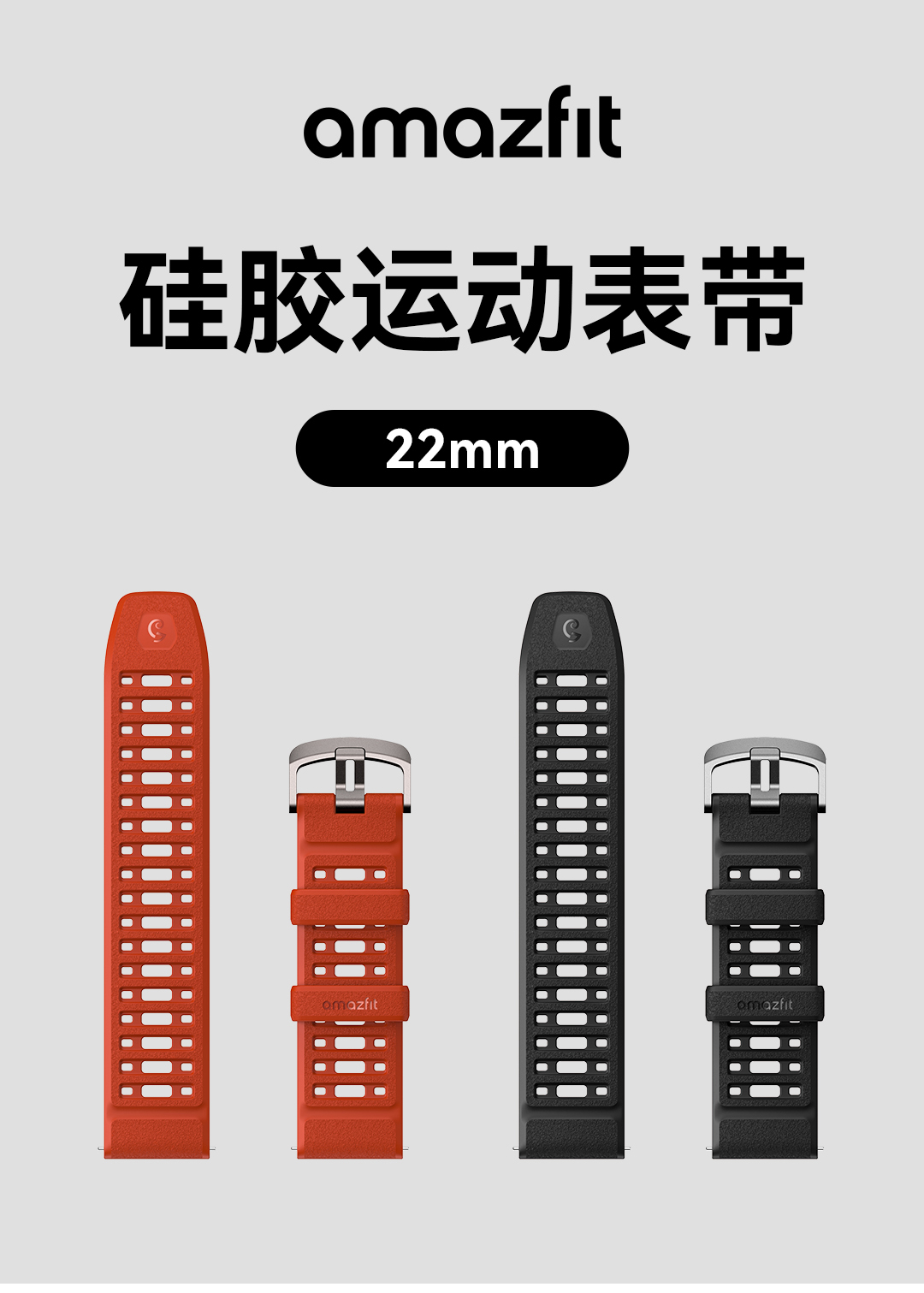 华米硅胶运动表带22mm 适配T-Rex 3 Pro 48mm、T-Rex 3、Balance系列、Bip 5等产品