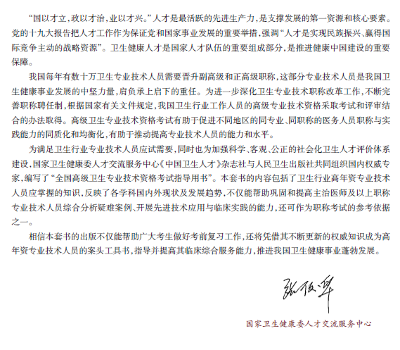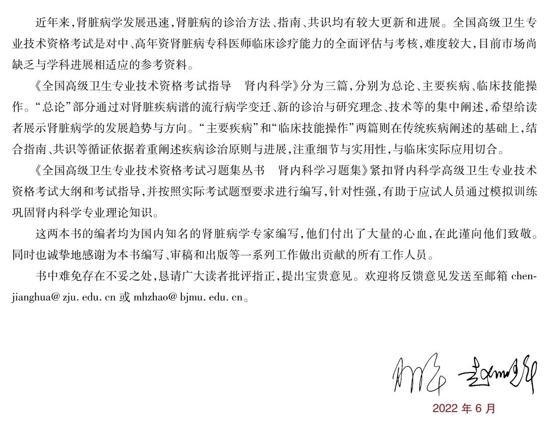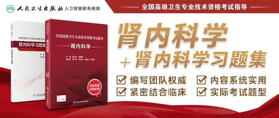 国家卫生健康委人才交流服务中心《中国卫生人才》杂志社与人民卫生出版社共同组织权威专家,编写出版了《全国高级卫生专业技术资格考试指导 肾内科学》和配套《肾内科学习题集》。