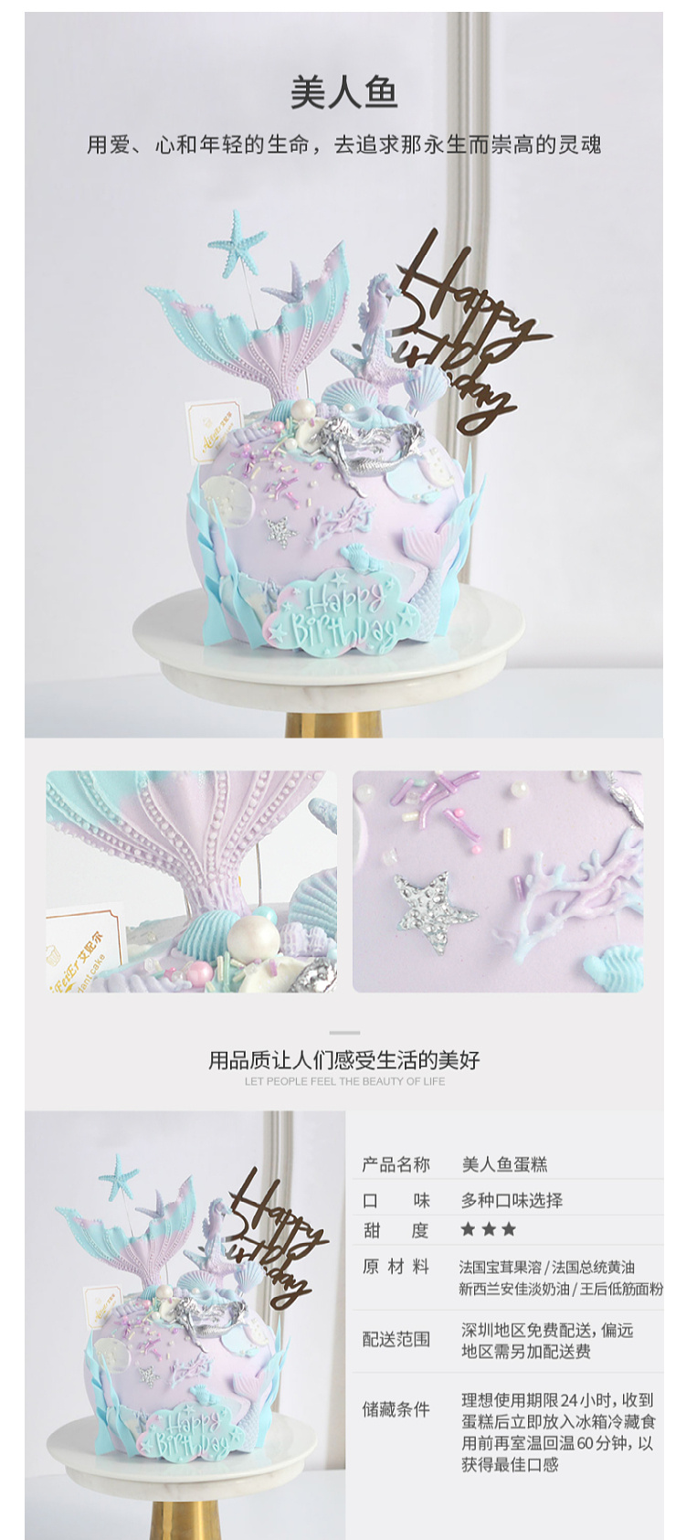 美人鱼双鱼座生日蛋糕宝宝周岁百天海洋女生可爱公主深圳同城配送