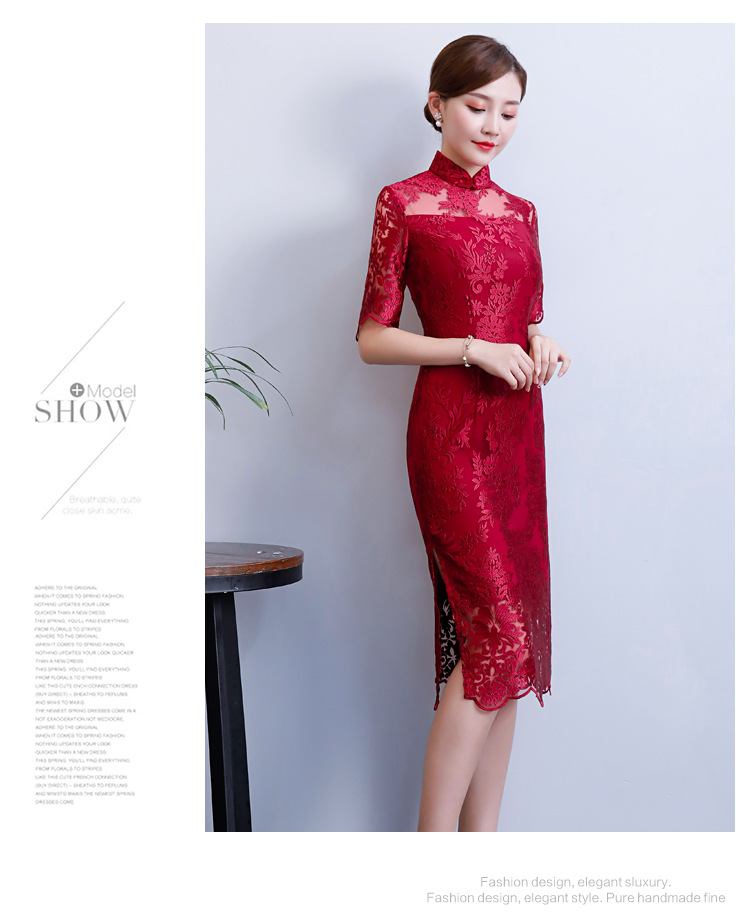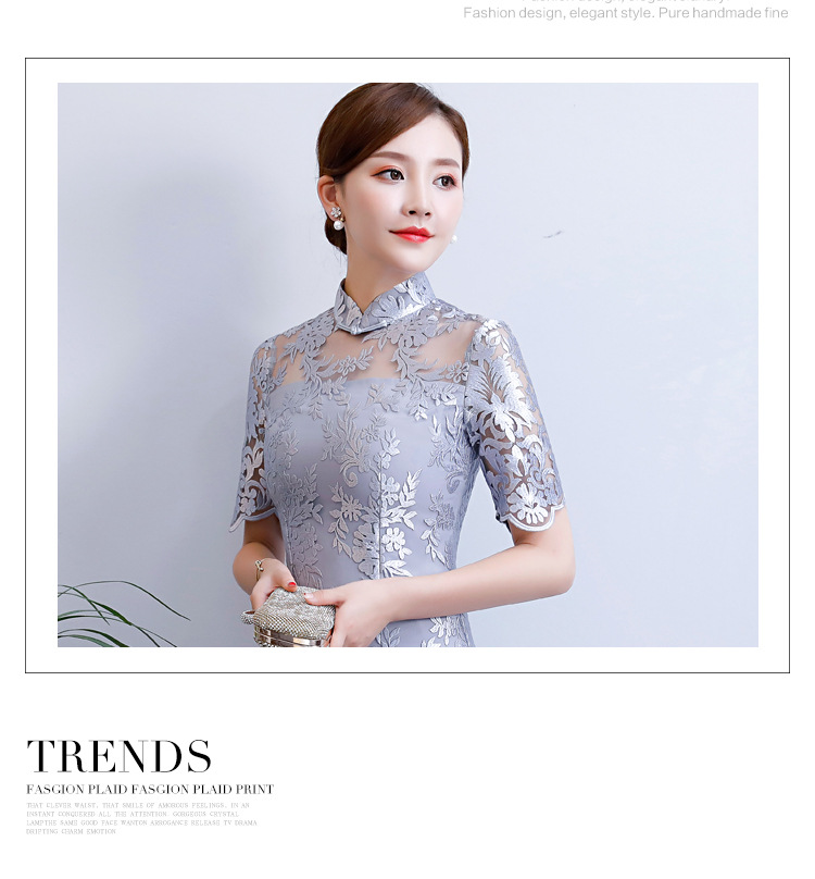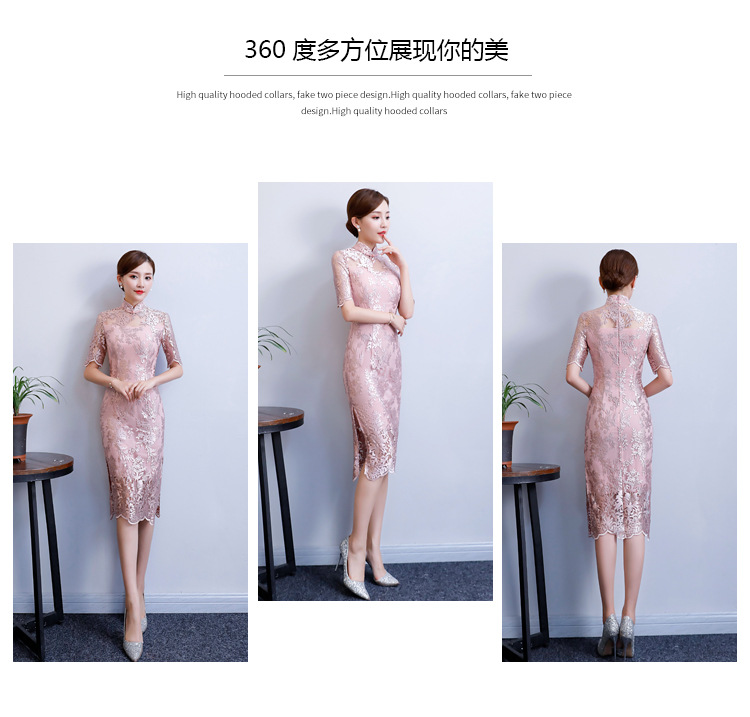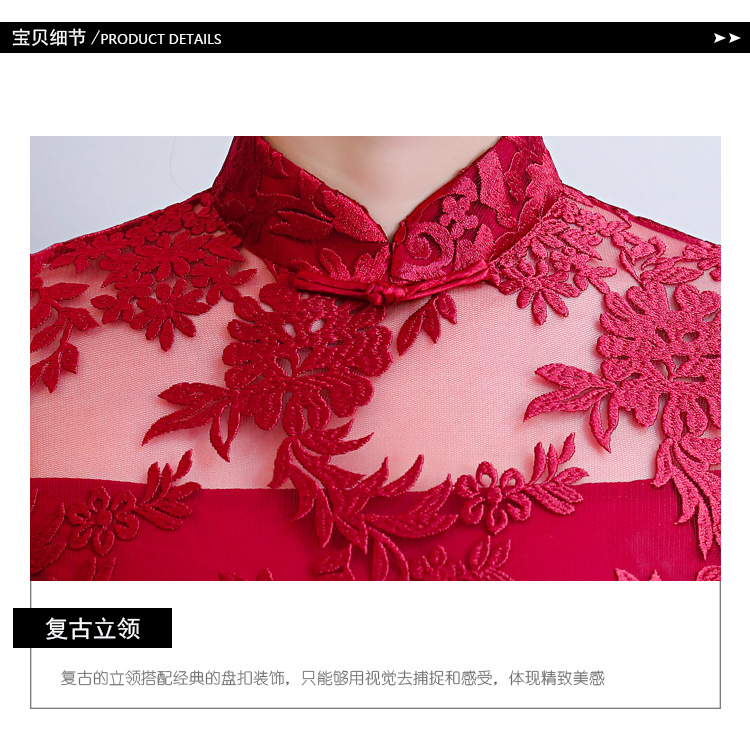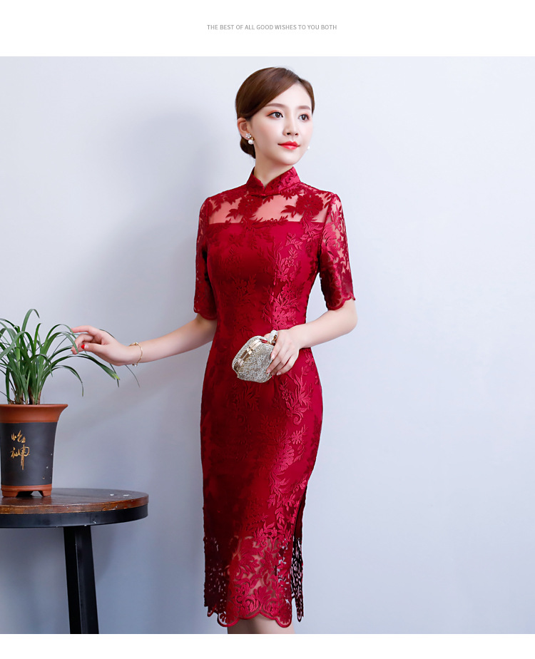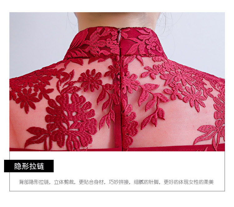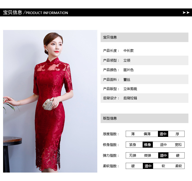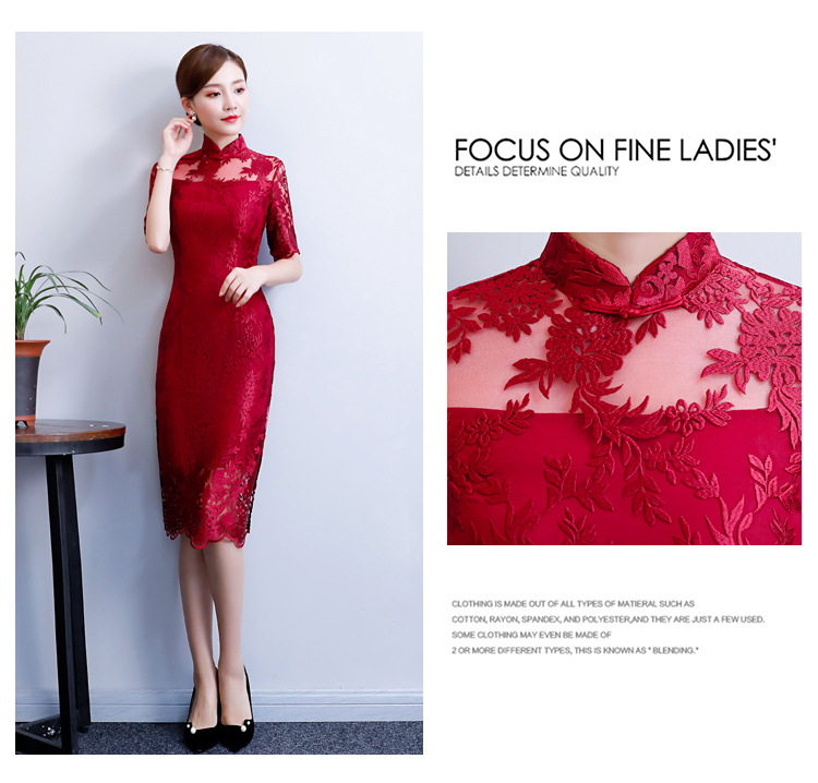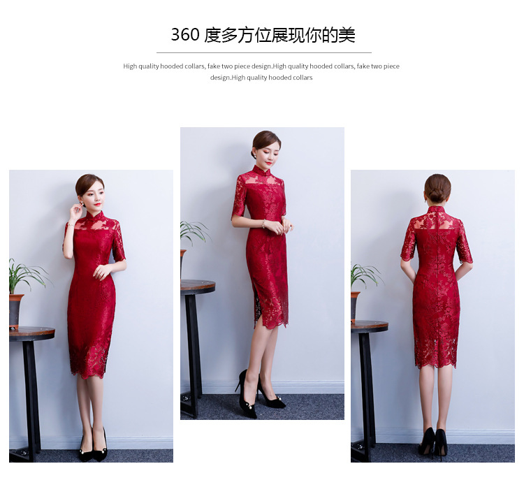 CX-18108中长款旗袍新款修身水溶蕾丝绣花复古时尚旗袍
