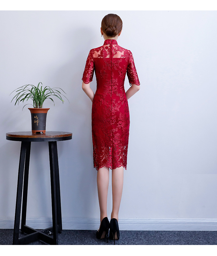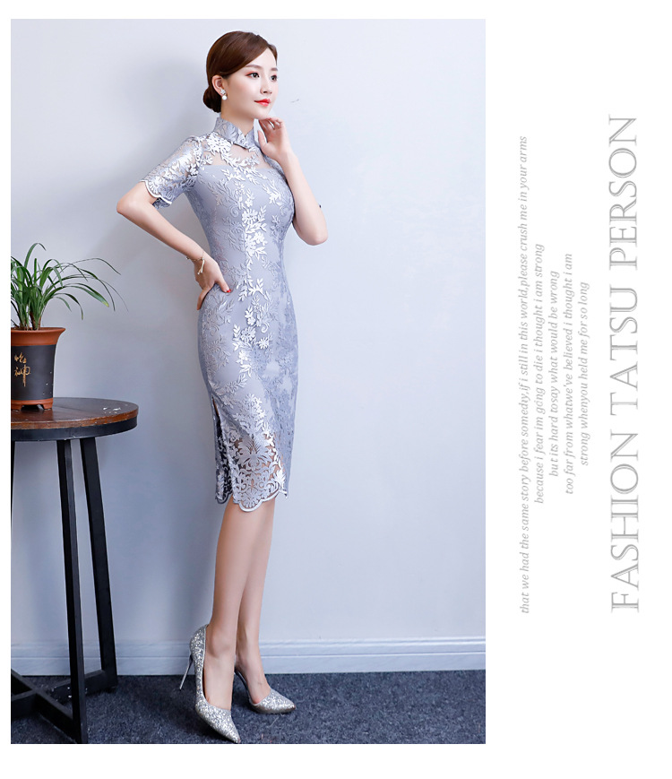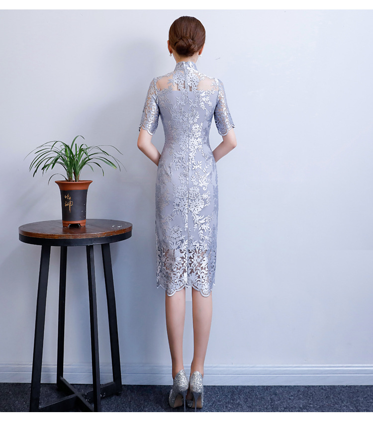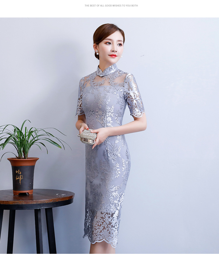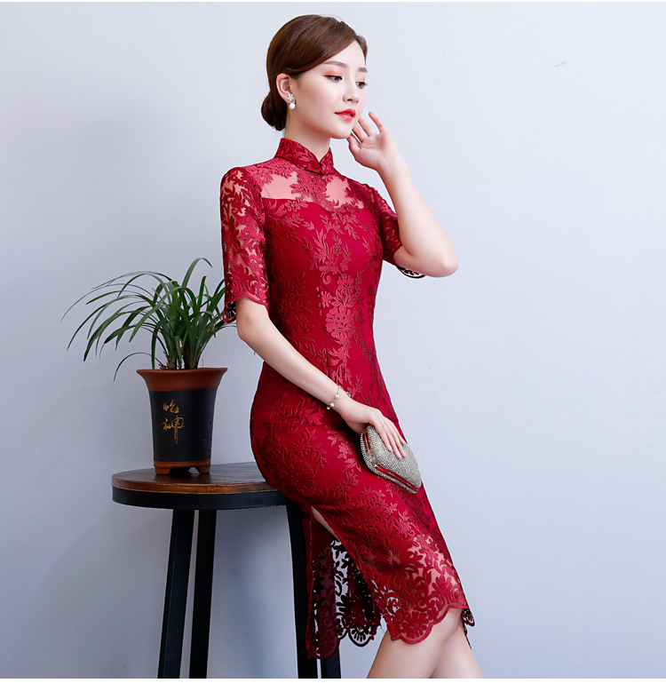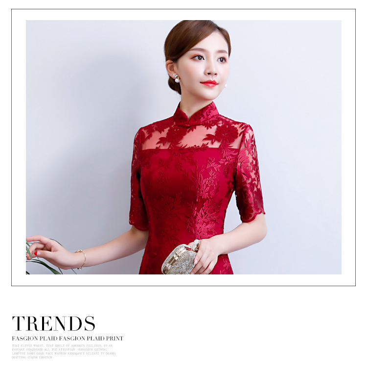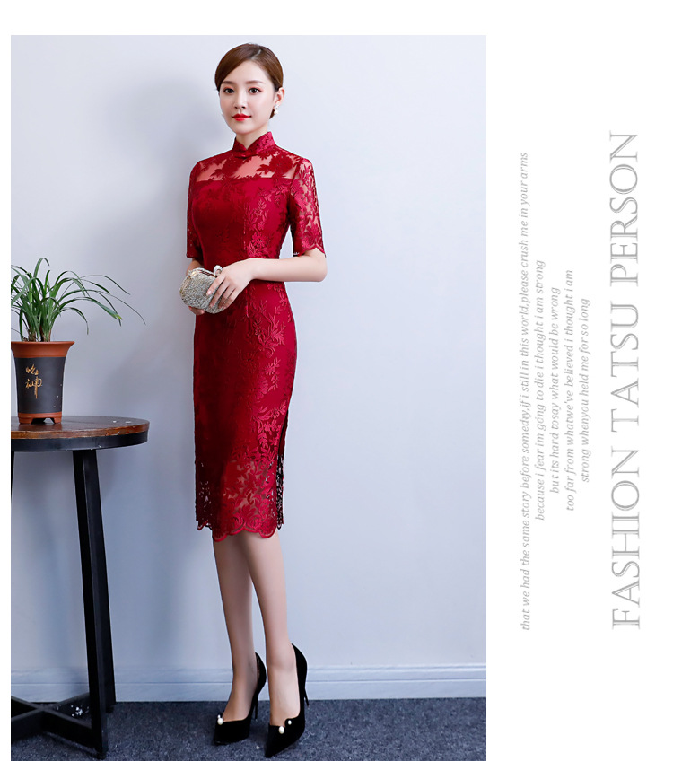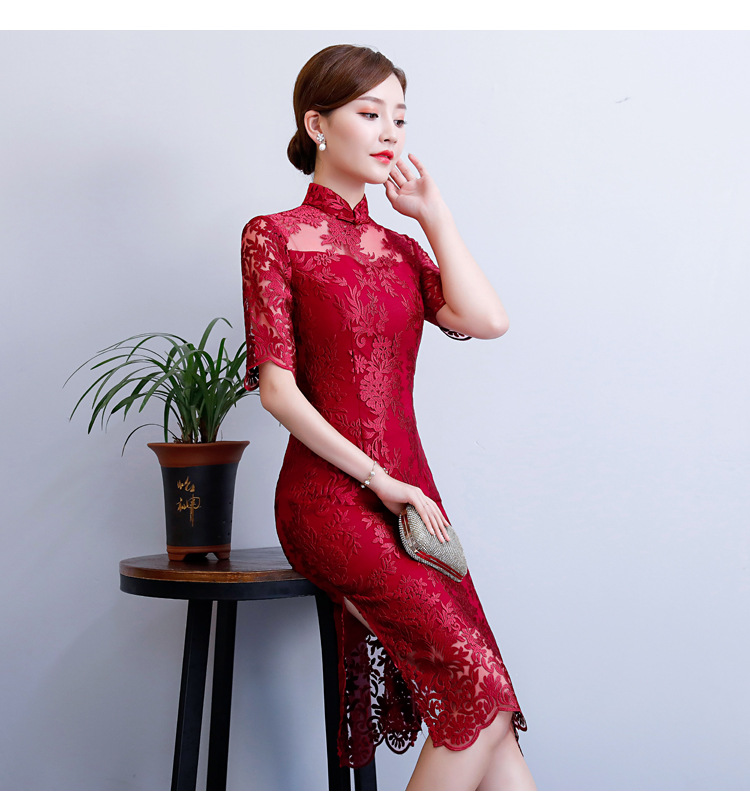 CX-18108中长款旗袍新款修身水溶蕾丝绣花复古时尚旗袍
