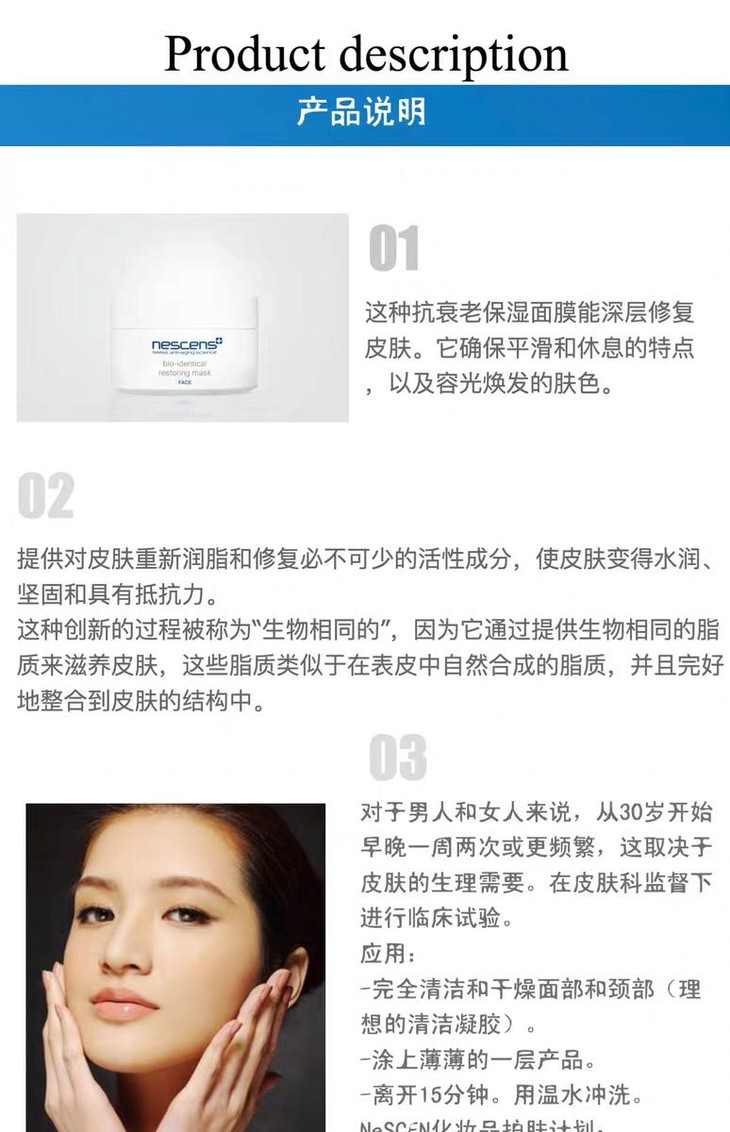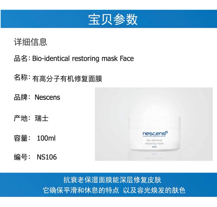 瑞士妮尚希nescens有高分子有机修复面膜100ml