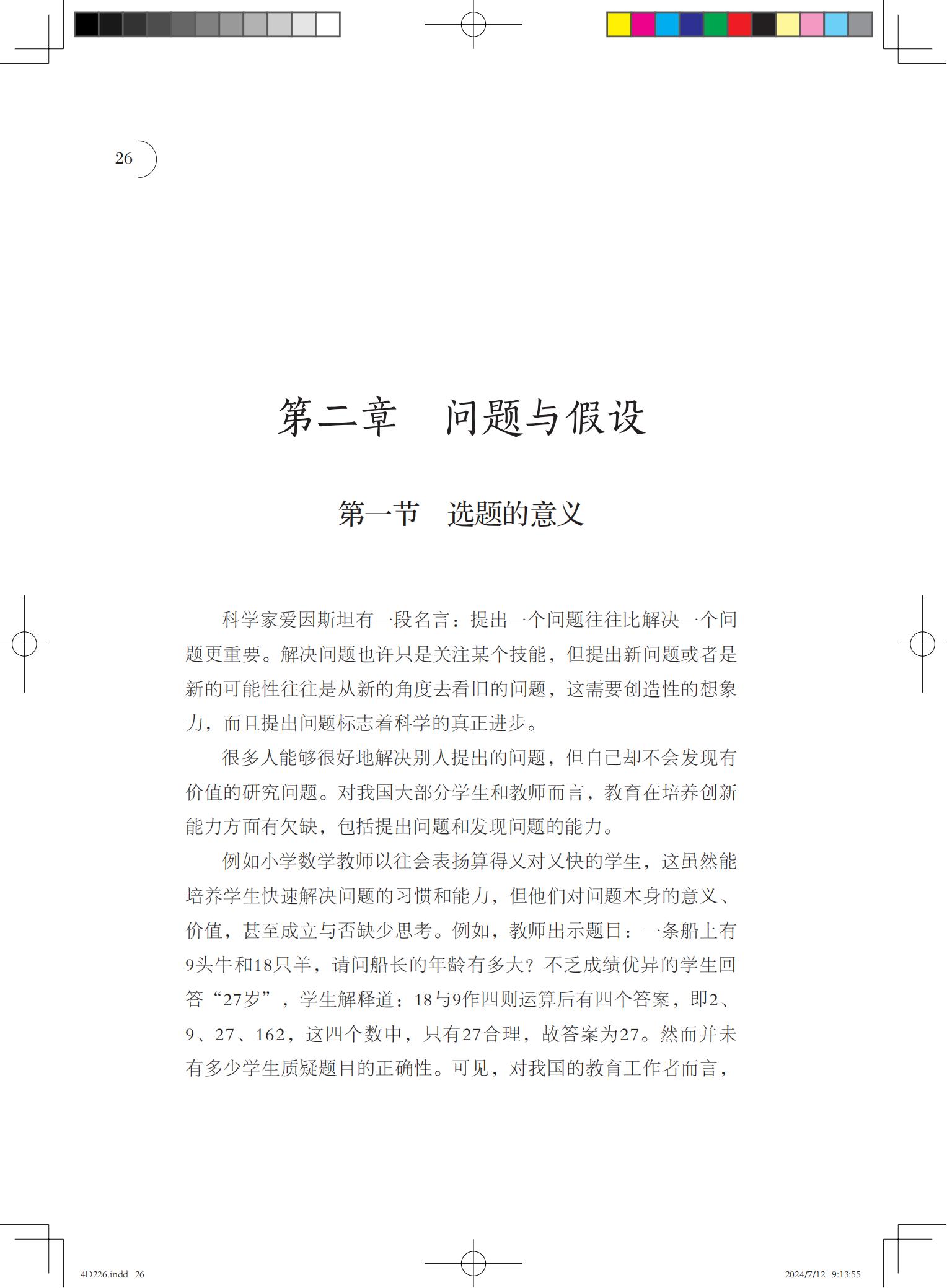 本书分为四大部分。第一部分,主要介绍中小学教育科研的基本知识和基本理论,包括教育科研概论、教育科研的特点与程序、问题的选择与假设的提出、文献的查阅与分析、样本的选择、数据的处理与分析等;第二部分主要介绍各种具体的在中小学教育科研中常用的研究方法,其中有些还是比较新的研究方法,比如质的研究法、行动研究法、叙事研究法等;第三部分是关于如何进行研究设计与撰写学术论文;第四部分是附录以及参考文献等,这一部分附上了采用几种研究方法的研究论文,以及研究设计的案例和一些常用的问卷等。