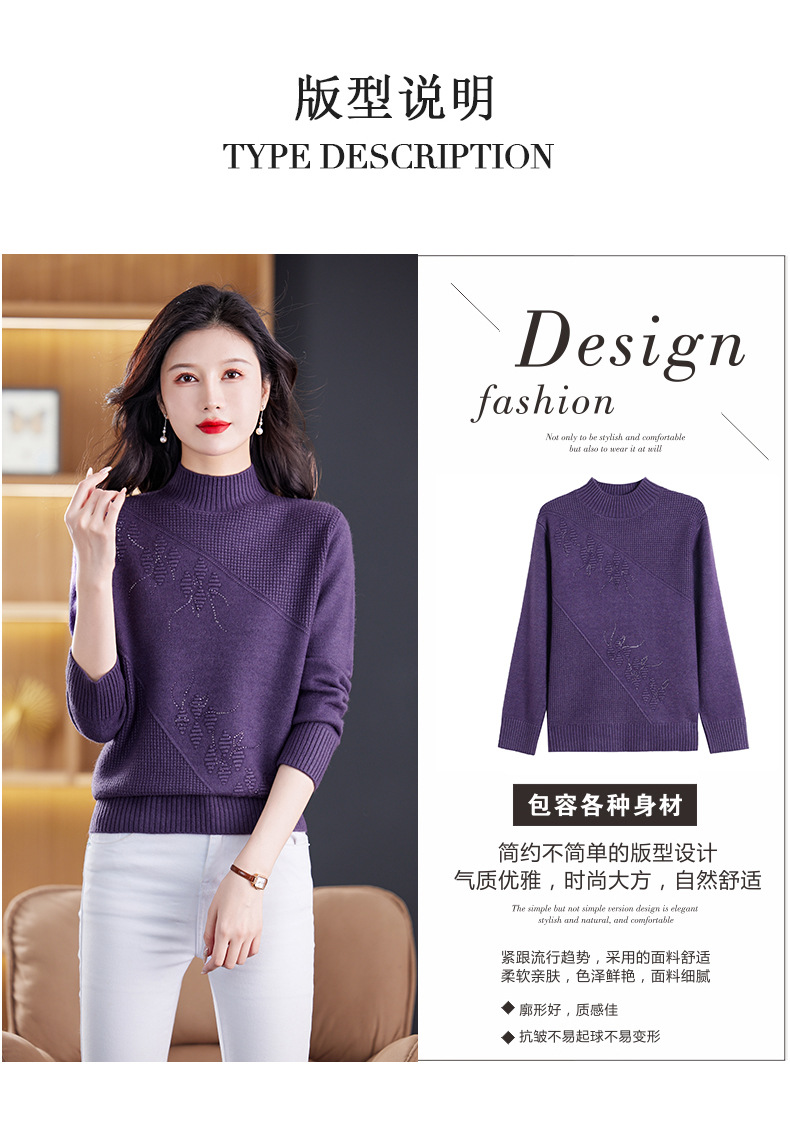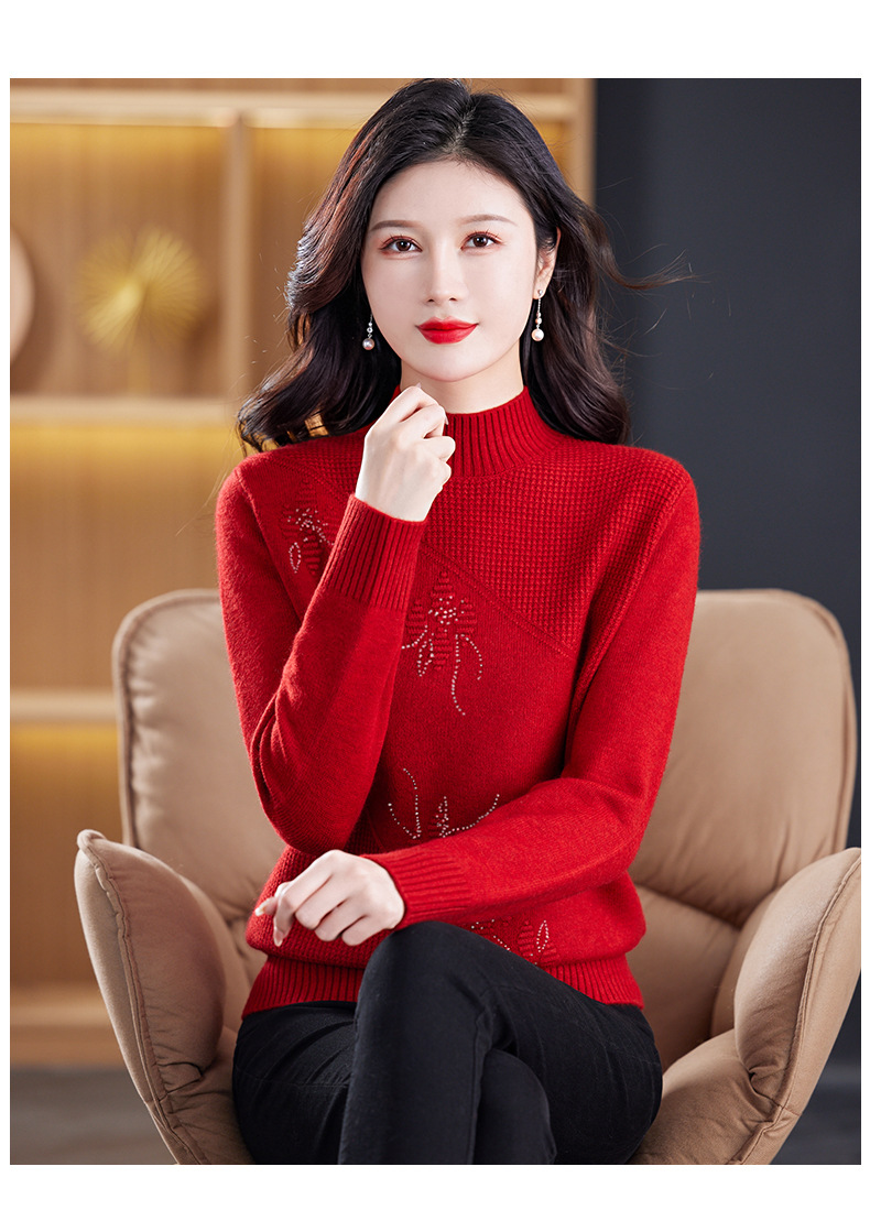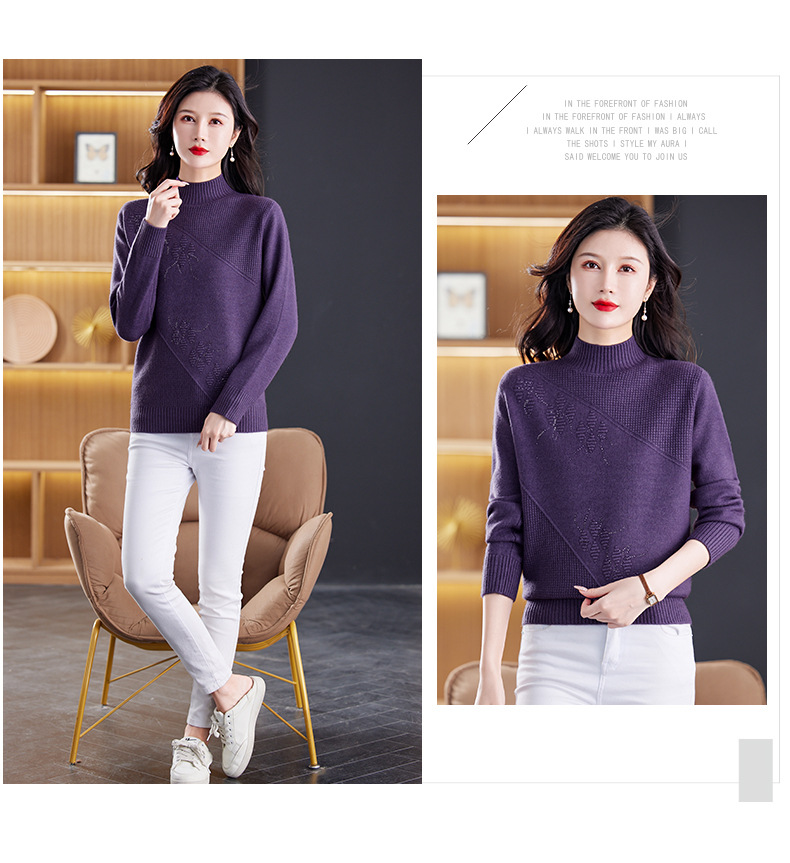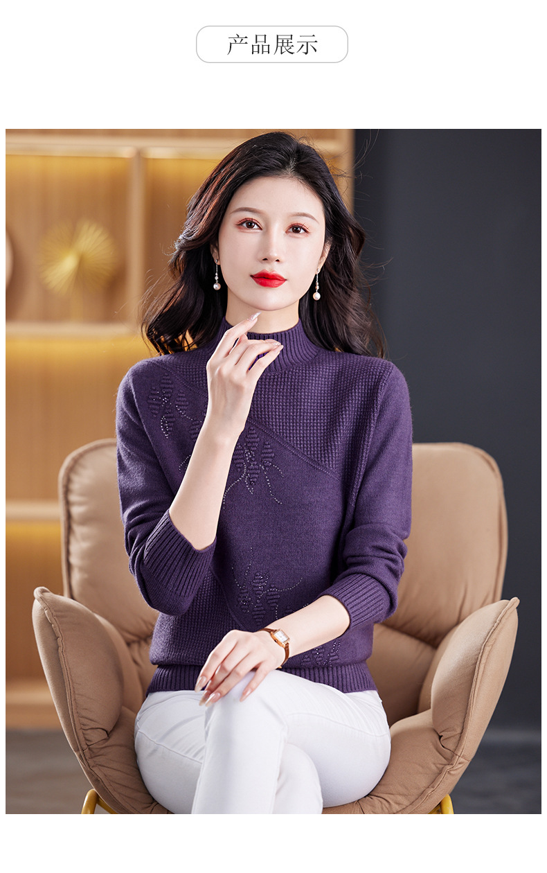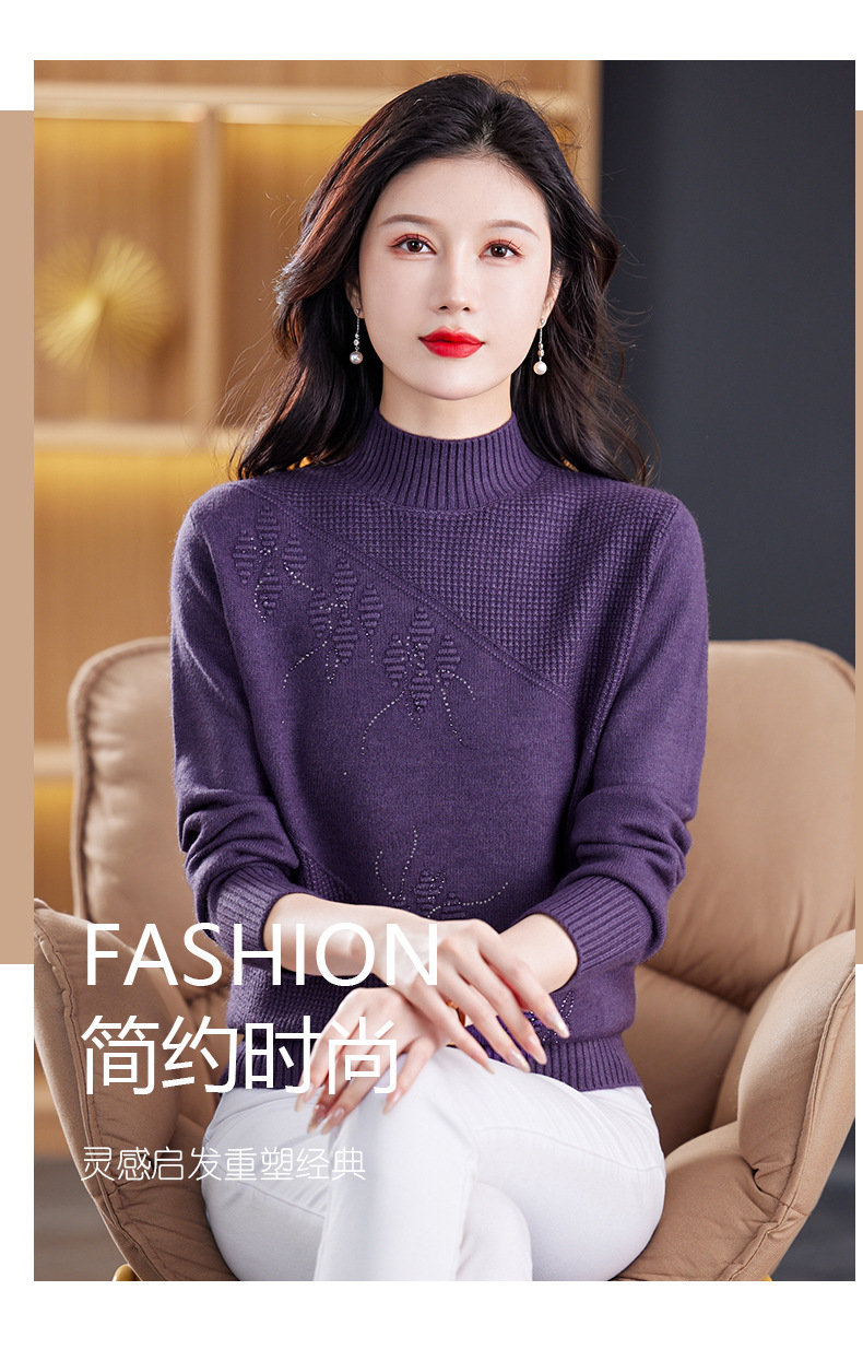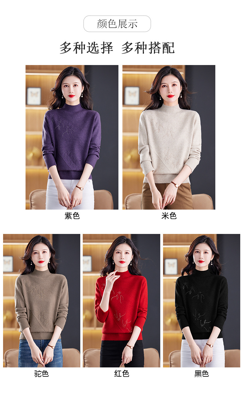 CC-108-1260加厚秋冬新款女士半高领韩版针织打底衫套头纯色百搭短款保暖毛衣