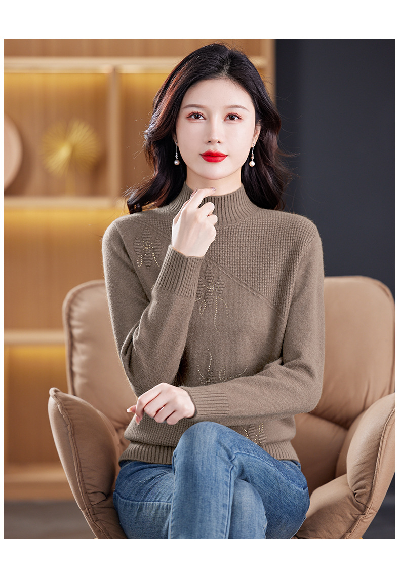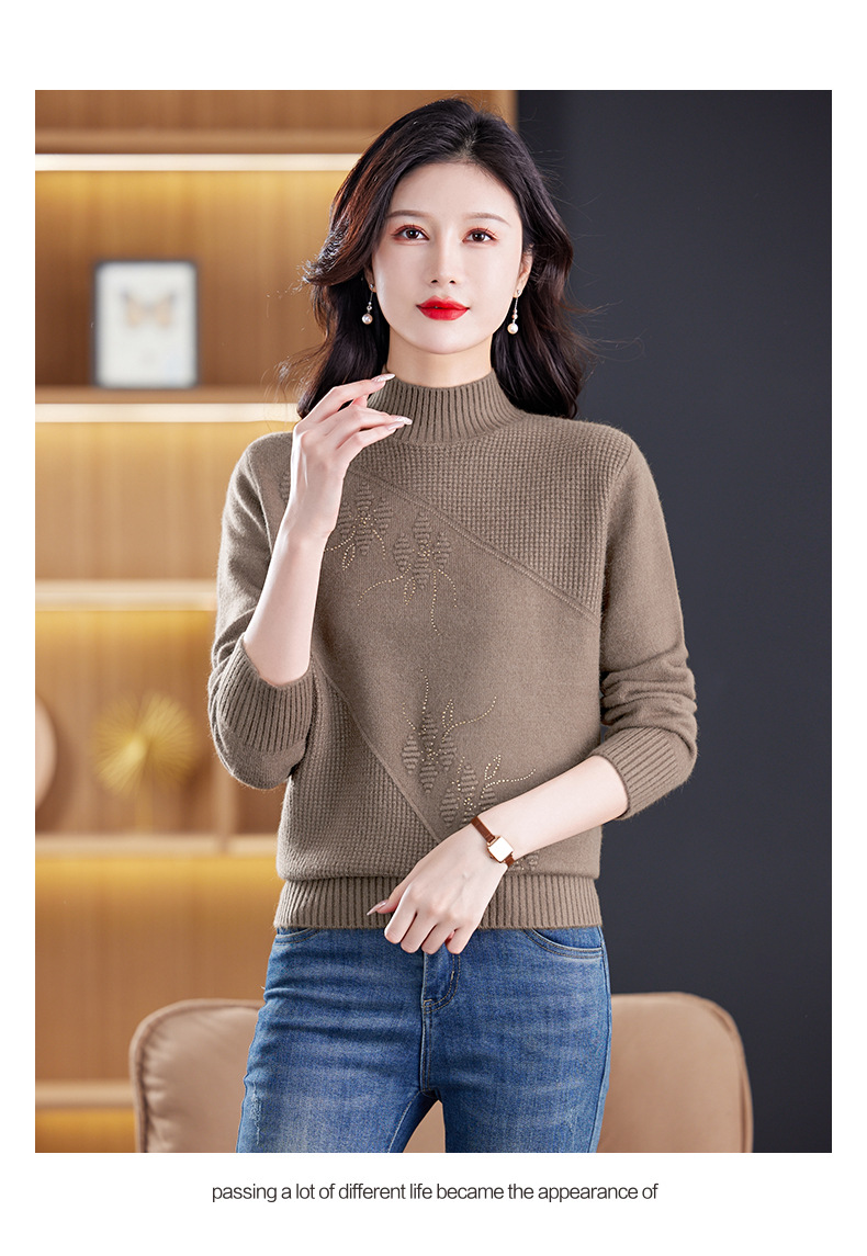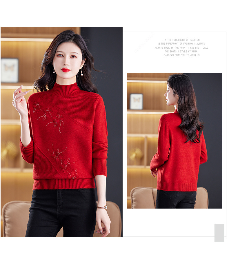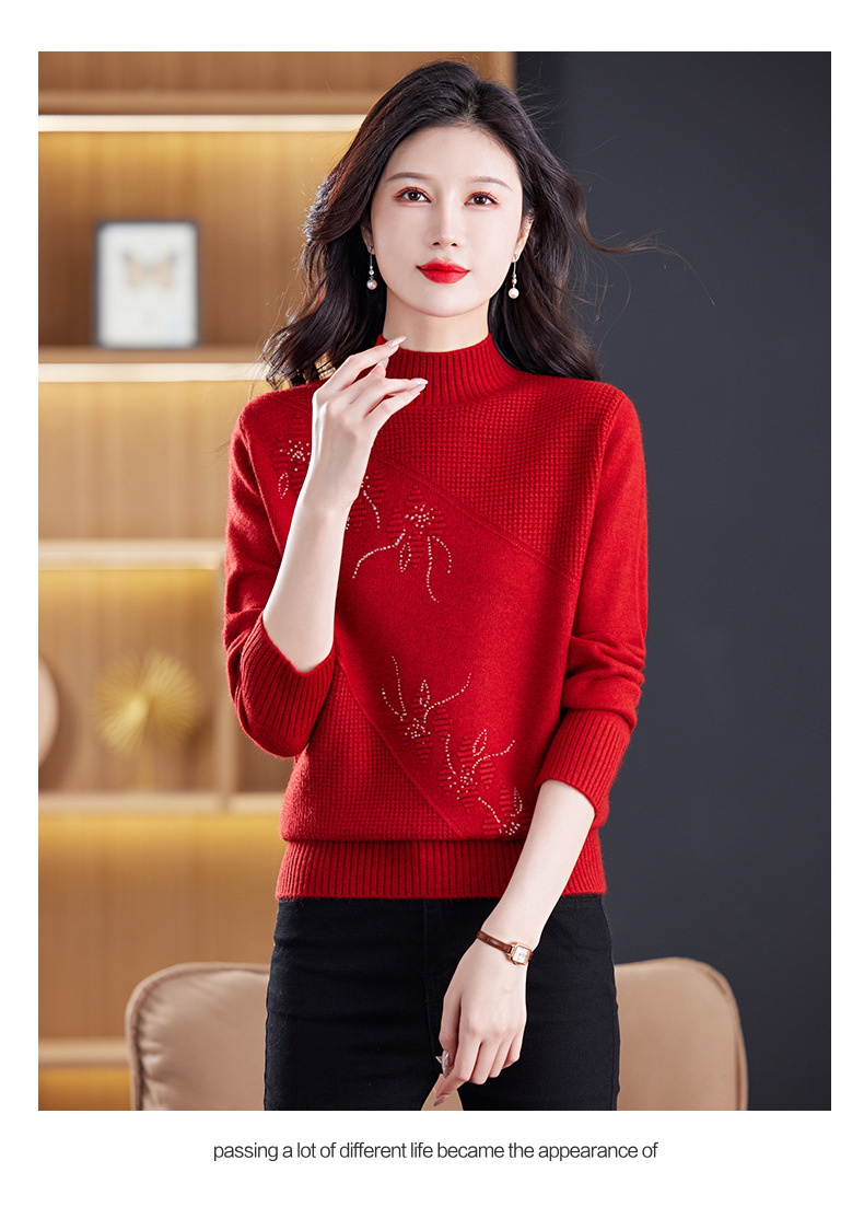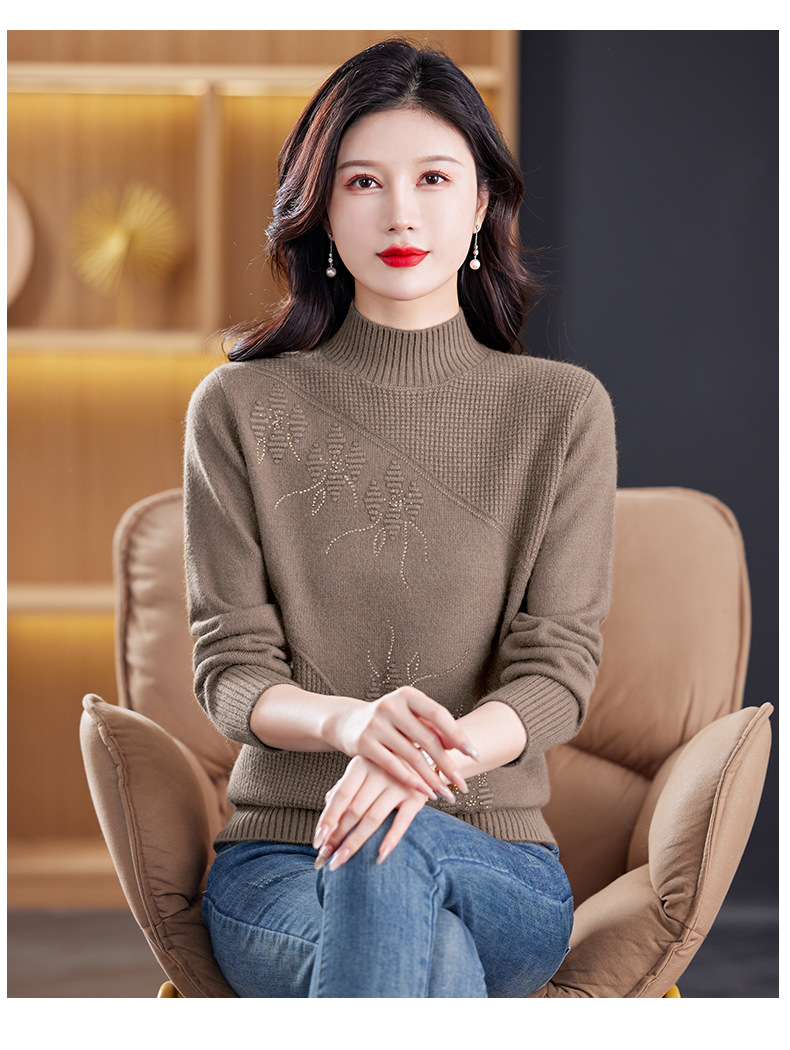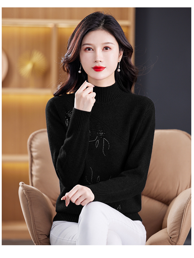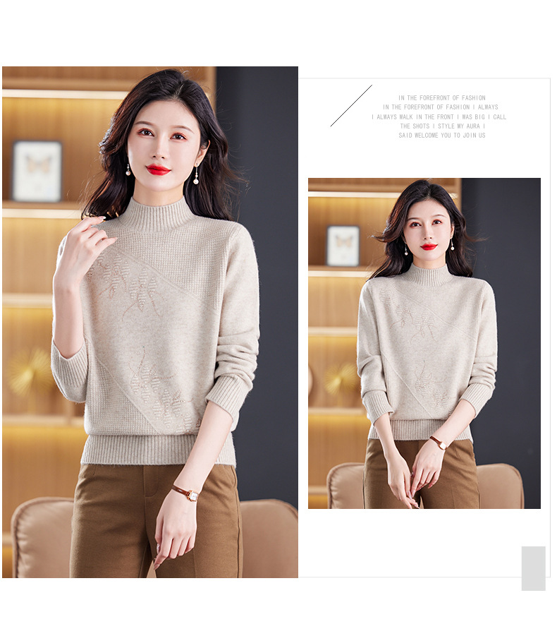 CC-108-1260加厚秋冬新款女士半高领韩版针织打底衫套头纯色百搭短款保暖毛衣