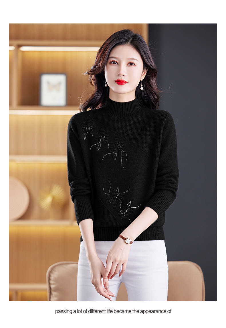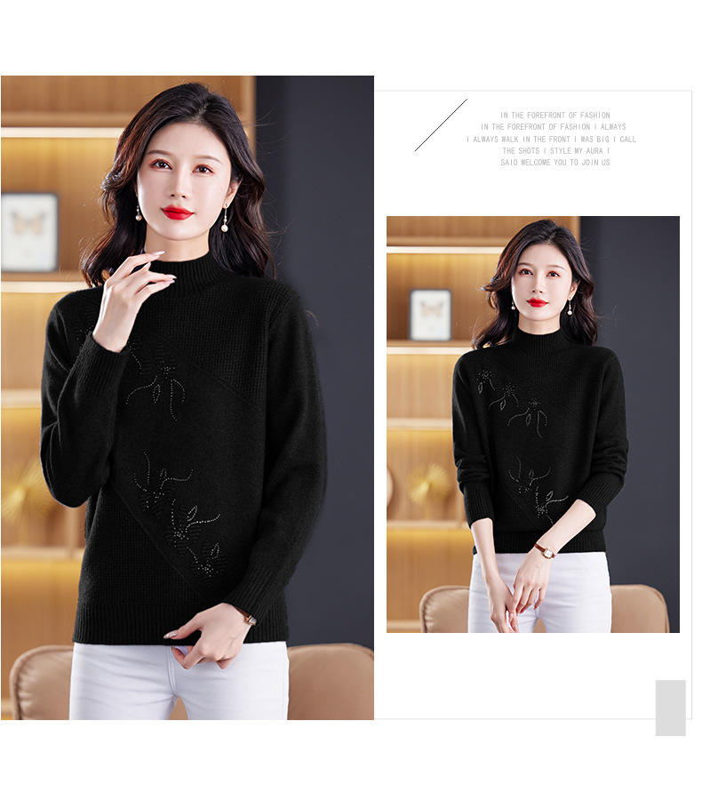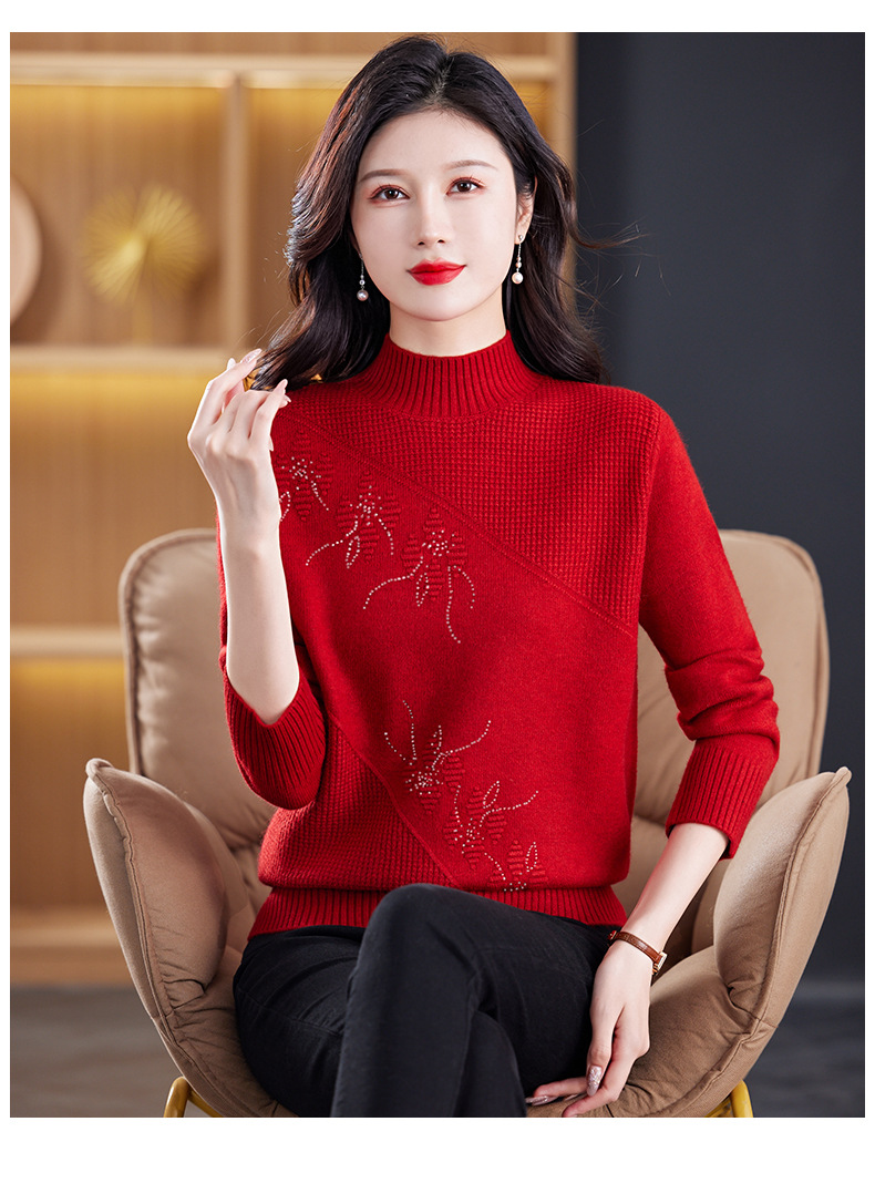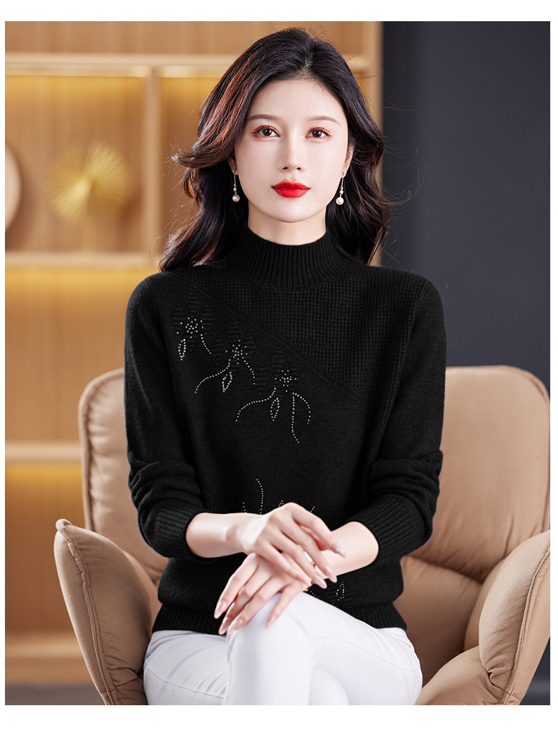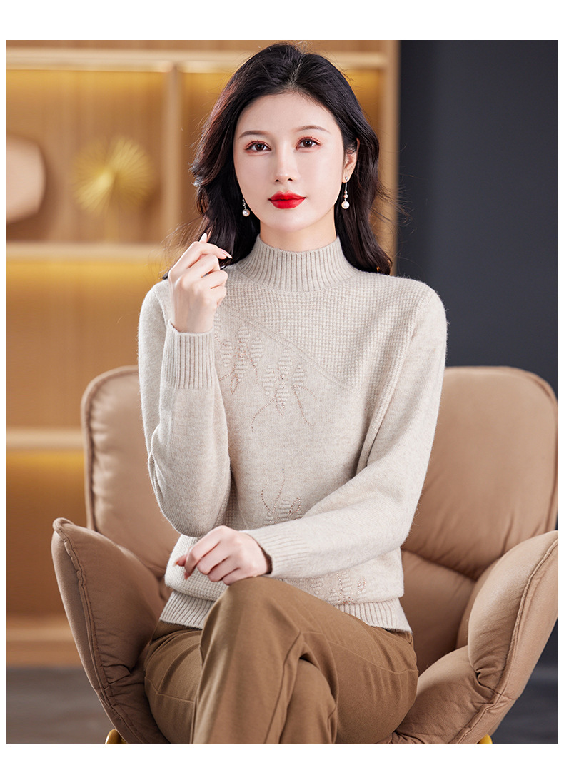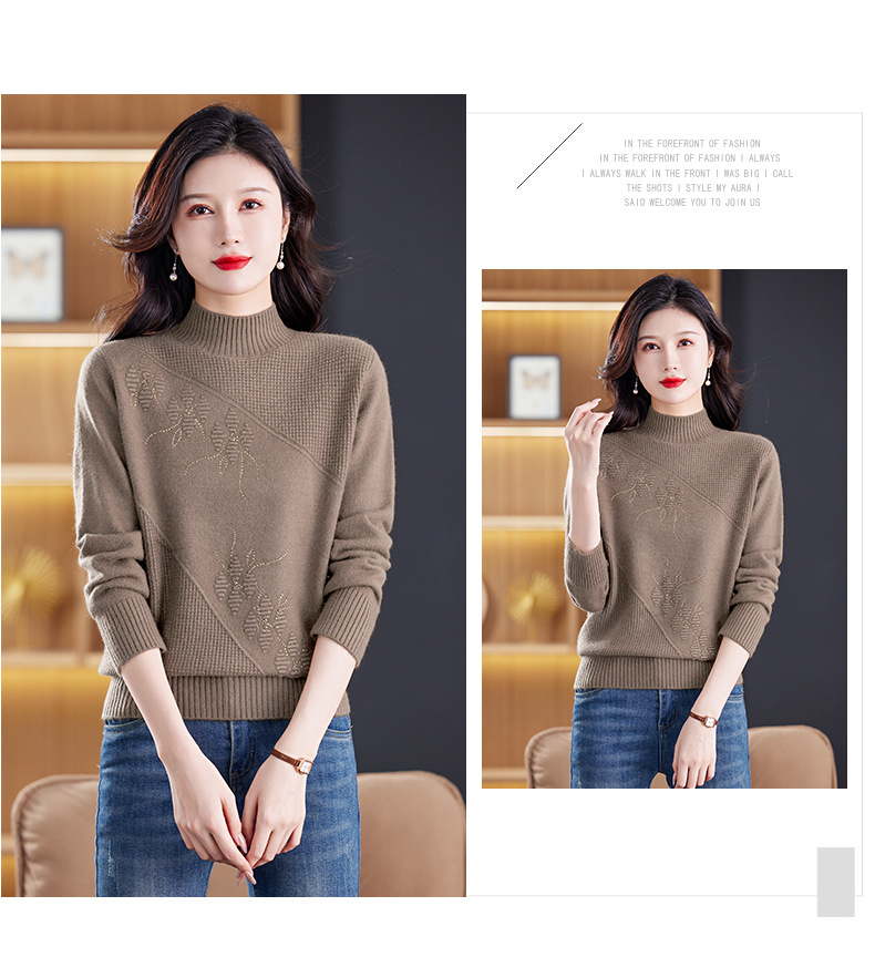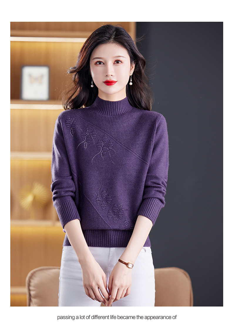 CC-108-1260加厚秋冬新款女士半高领韩版针织打底衫套头纯色百搭短款保暖毛衣