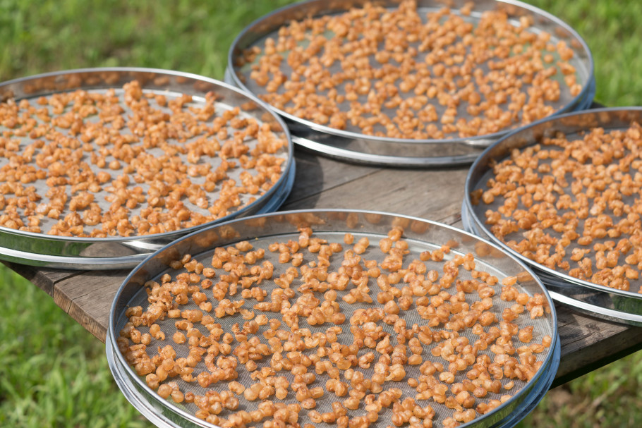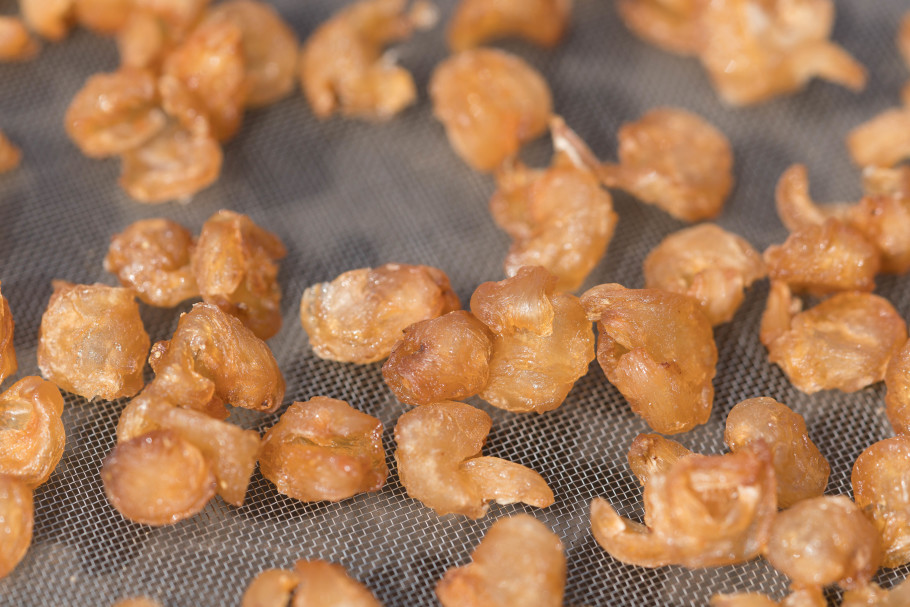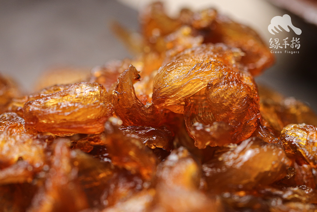 10斤新鲜龙眼才能加工出大概一斤的桂圆肉,加工过程耗时耗工,而且原料有限,每年统一把成熟度高的龙眼采摘下来加工,龙眼剥壳后低温烘干,再太阳晾晒,才得桂圆干。