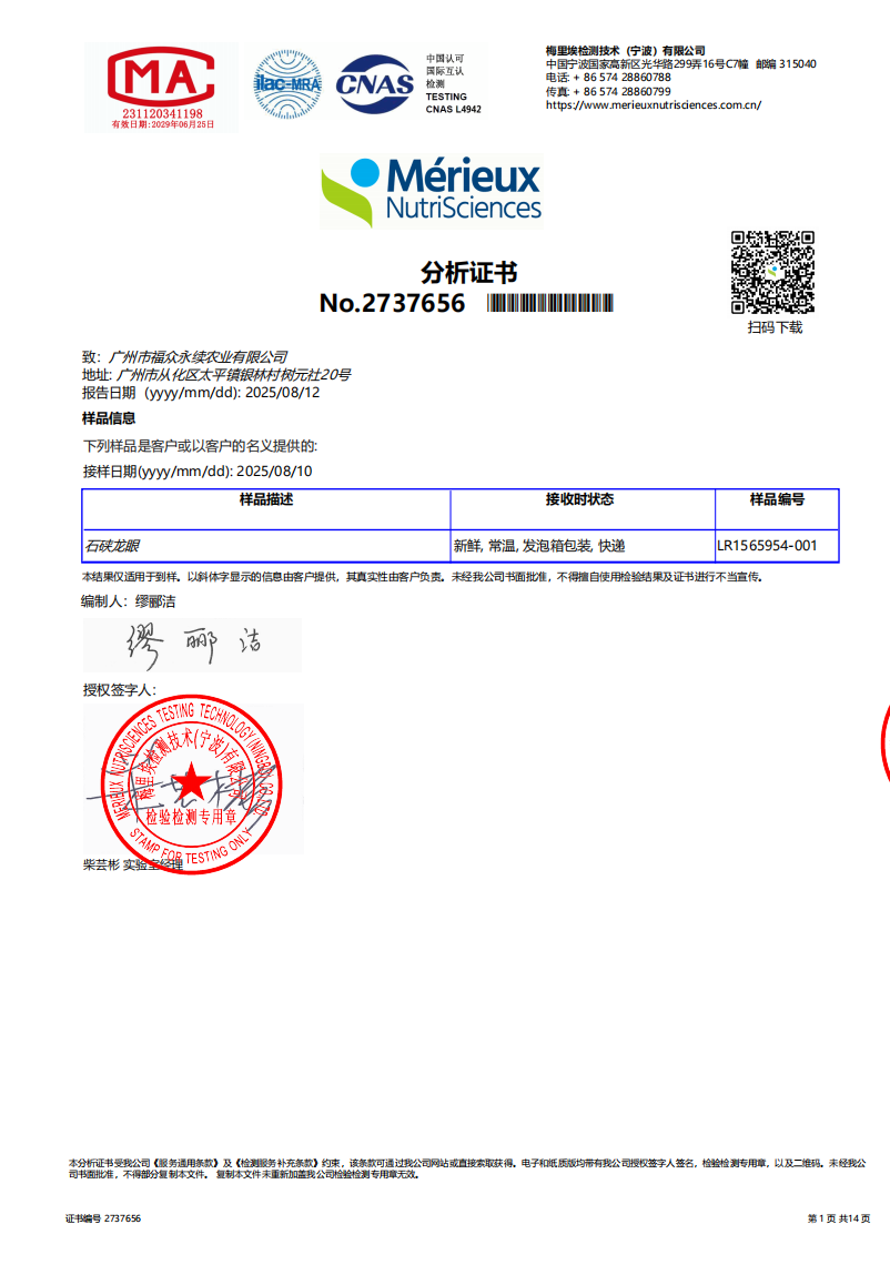 生产方式:2009年开始生态种植,采用自然农法管理,不使用化学农药、化肥、除草剂和激素。使用中药渣、茶叶渣和枯枝等植物性原料堆肥,人工除草、修枝,自然成熟后采摘,桂圆剥壳后低温烘干,再晾晒。
