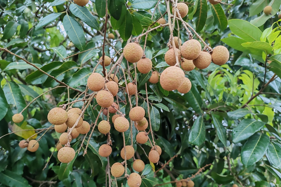 龙眼树是郭锐父母早在1987年就已经种下,总共三十多棵树,至今已经三十六年树龄了。等农二代返乡从事生态农业后,龙眼树因精力有限放任了几年,野蛮生长着,所以早几年间基本没有产量。后来农场开始龙眼树下堆肥,龙眼树也得到了滋养,肥力跟上后,结果是一年比一年好。