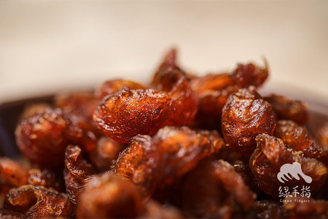 烘干后的桂圆肉呈半透明琥珀色, 入口柔韧有嚼劲,非常甜,但天然的果糖吃起来却不会觉得甜腻,还带着浓郁的香气,用来泡水喝,桂圆水味道清甜温润。