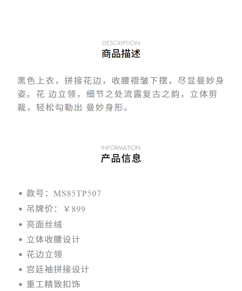 【商场同款】MAXRIENY宫廷复古风立体收腰衬衫法式赫本风长袖上衣(货号:MS85TP507)