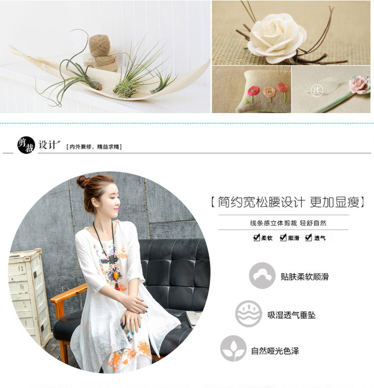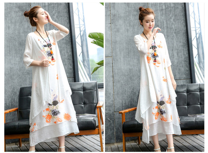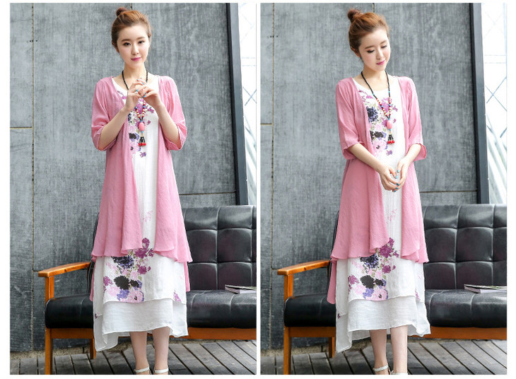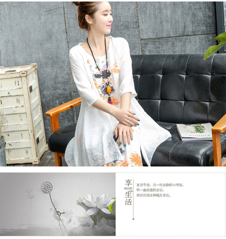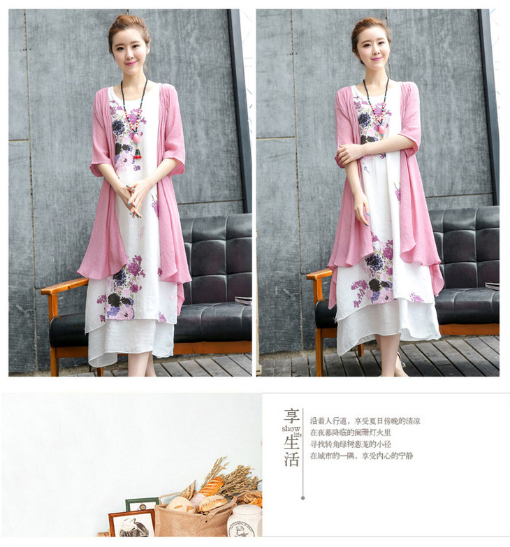 CQ-HYSD10印花宽松棉麻连衣裙套装