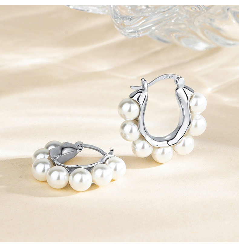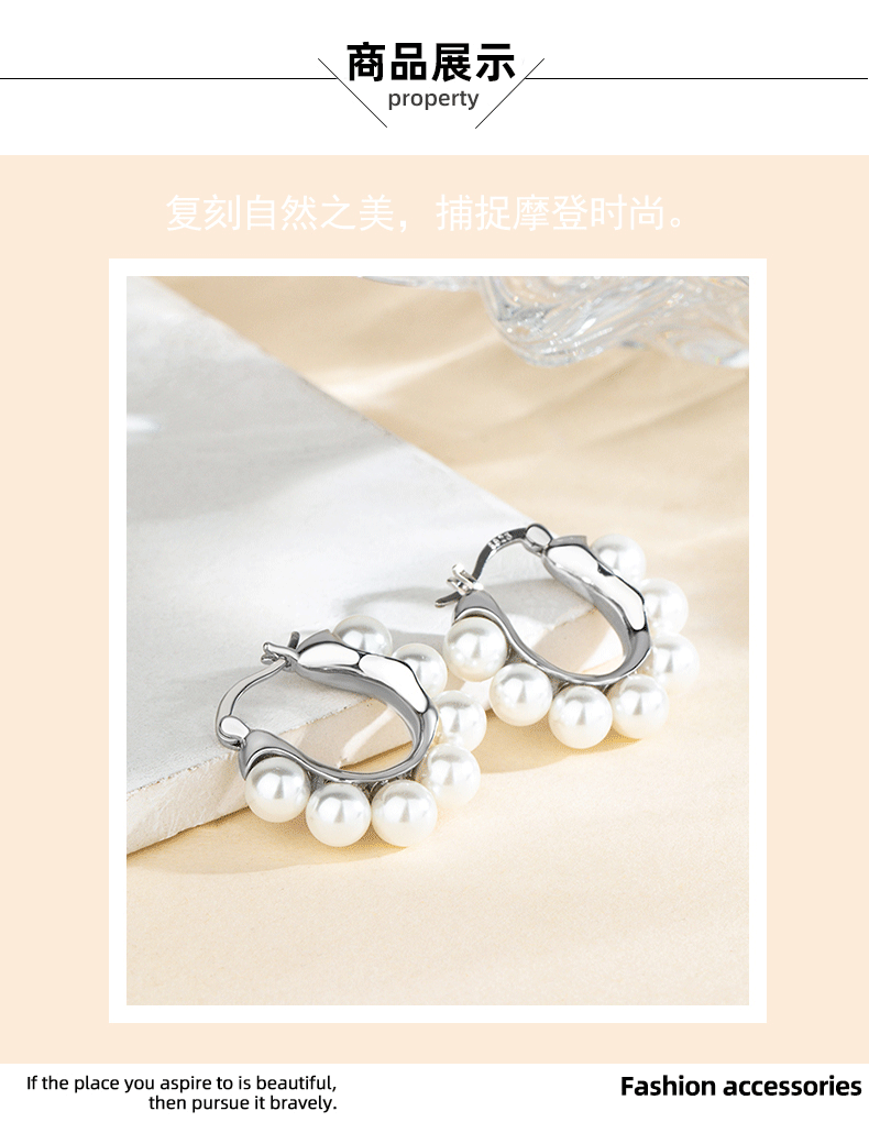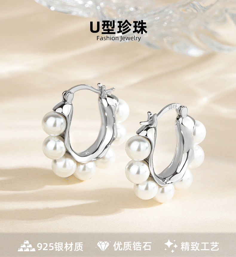 丁摩 s925纯银高级感珍珠耳圈耳环轻奢气质小众设计感耳饰网红复古耳扣
