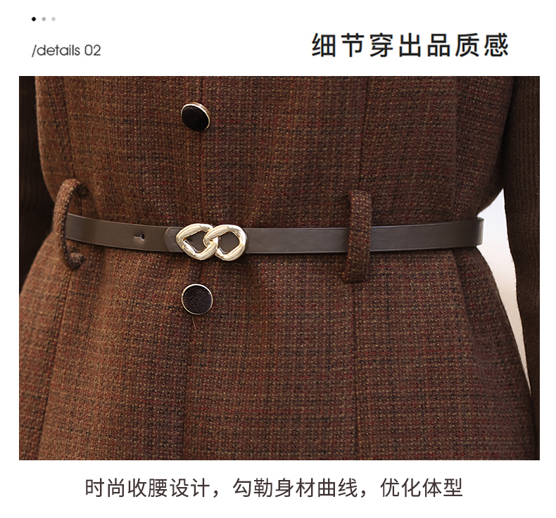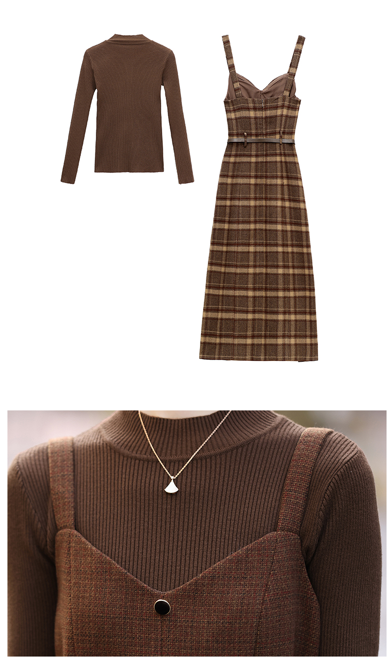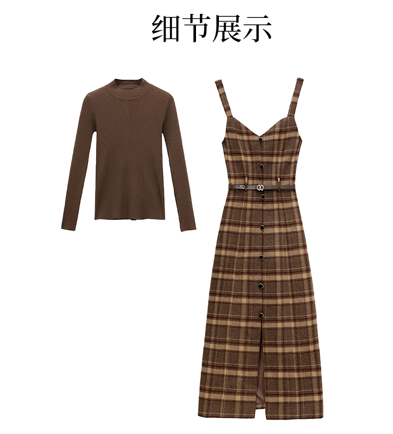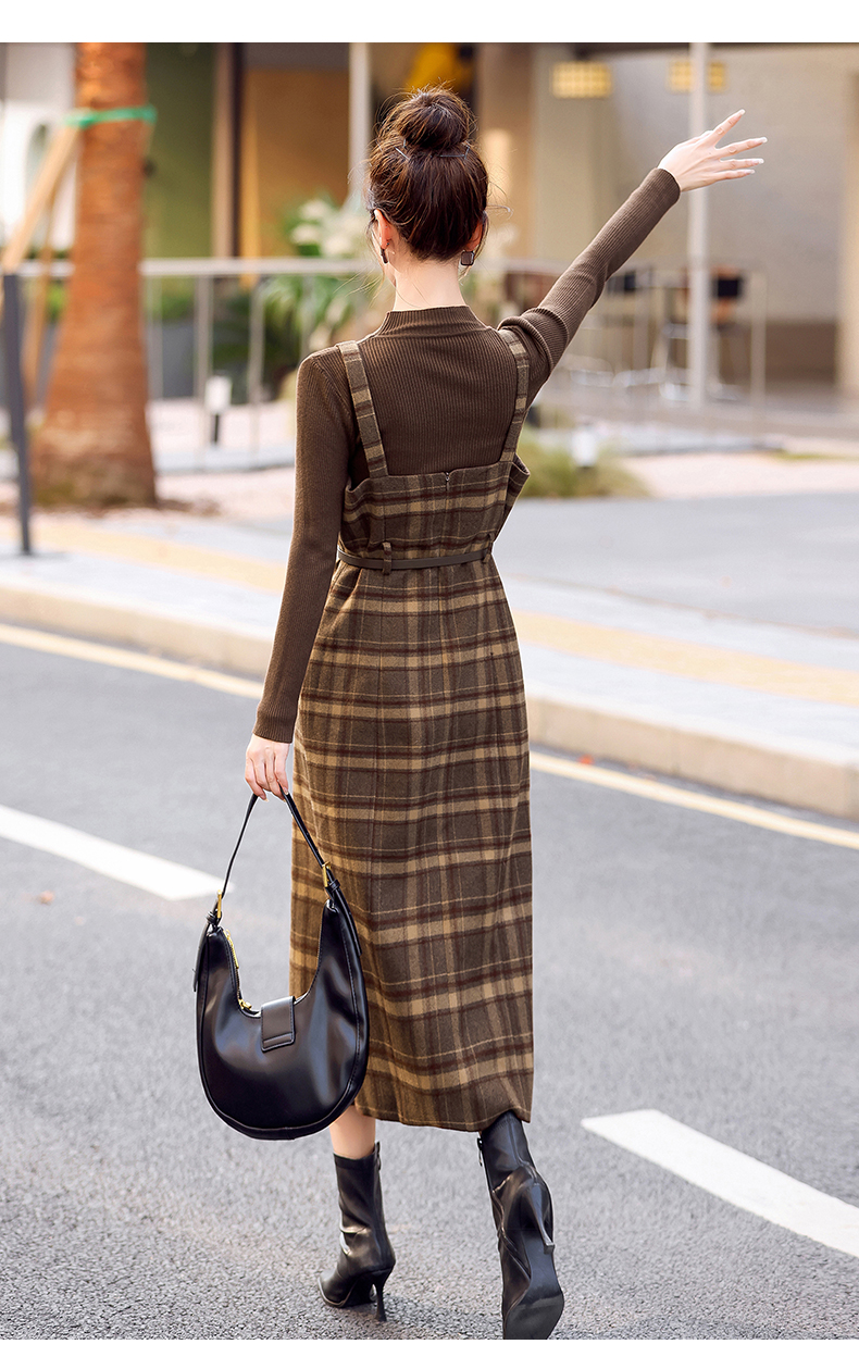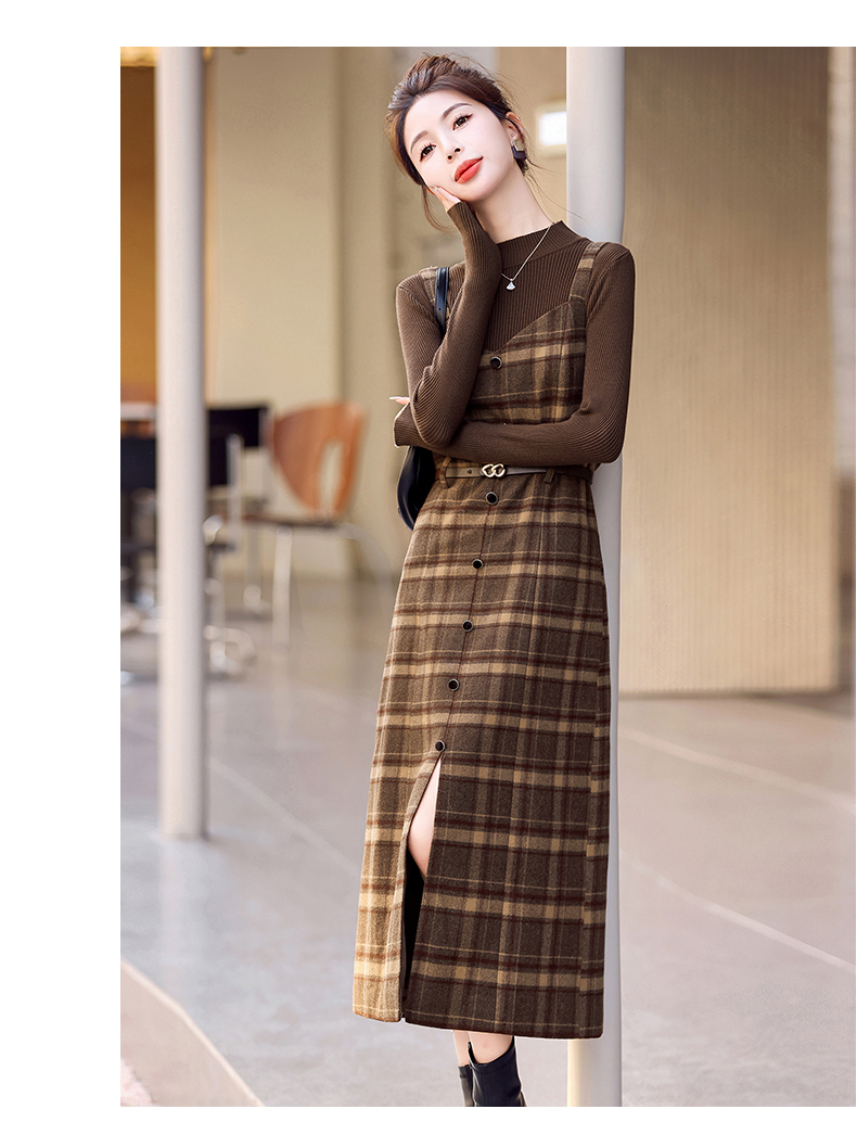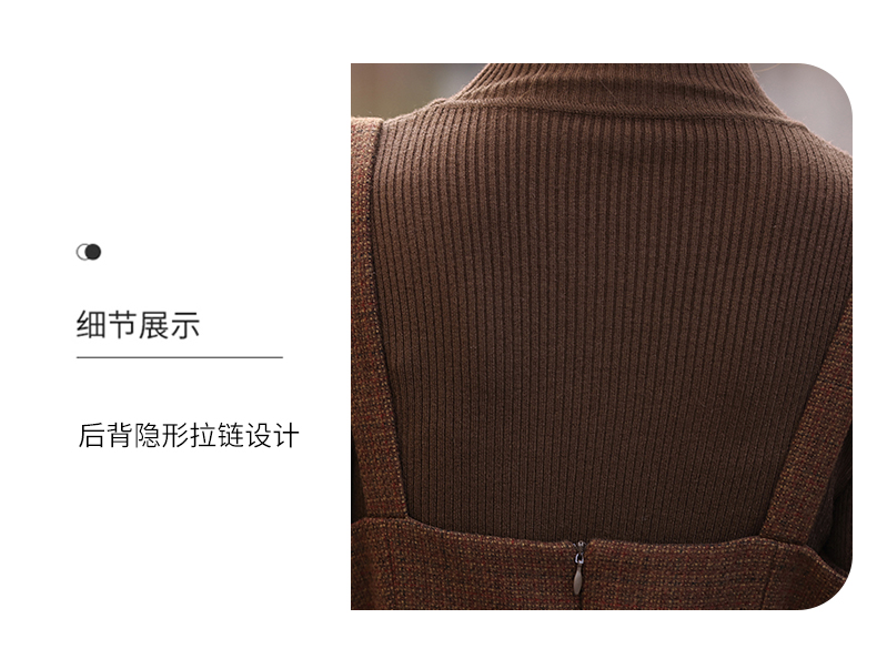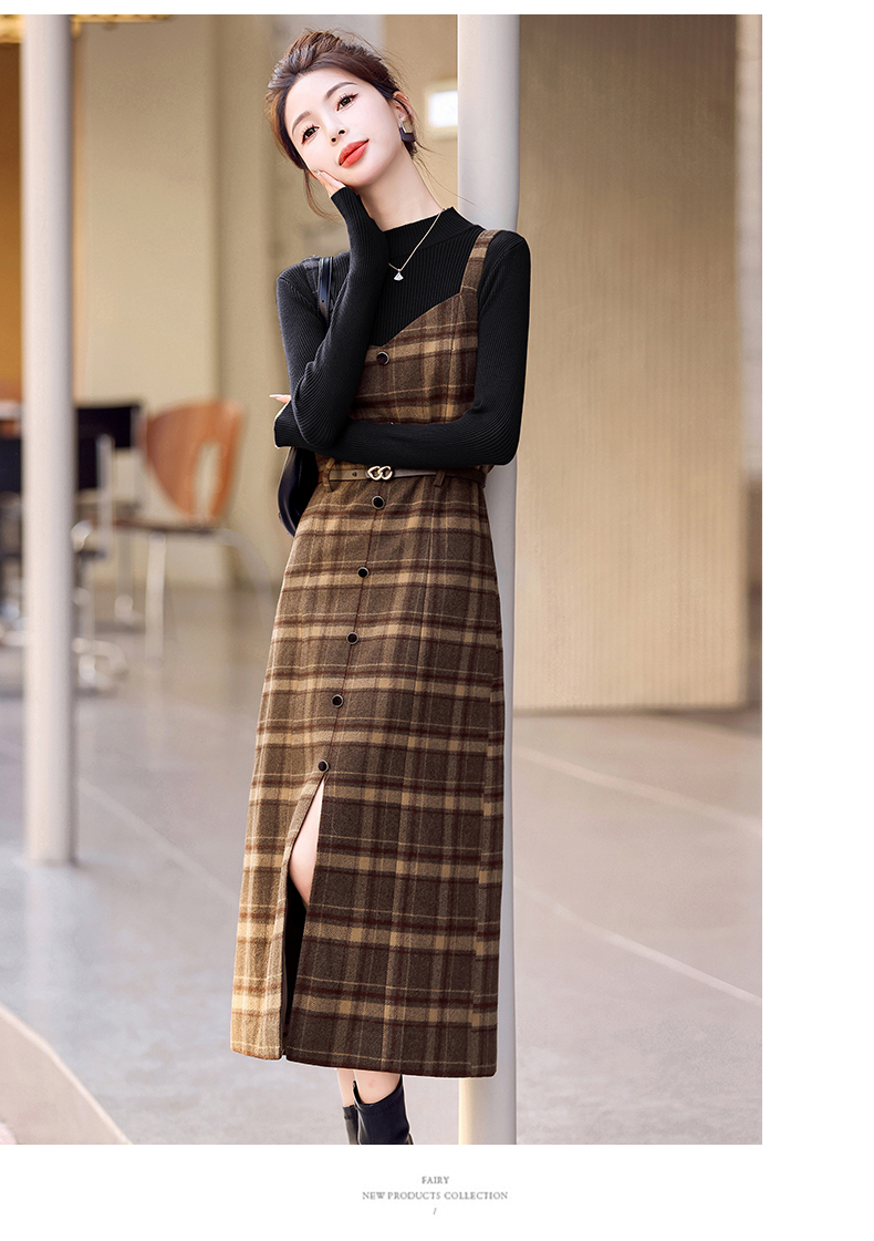 修身显瘦,气质复古格子加厚毛呢两件套连衣裙HR-LNS9662-1