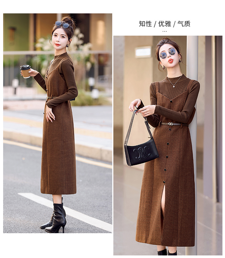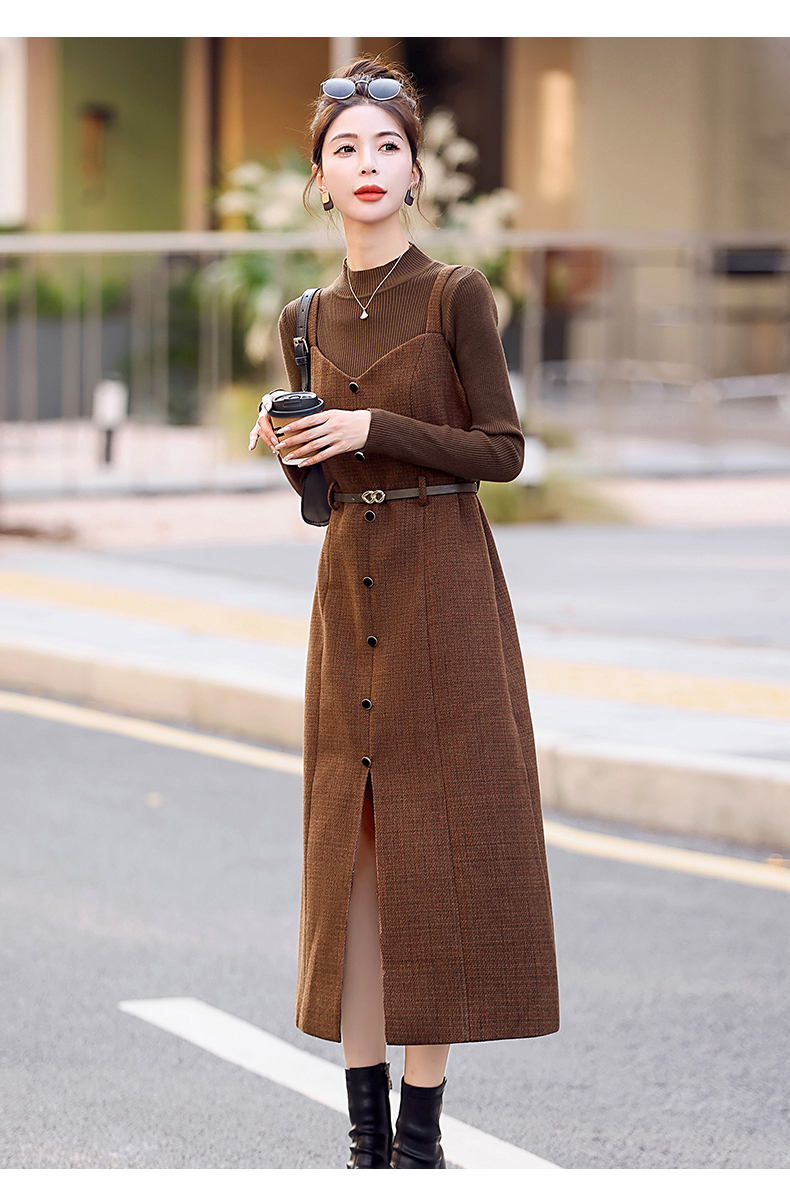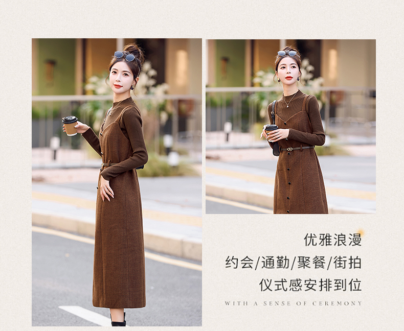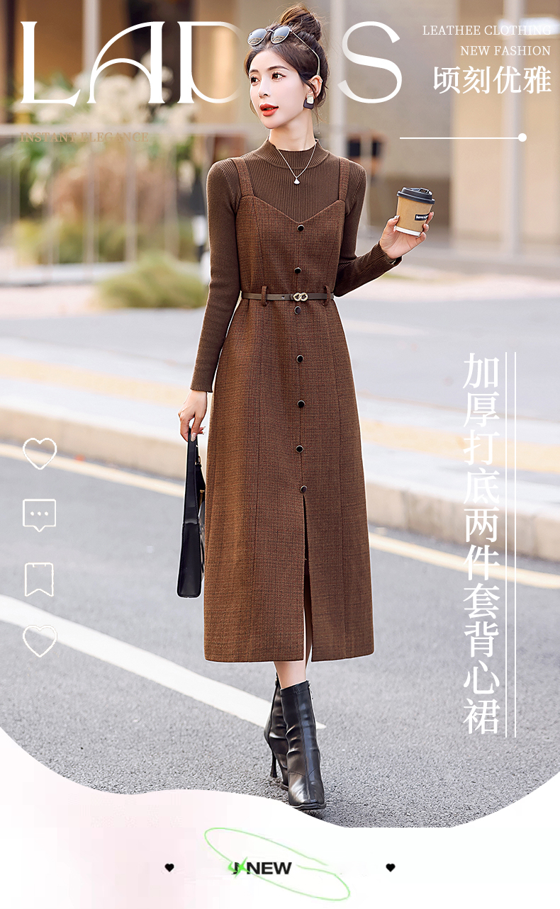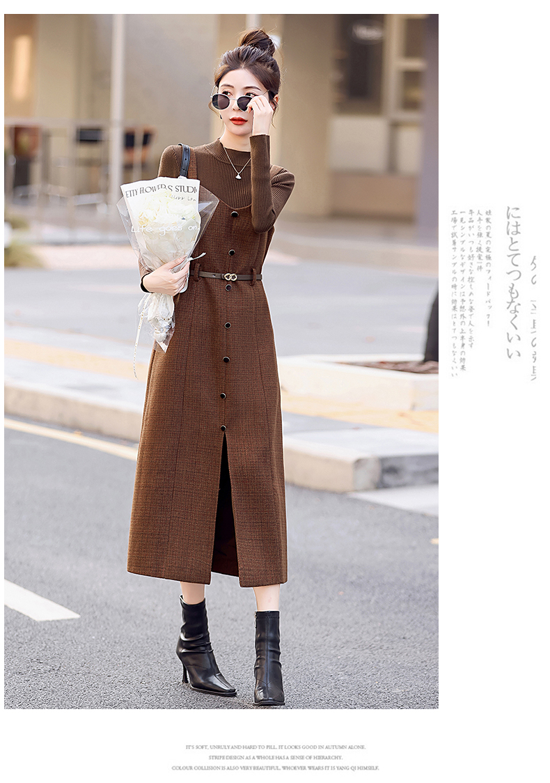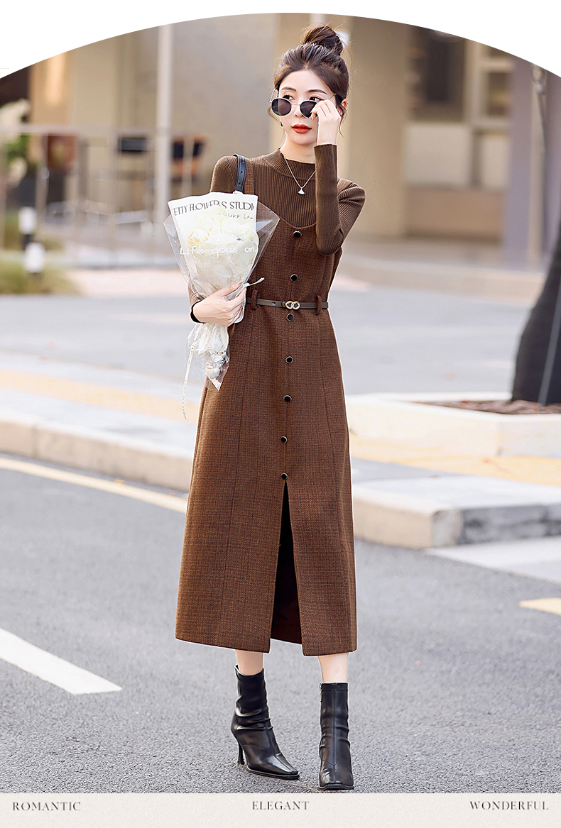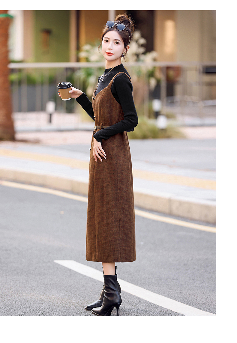 修身显瘦,气质复古格子加厚毛呢两件套连衣裙HR-LNS9662-1