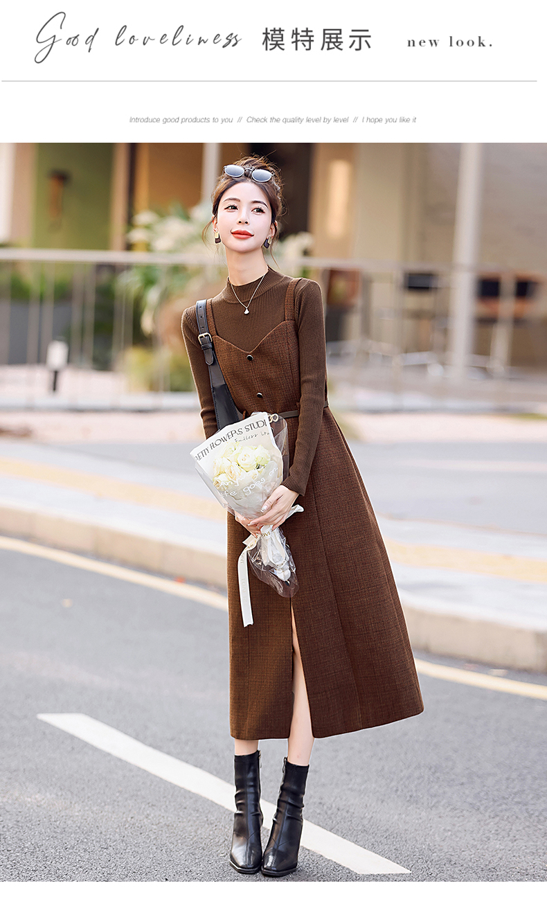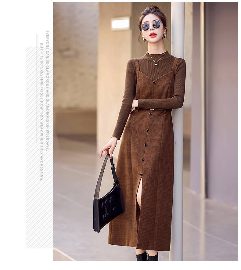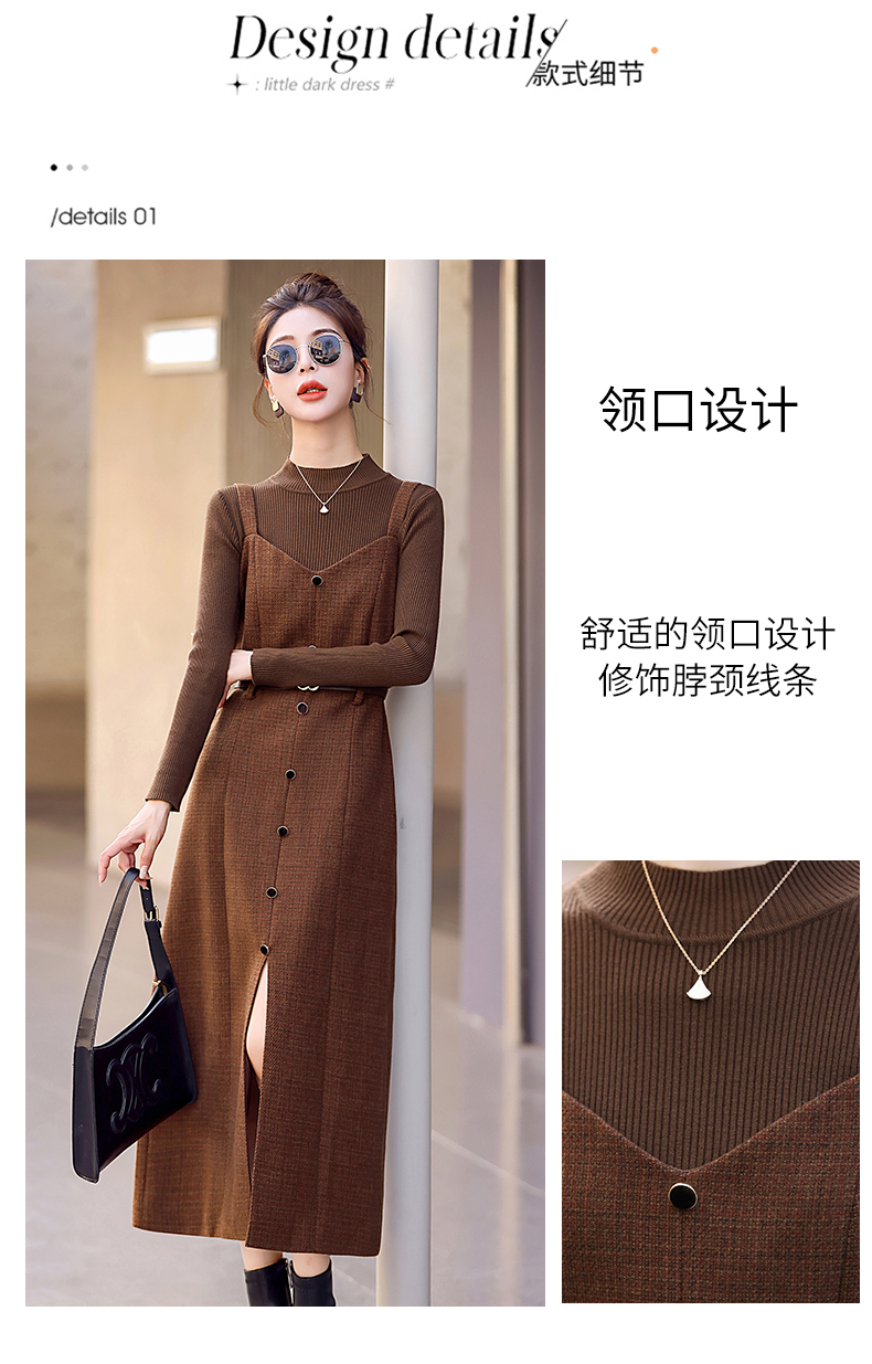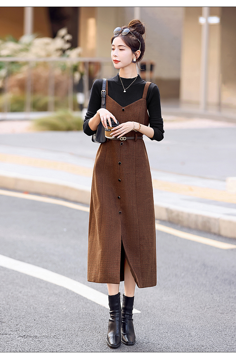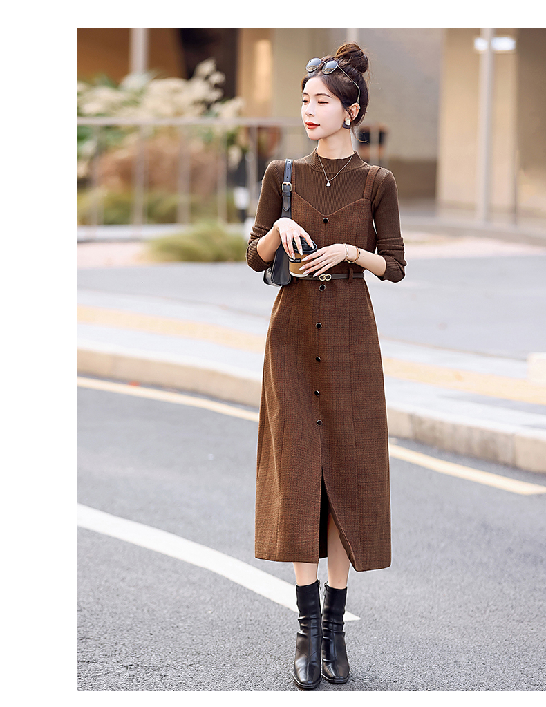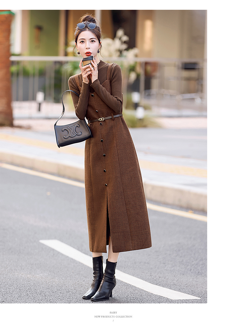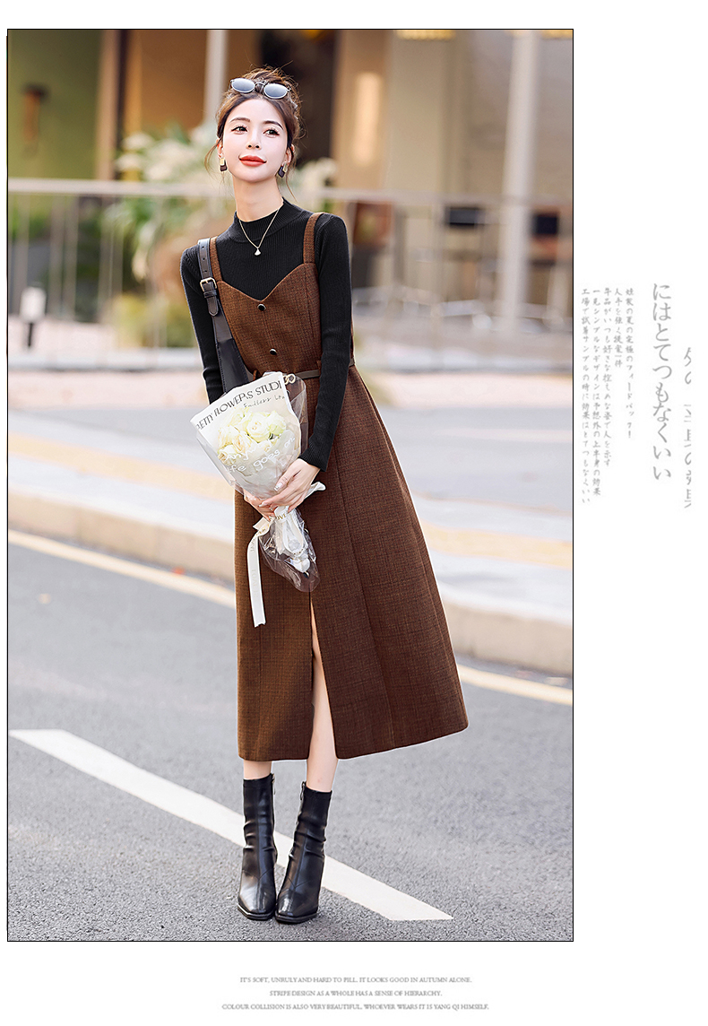 修身显瘦,气质复古格子加厚毛呢两件套连衣裙HR-LNS9662-1
