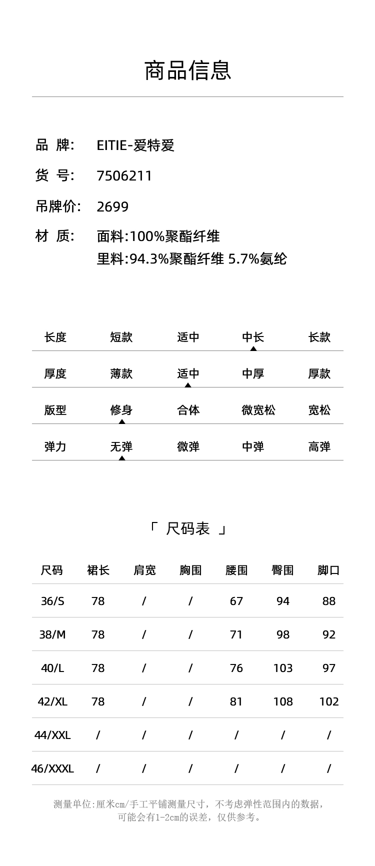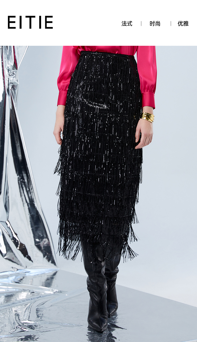 EITIE爱特爱秋季新款时尚流苏包臀显瘦高腰半身裙女7506211